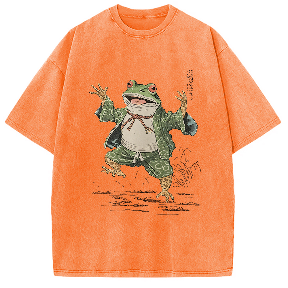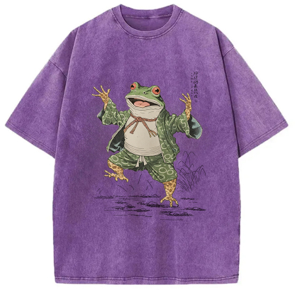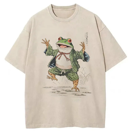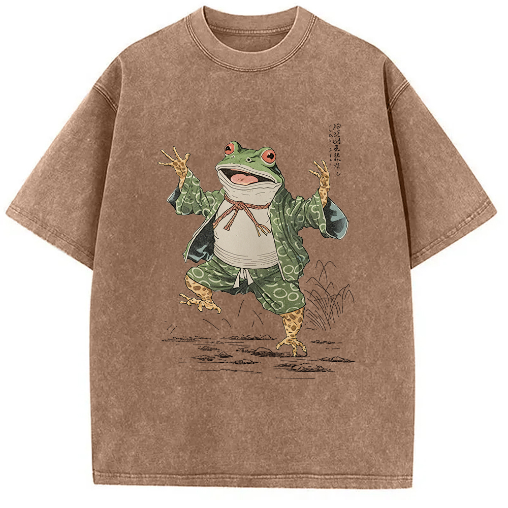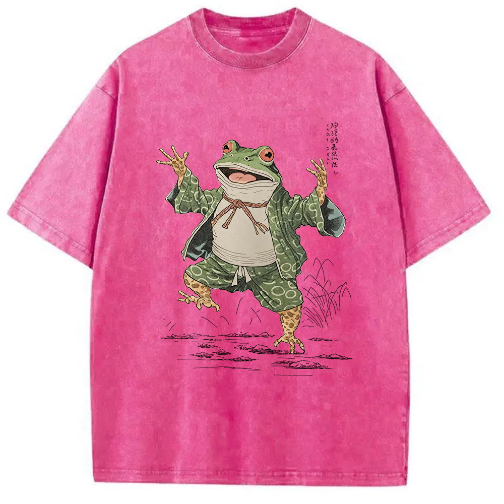 Frog Dancing Japanese Art Vintage Washed T-Shirt