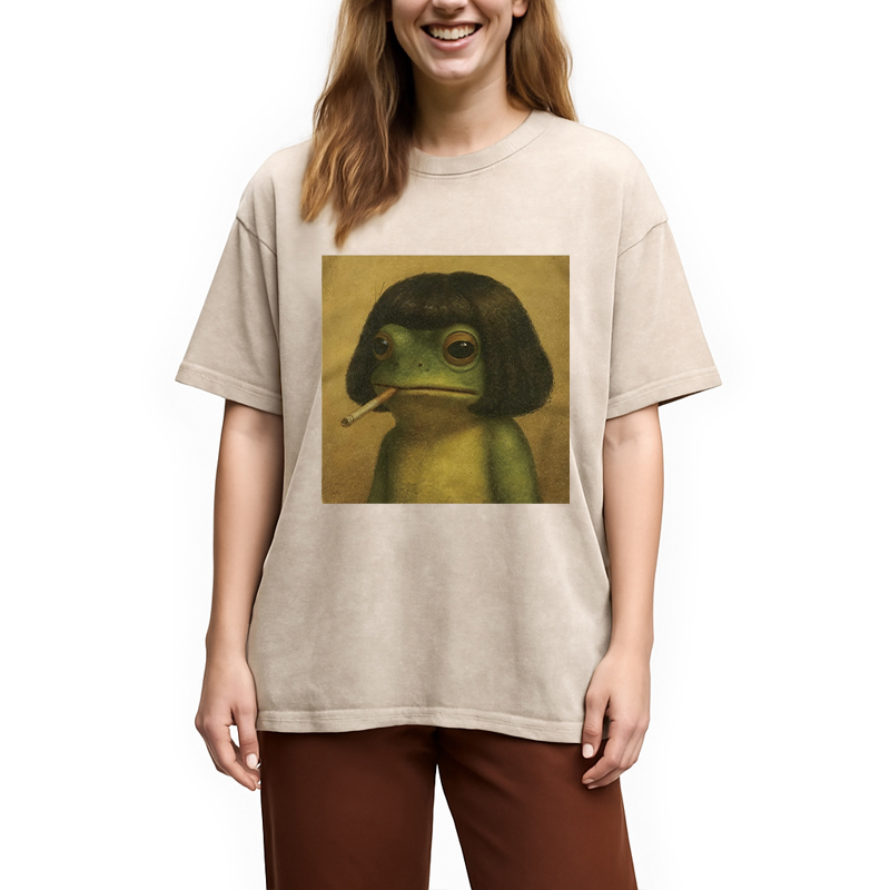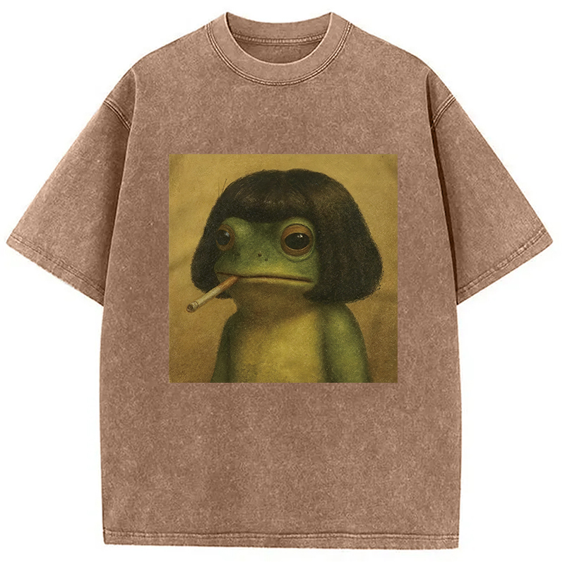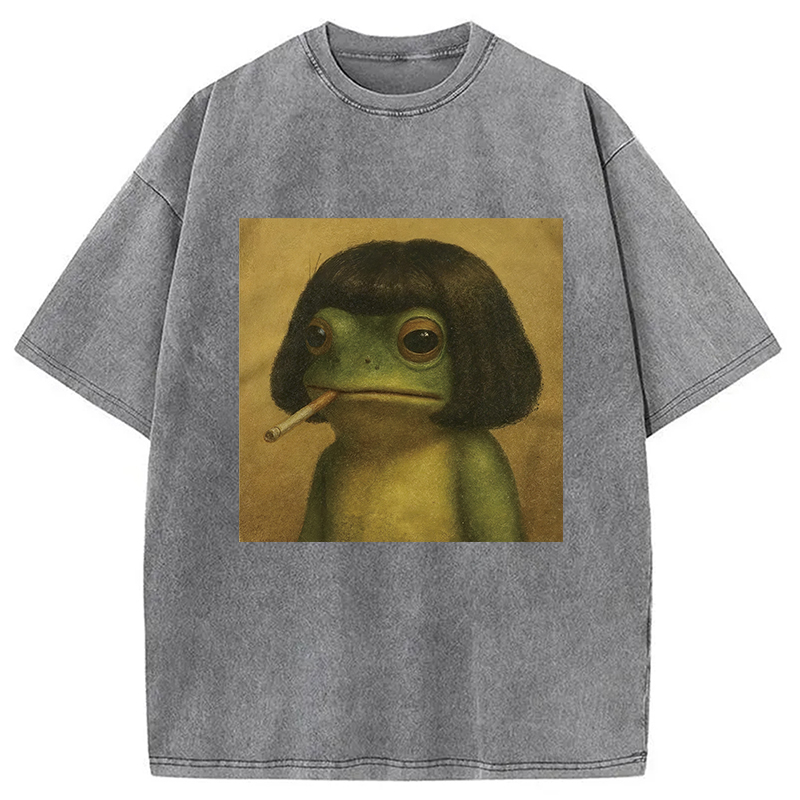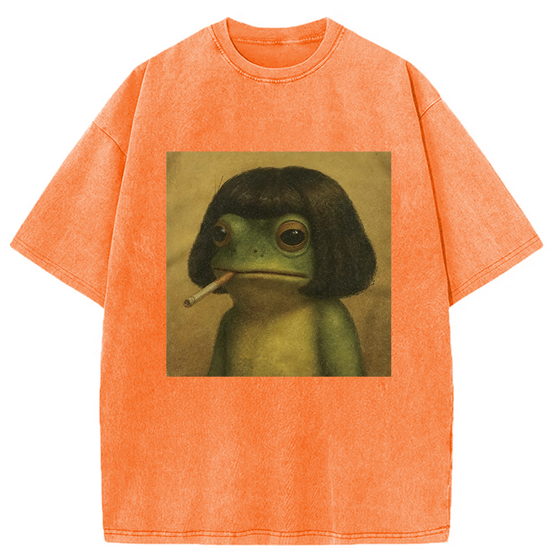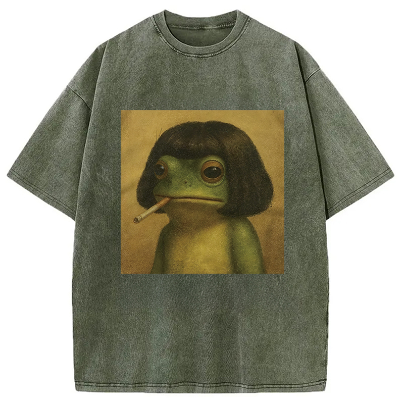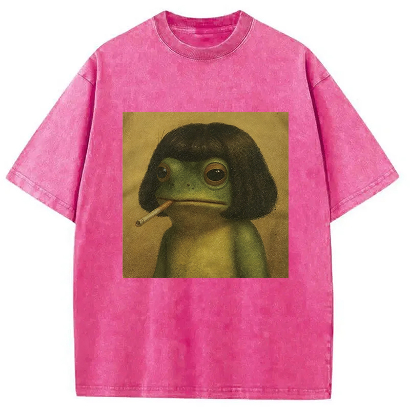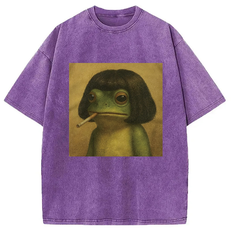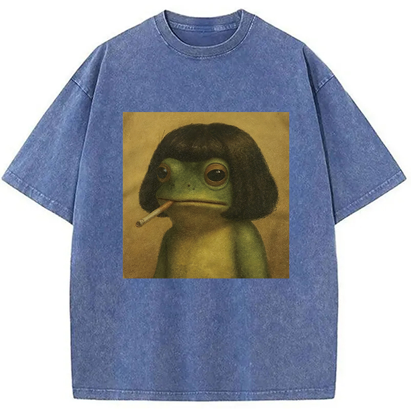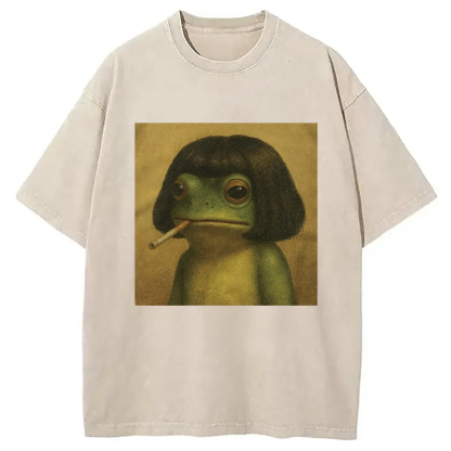Frog Face With Bob Haircut Meme Washed T-Shirt