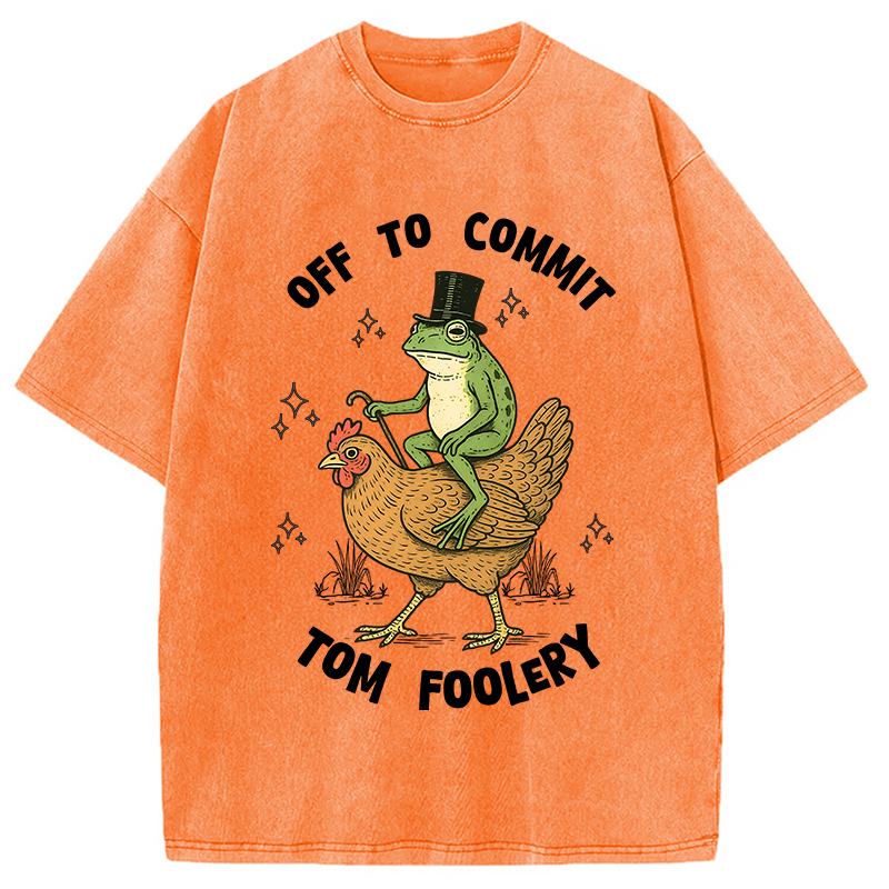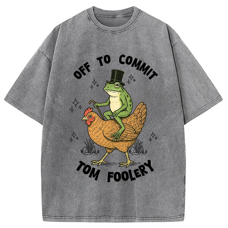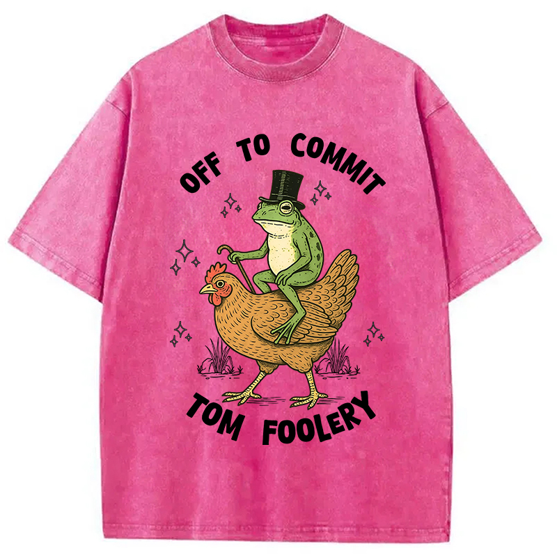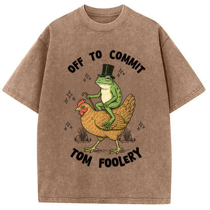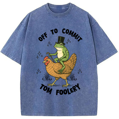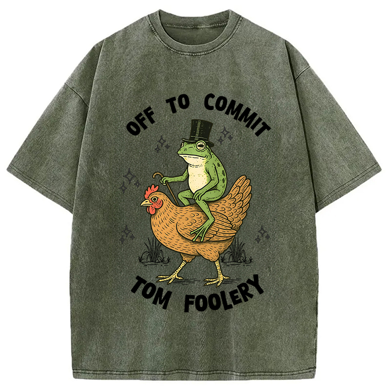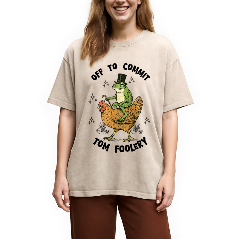 Frog Riding Chicken Funny Sarcastic Meme Washed T-Shirt