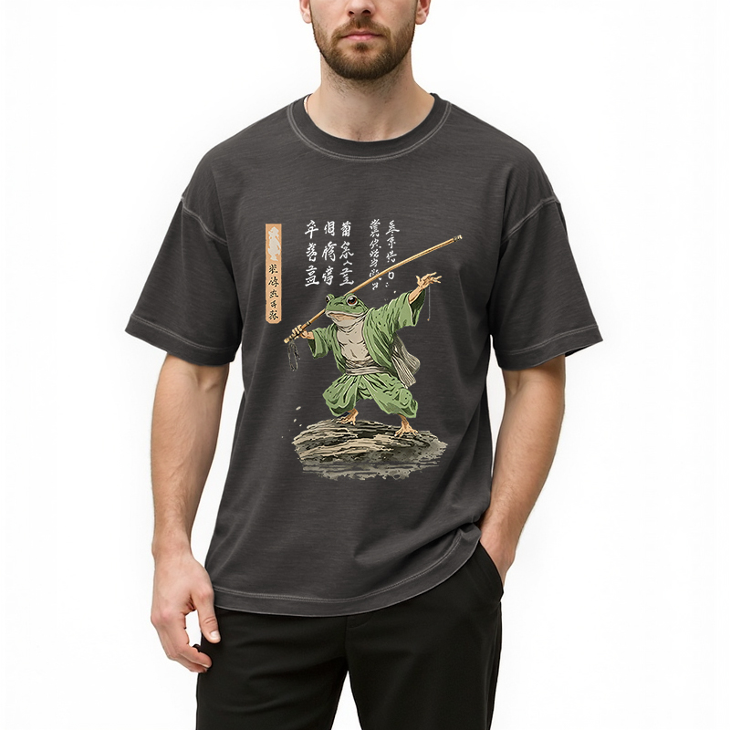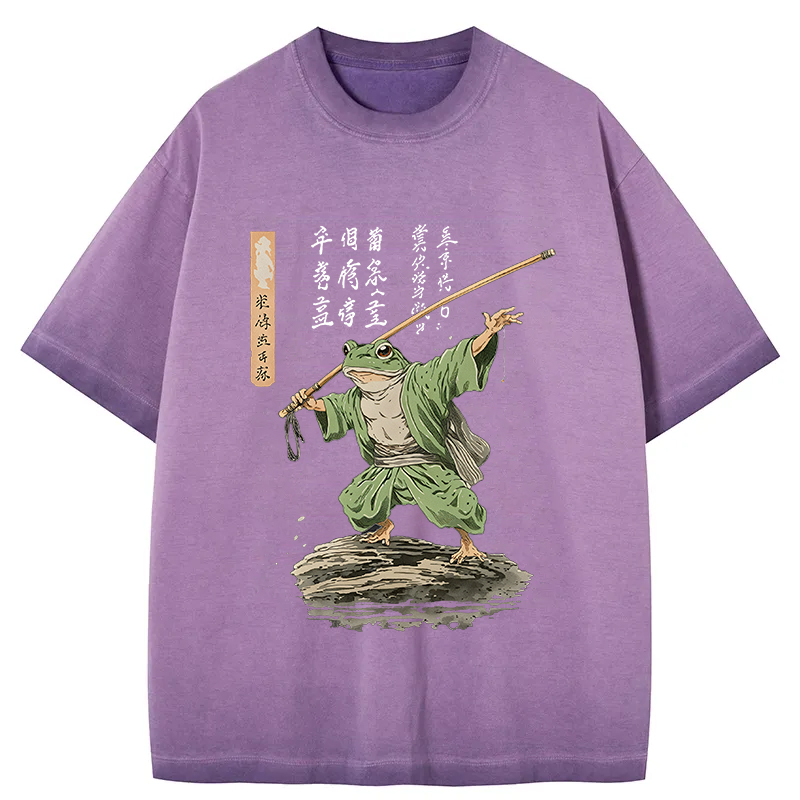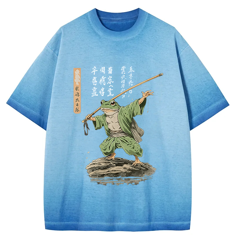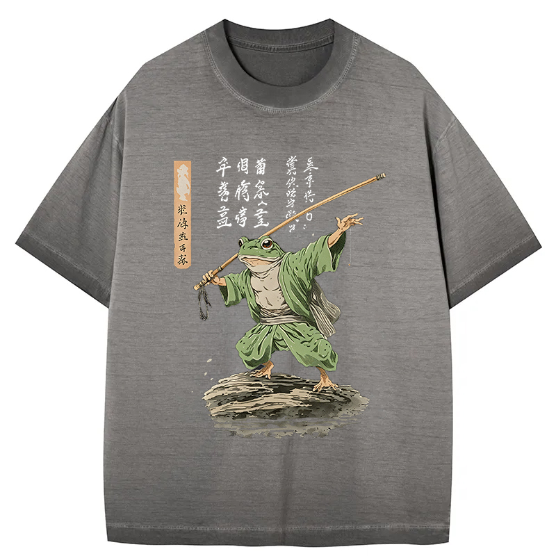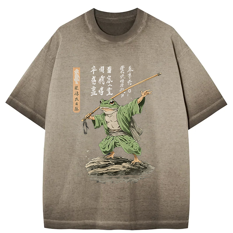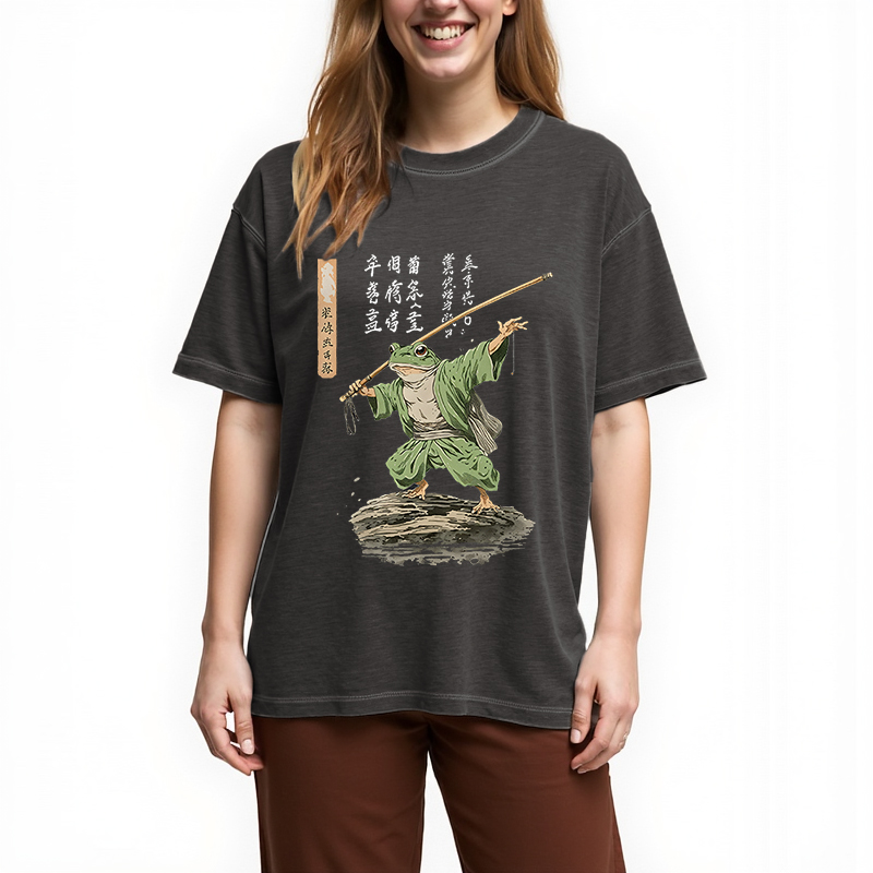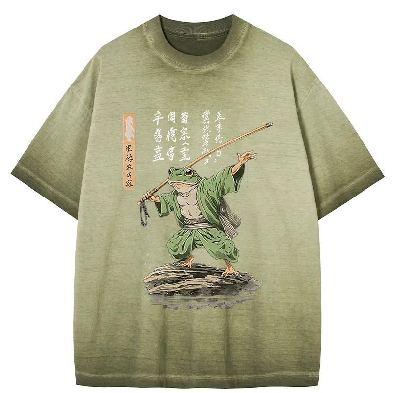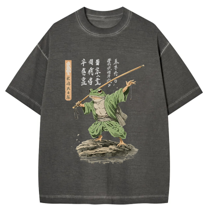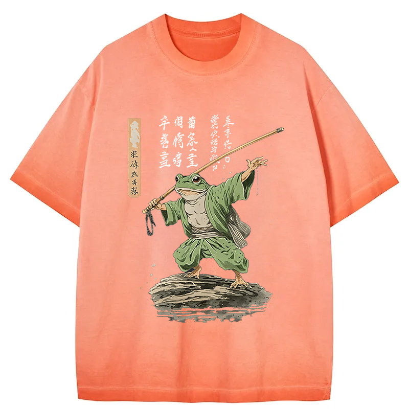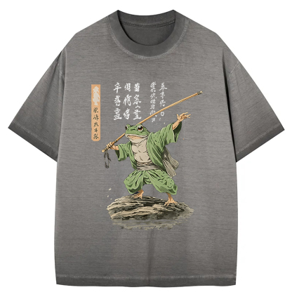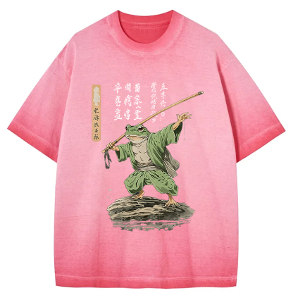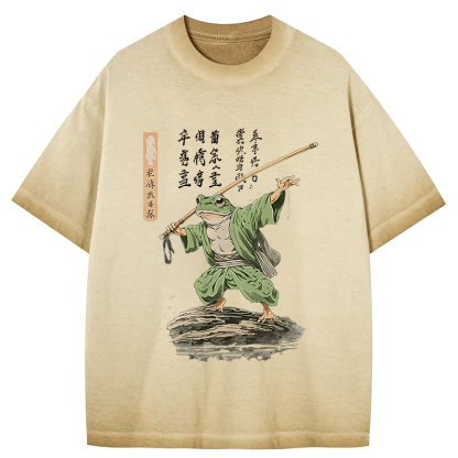 Frog Samurai Japanese Art Vintage Gradient Washed T-Shirt