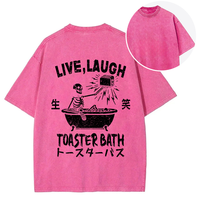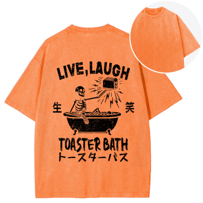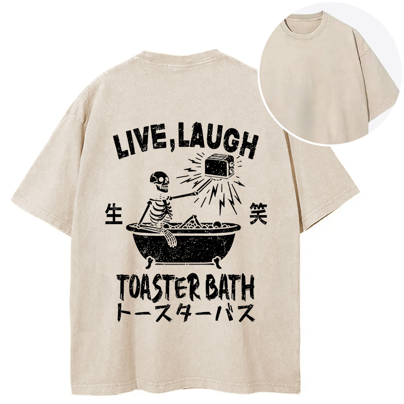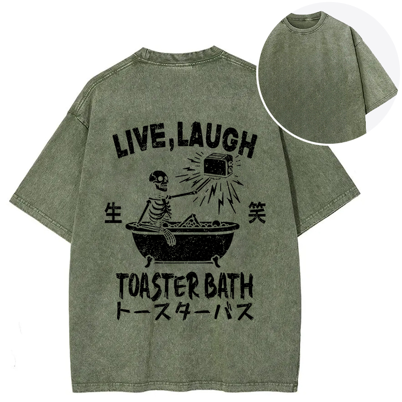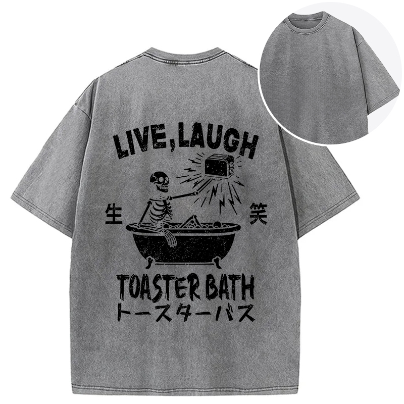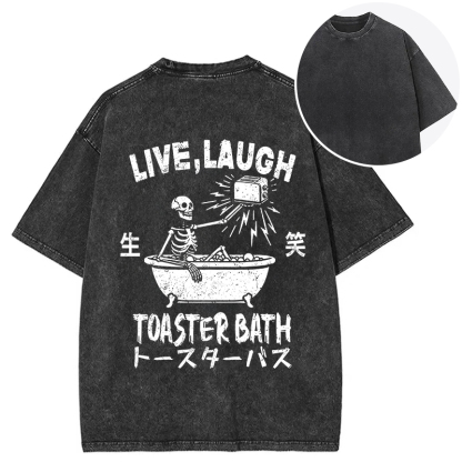 Funny Electric Shock Skeleton Back Washed T-Shirt