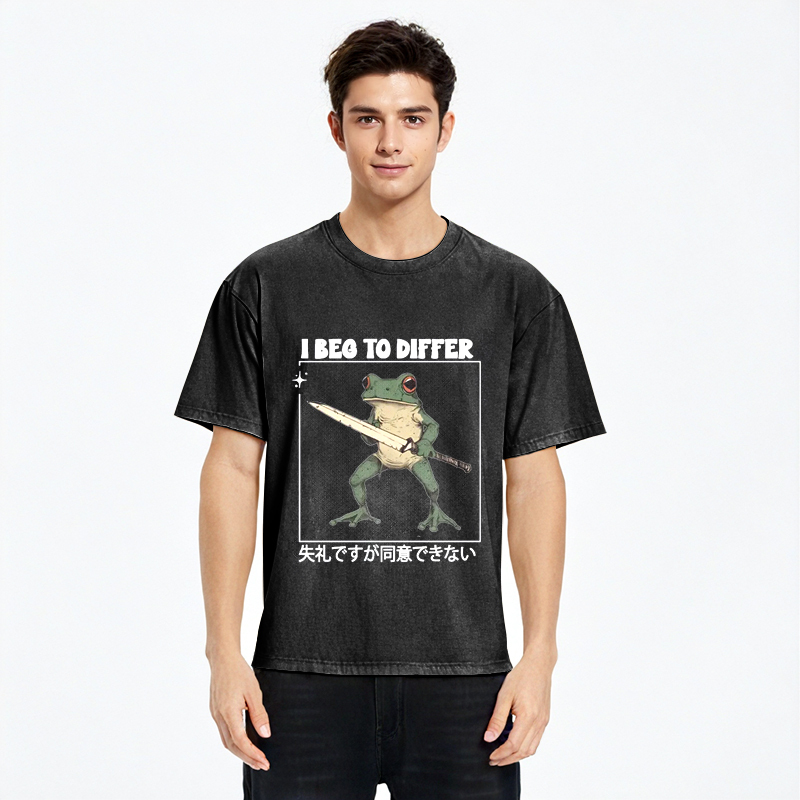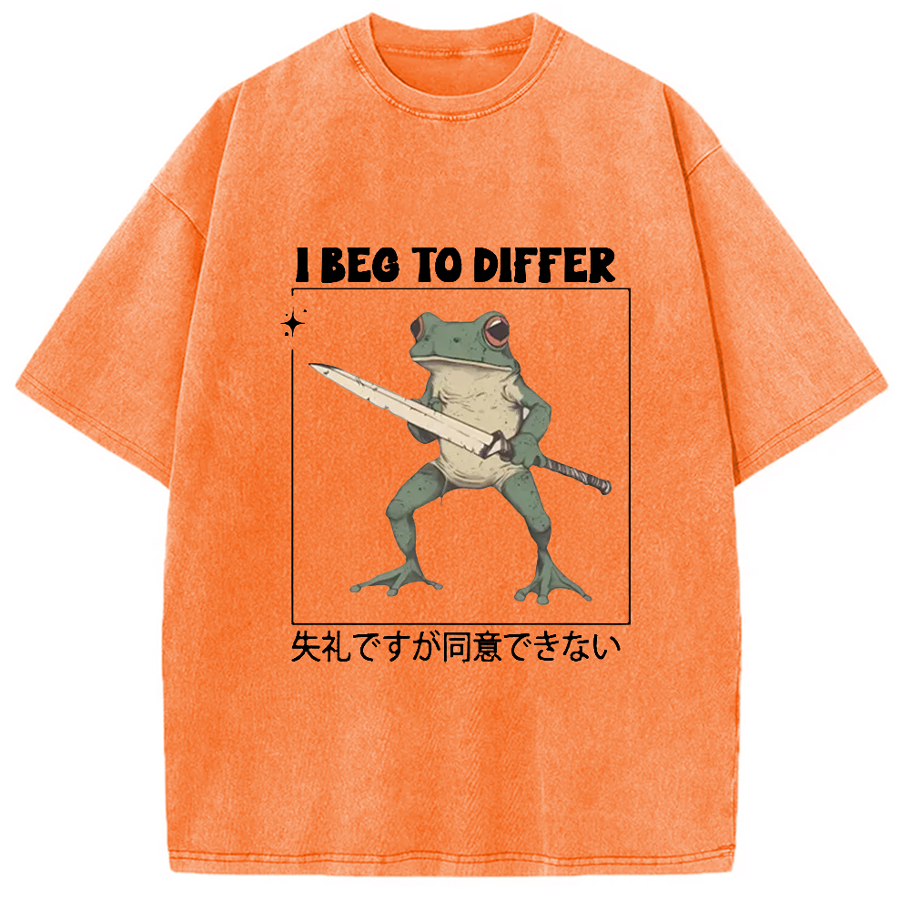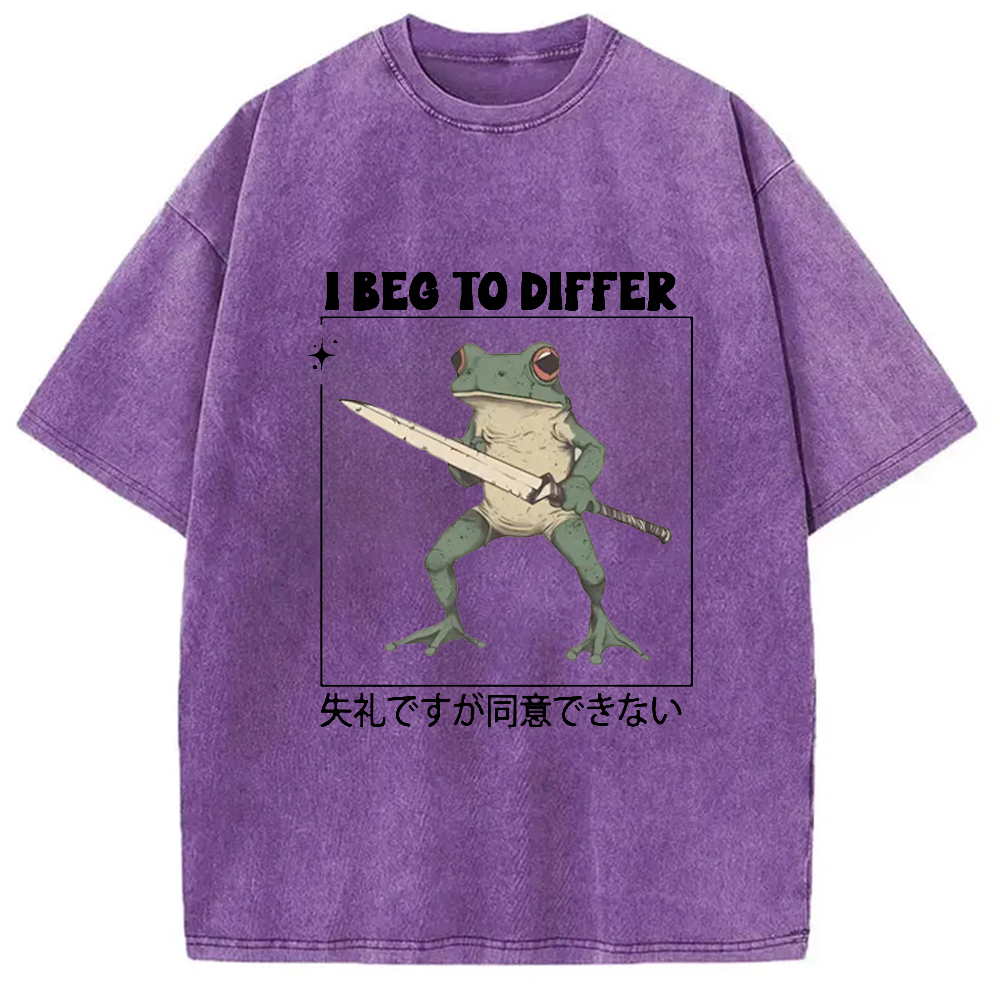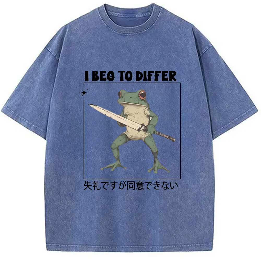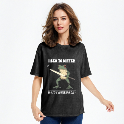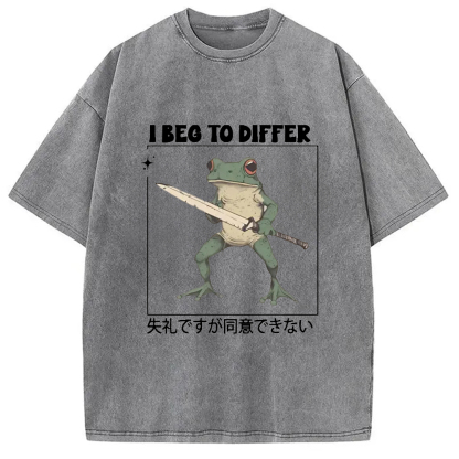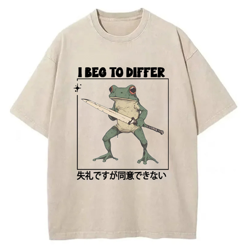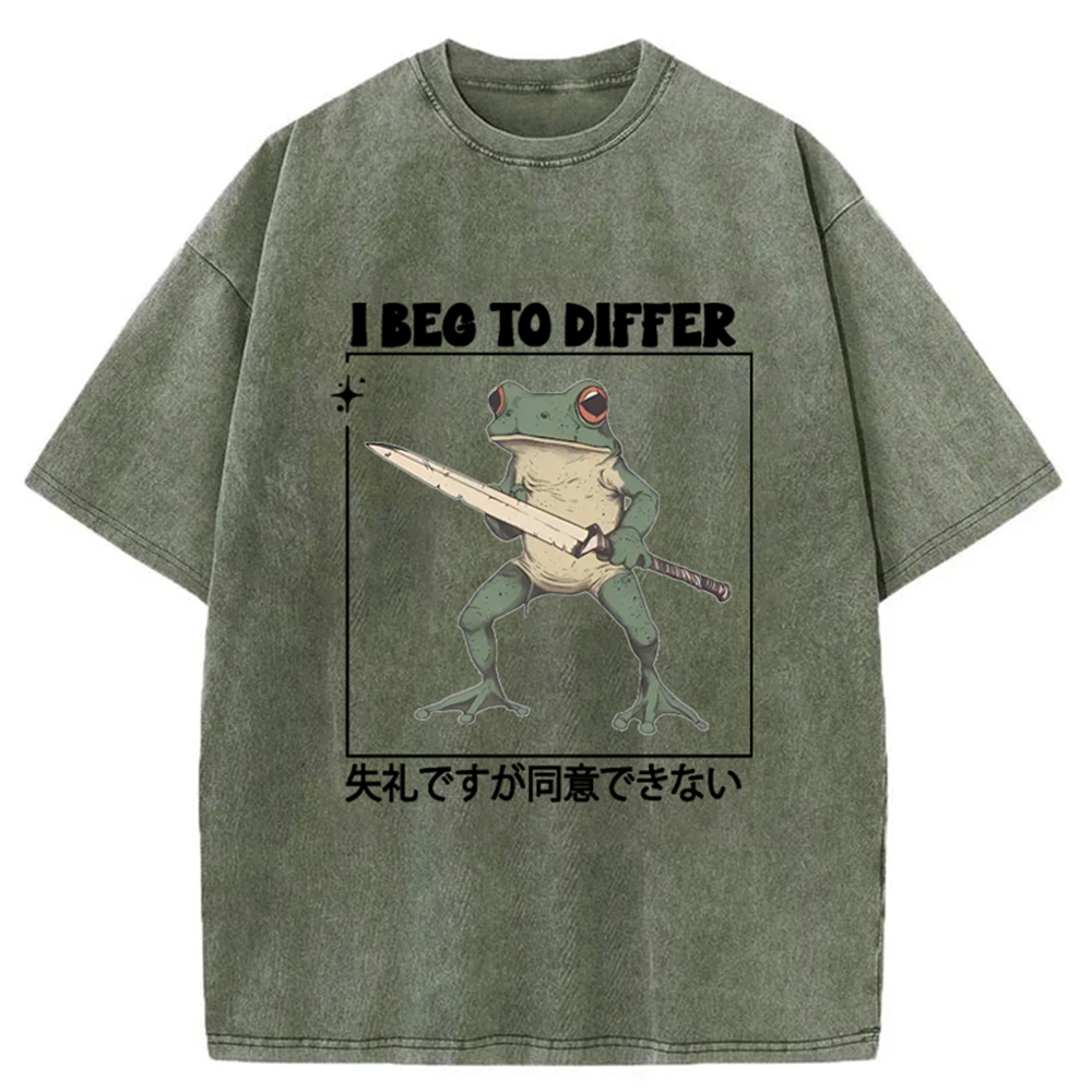 Funny Frog Graphic I Beg To Differ Frog Japanese Washed T-