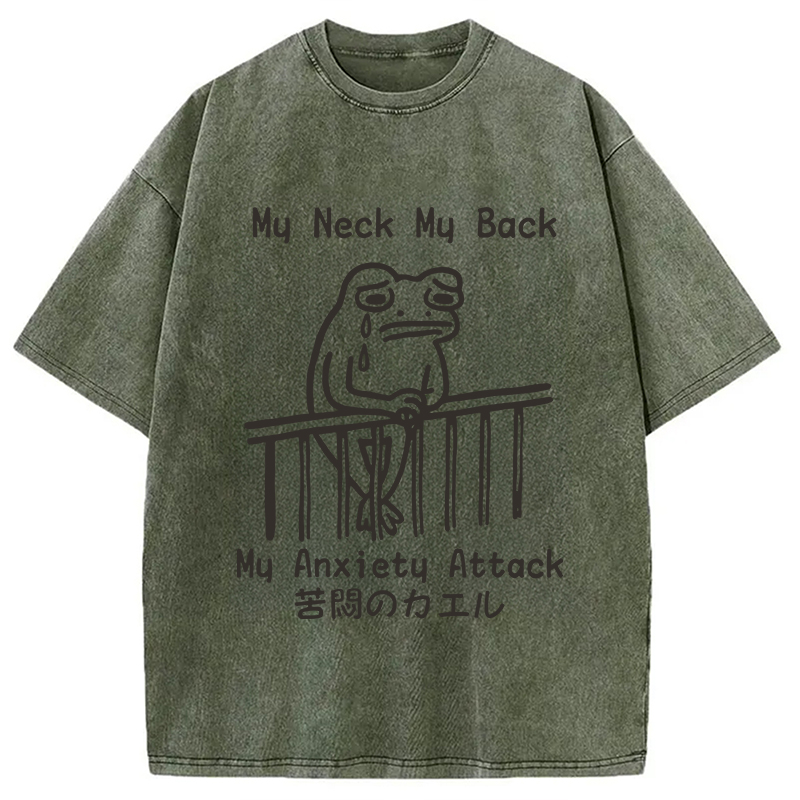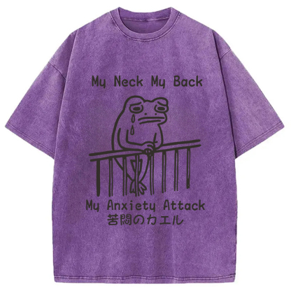 Funny Frog Japanese My Neck My Back Washed T-Shirt