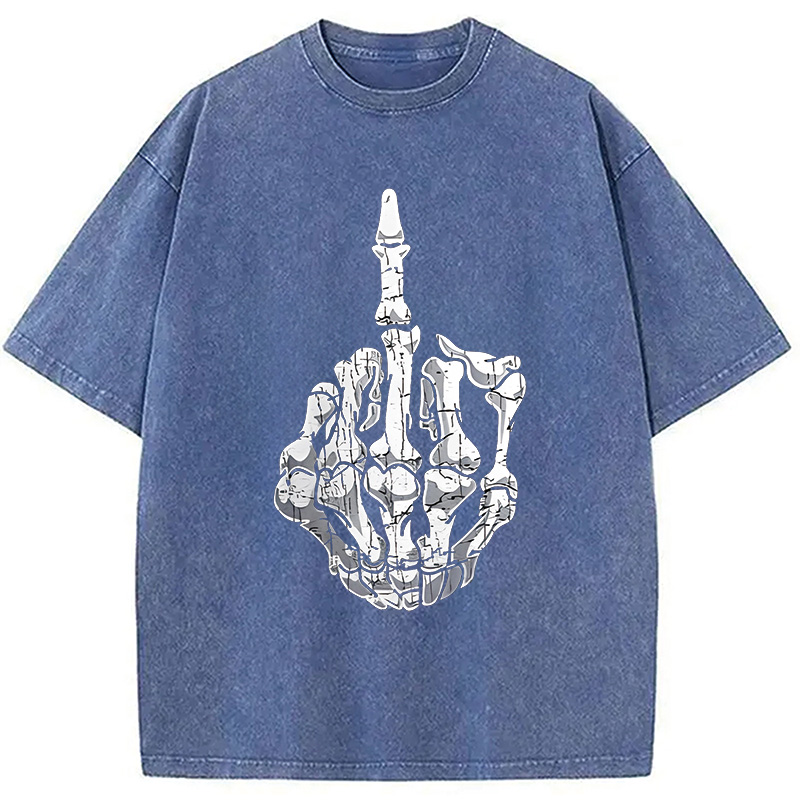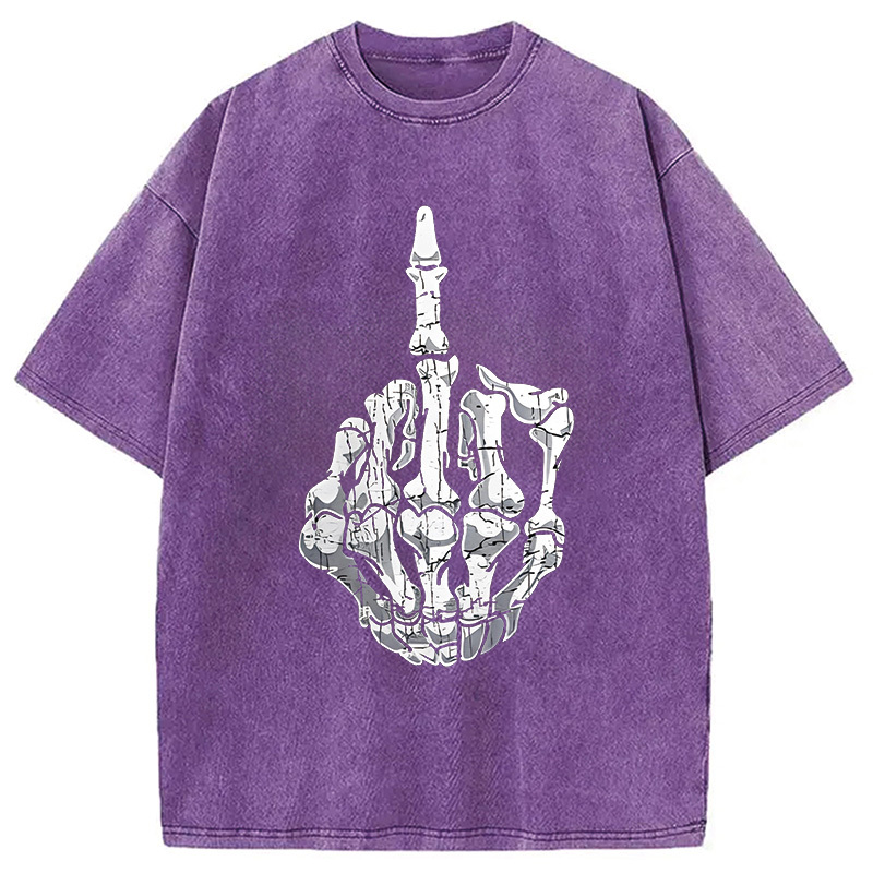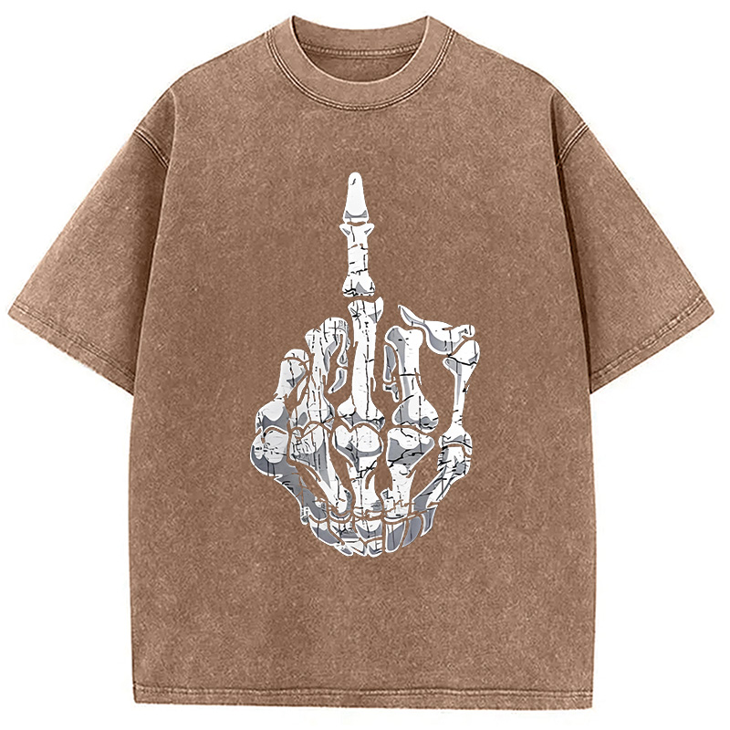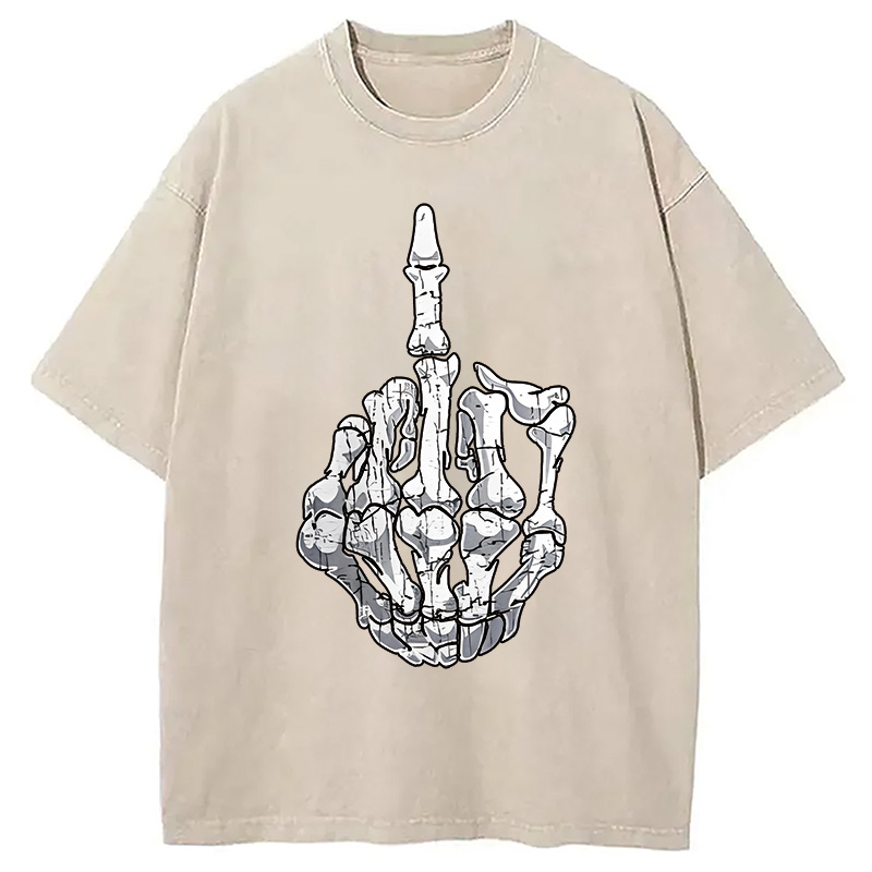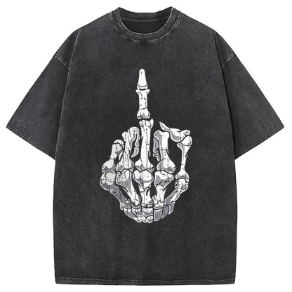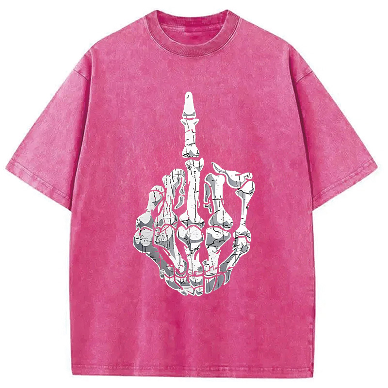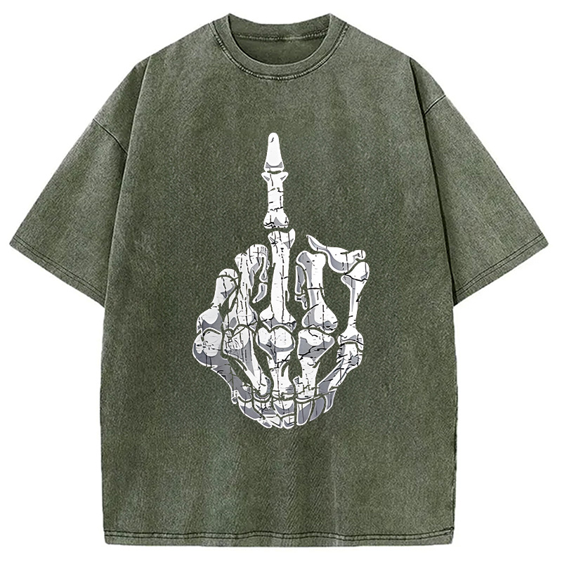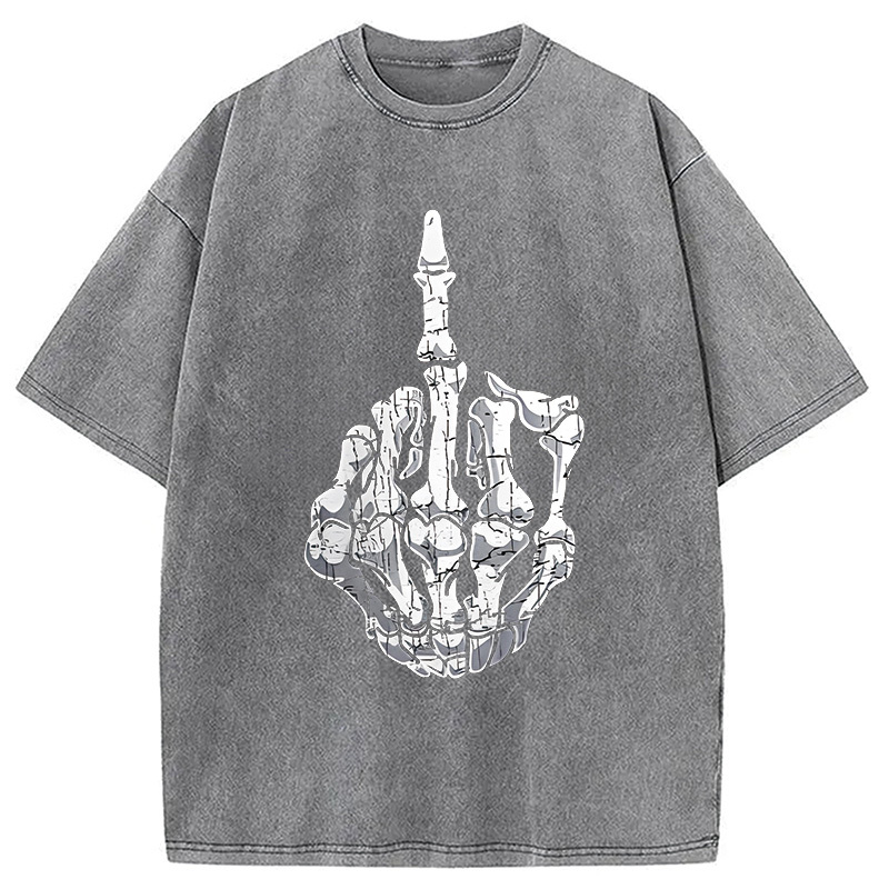 Funny Halloween Middle Finger Skeleton Hand Washed T-Shirt