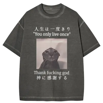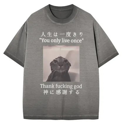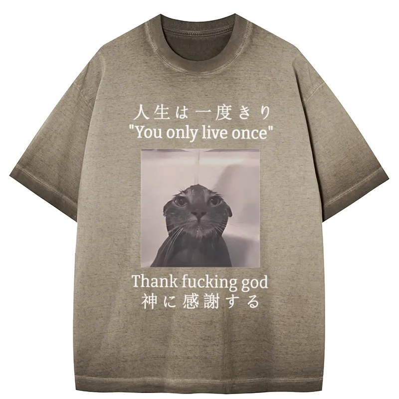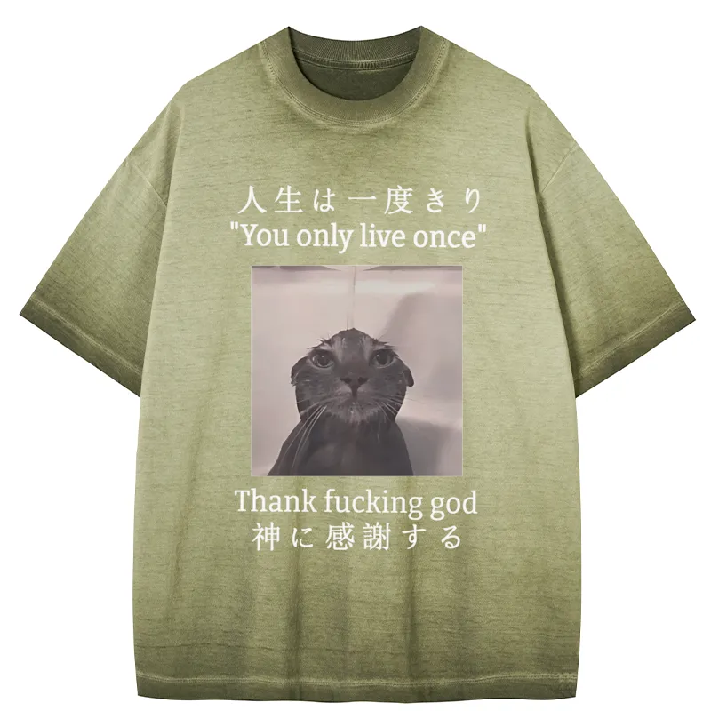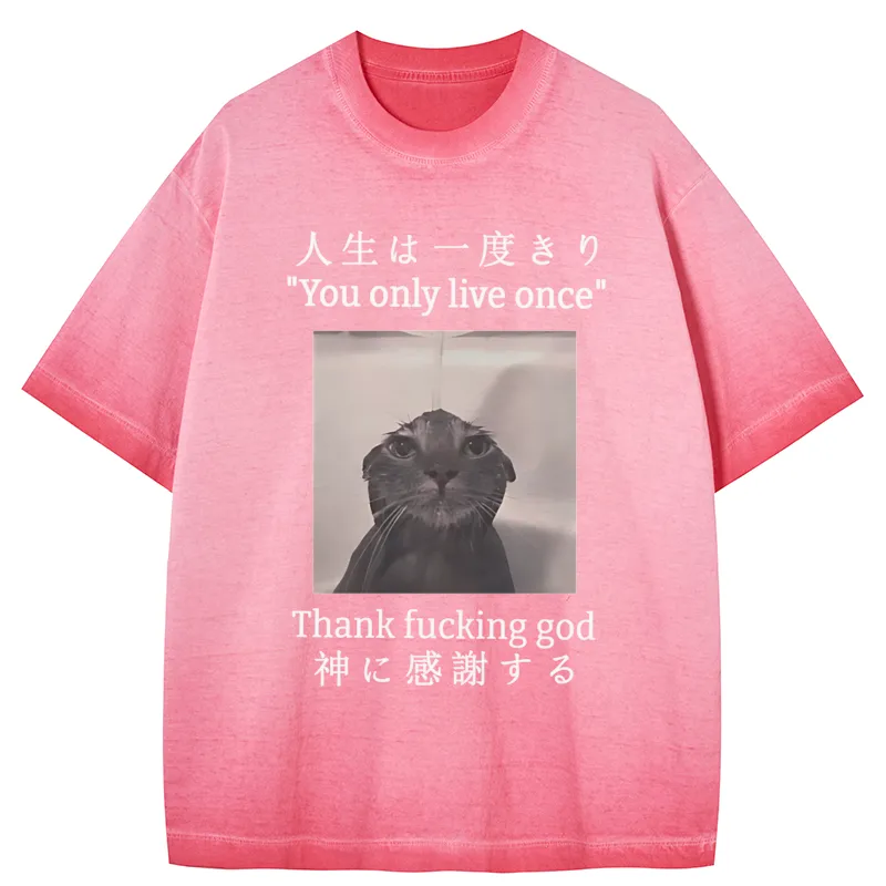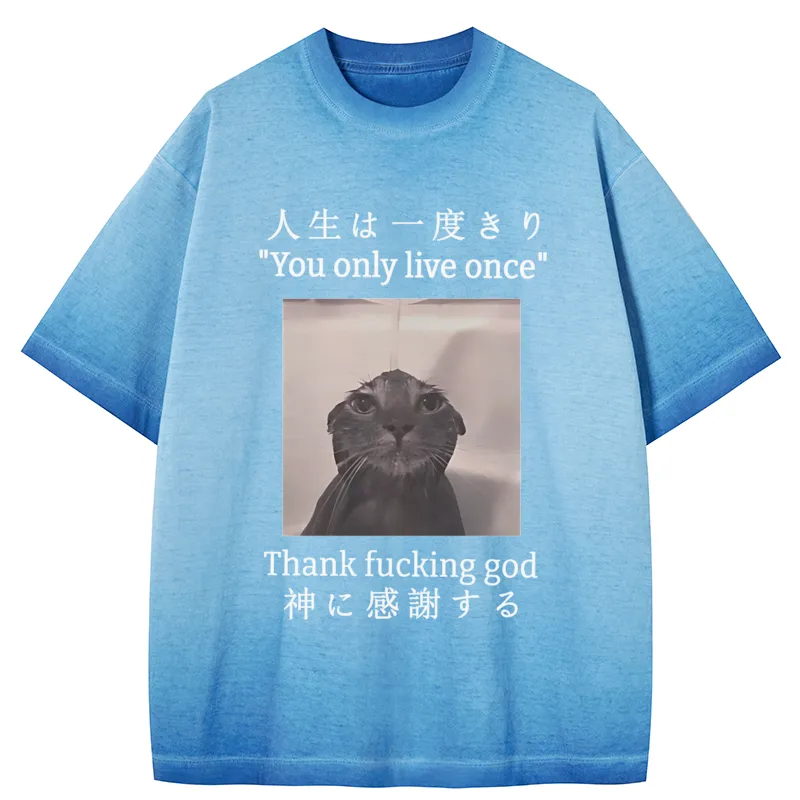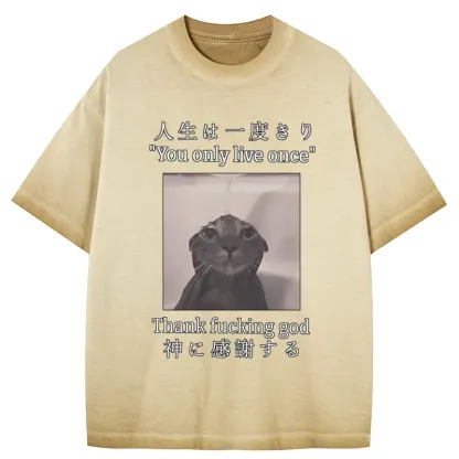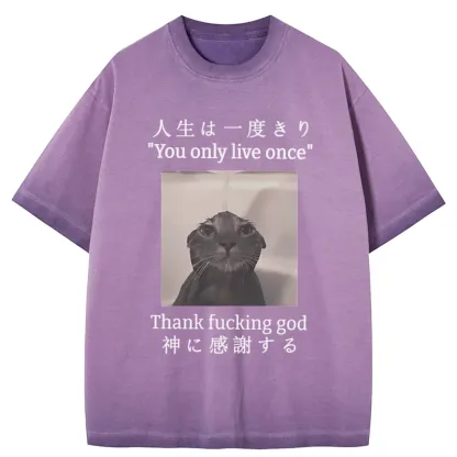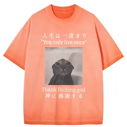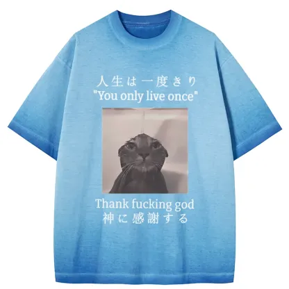 Funny Melancholy Cat Gradient Washed T-Shirt