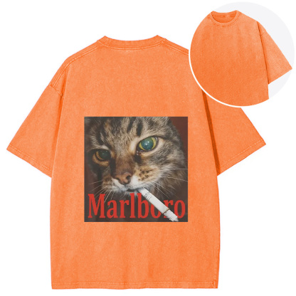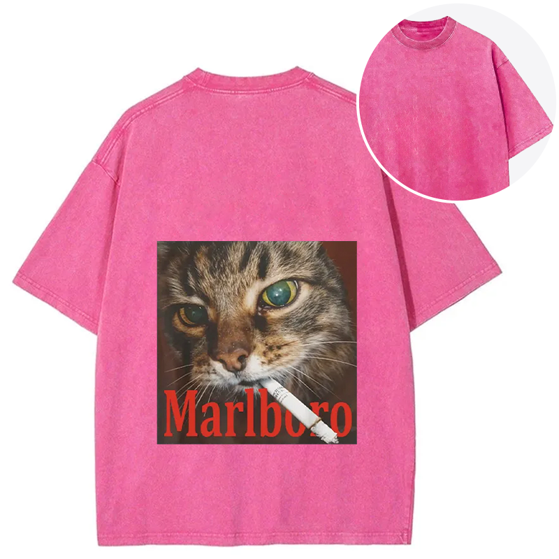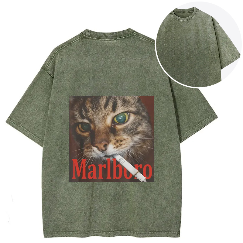 Funny Smoking Cat Meme Back Washed T-Shirt