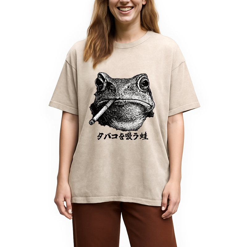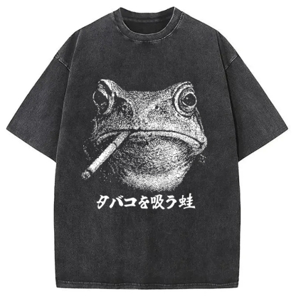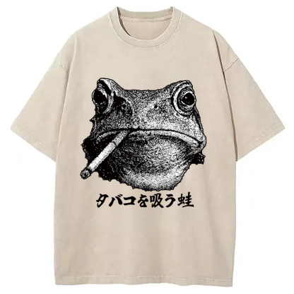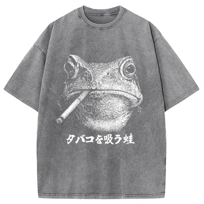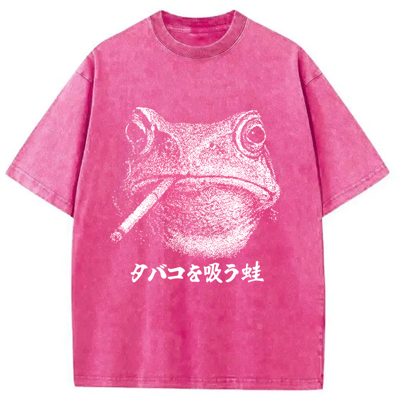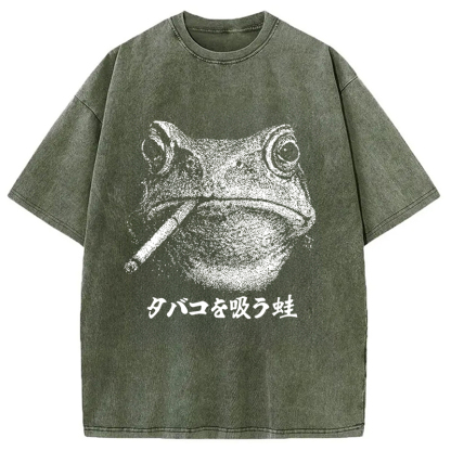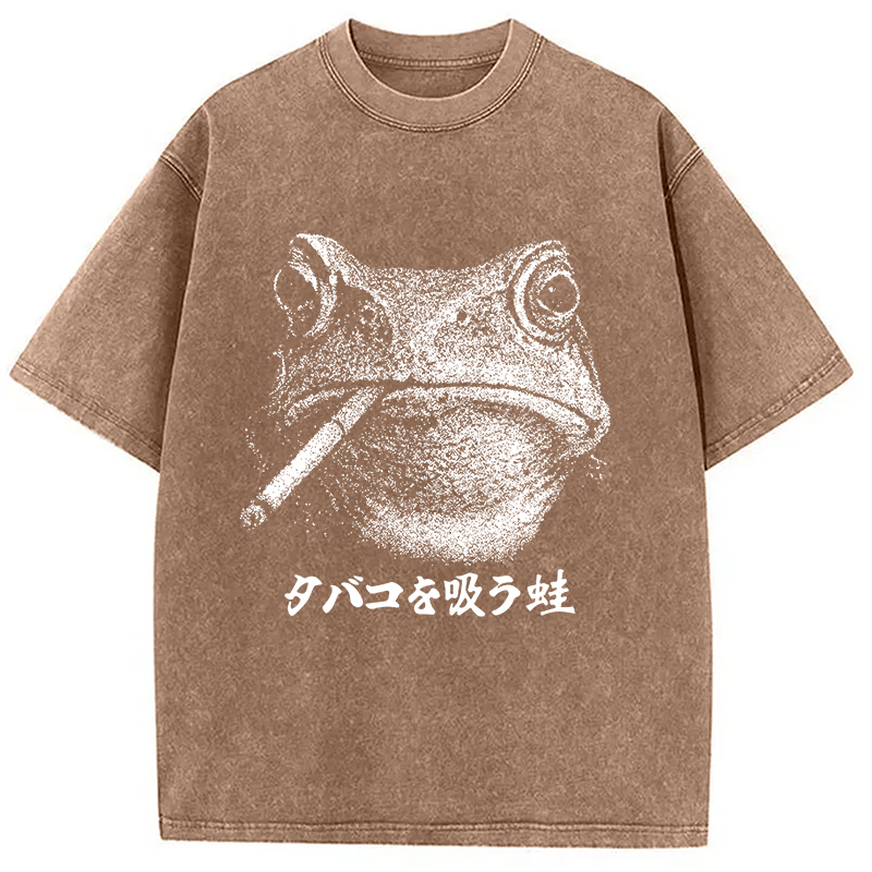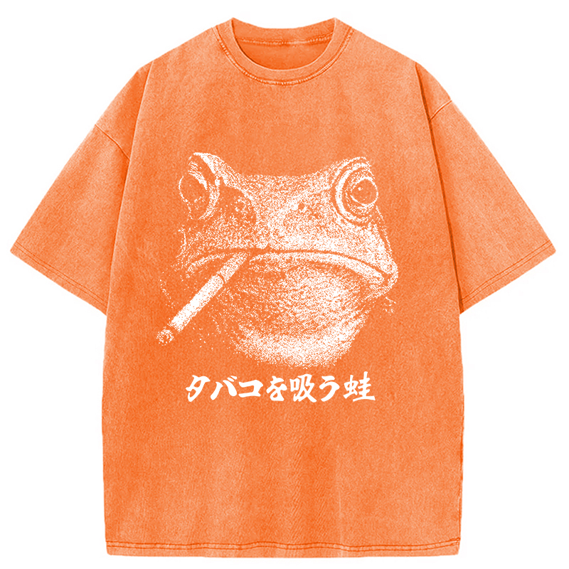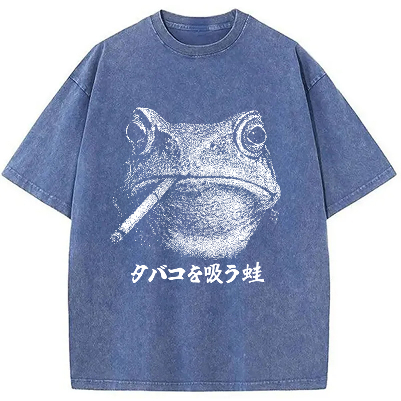 Funny Smoking Frog Meme Washed T-Shirt