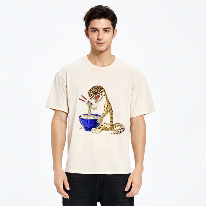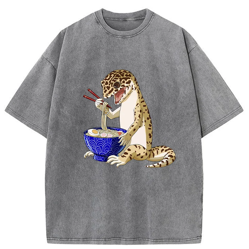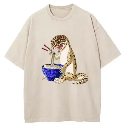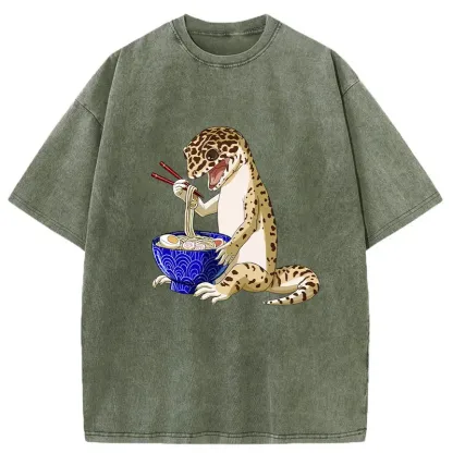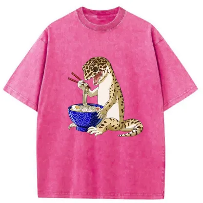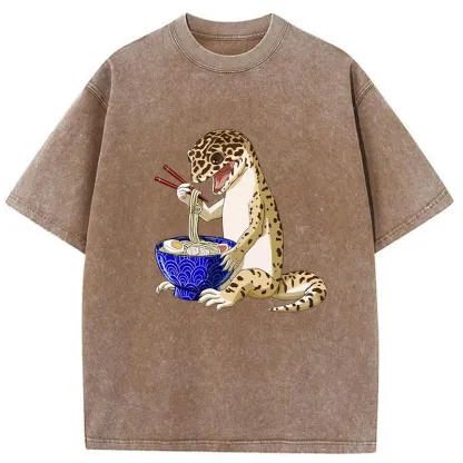 Gecko Eating Ramen Washed T-Shirt For Sale