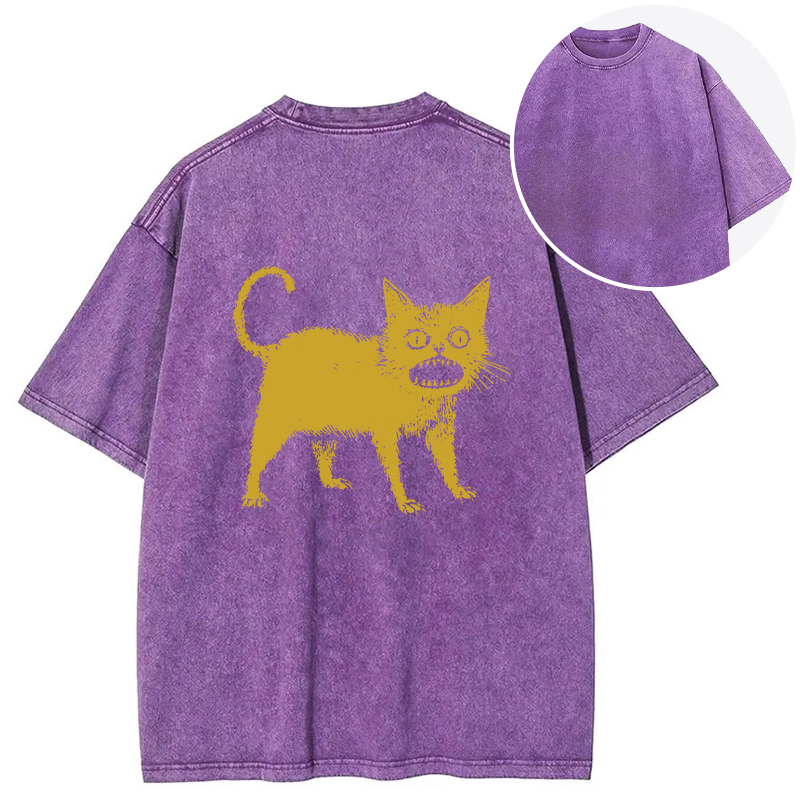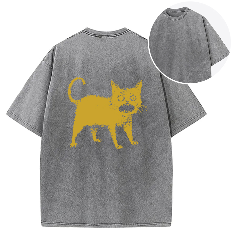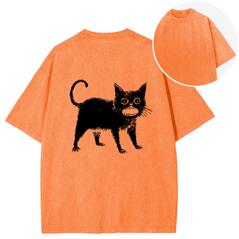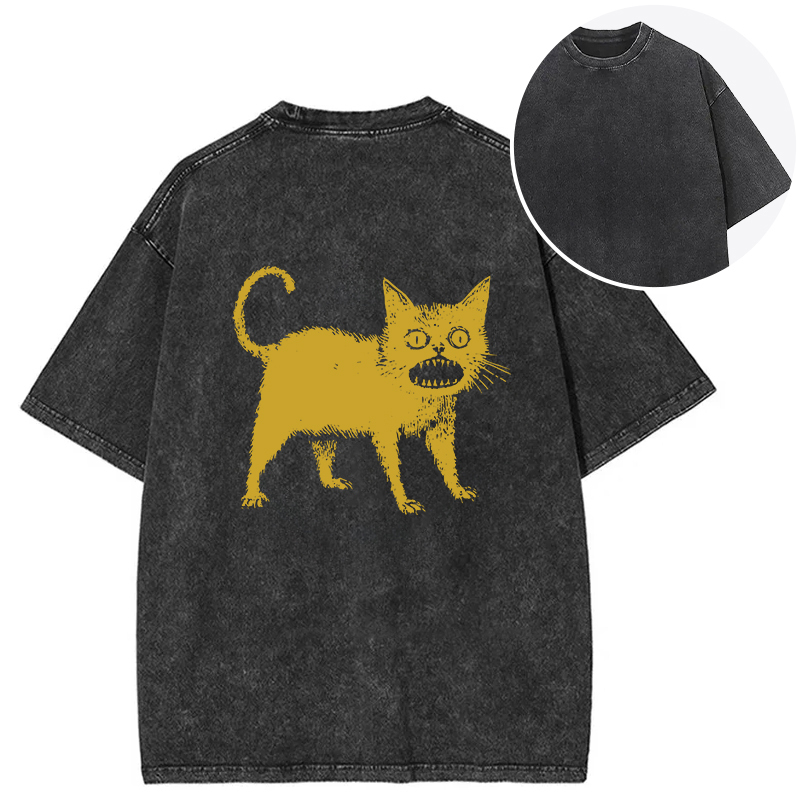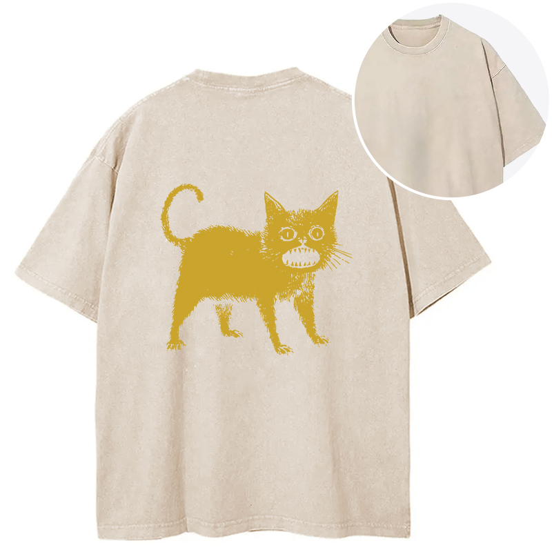 Horrible Japanese Cat Back Washed T-Shirt