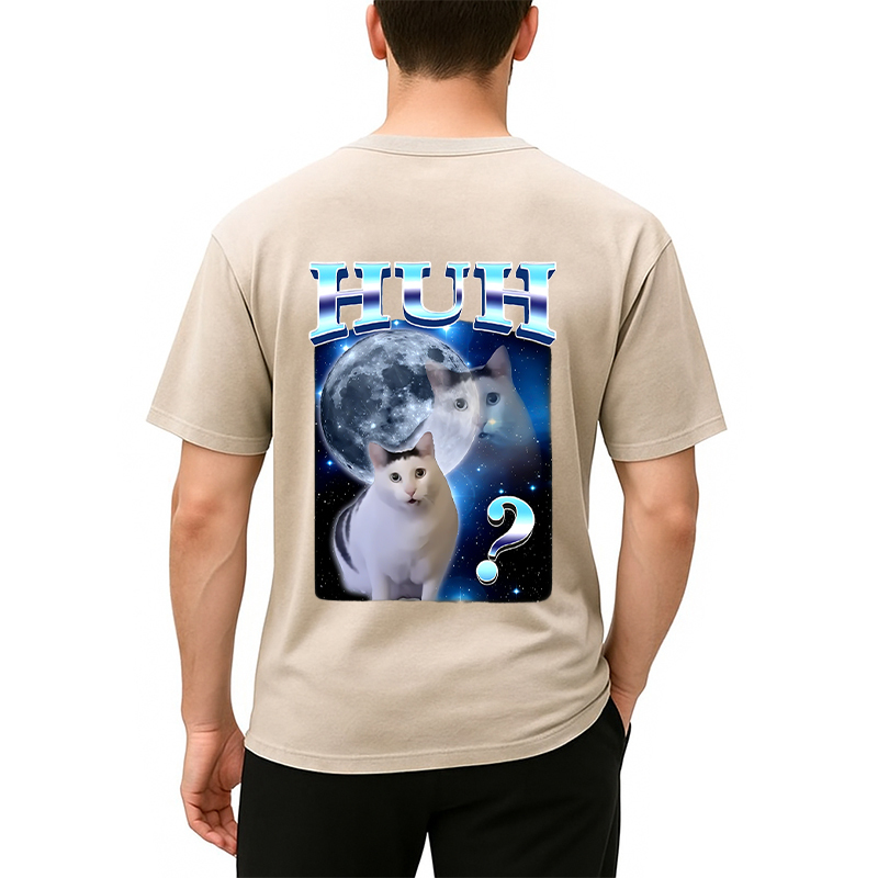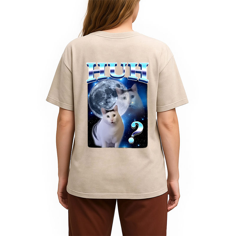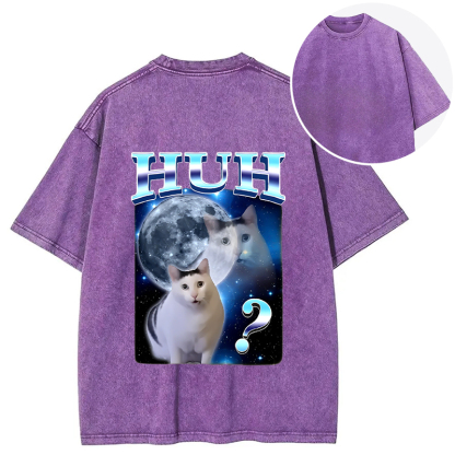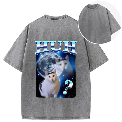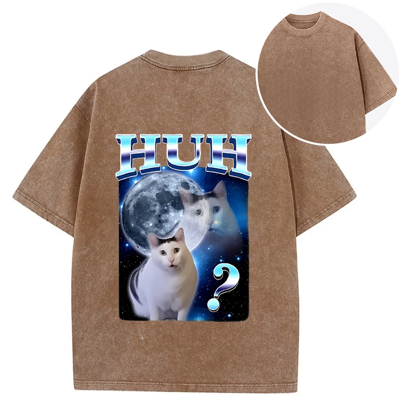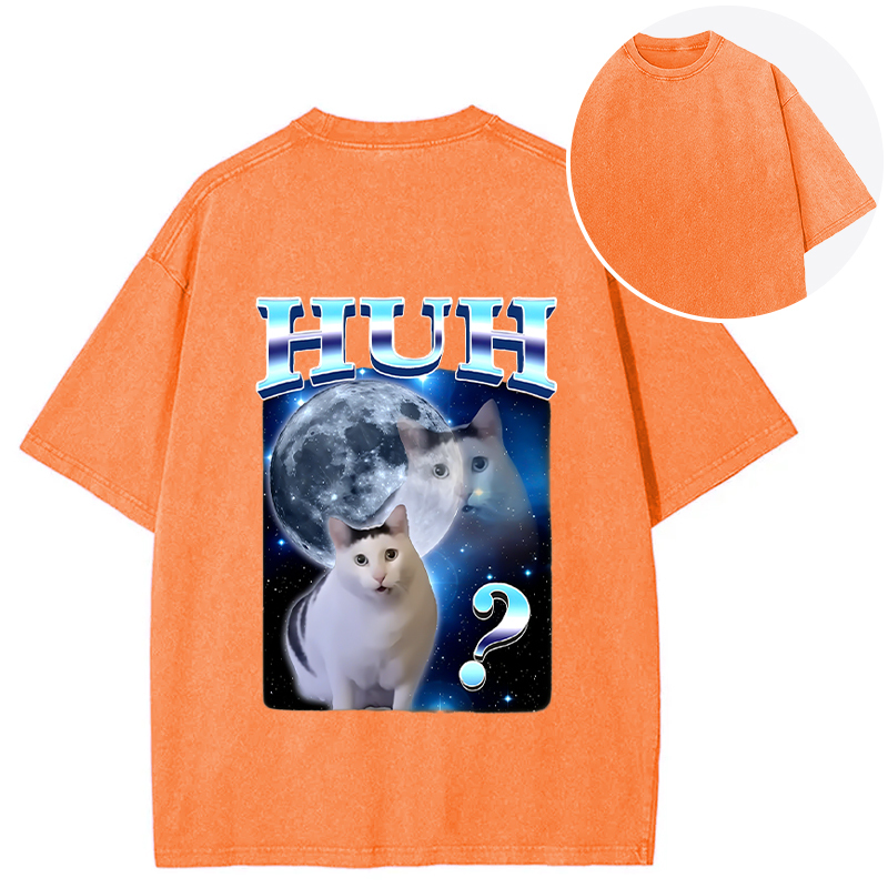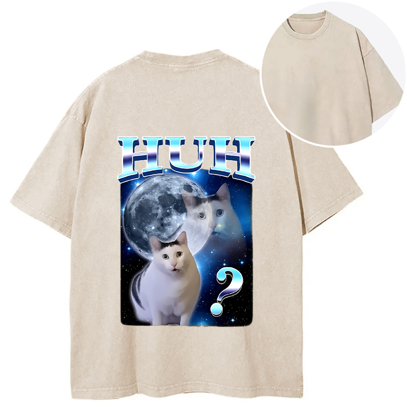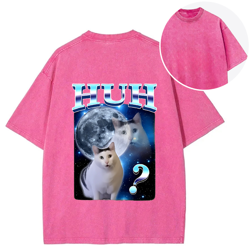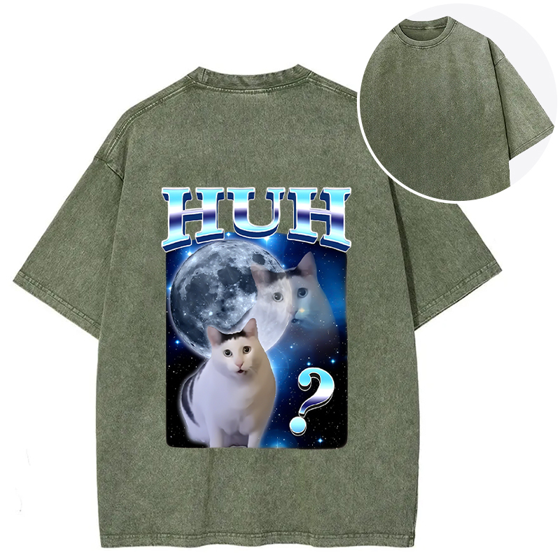 Huh Cat Funny Dank Meme Moon Back Washed T-Shirt