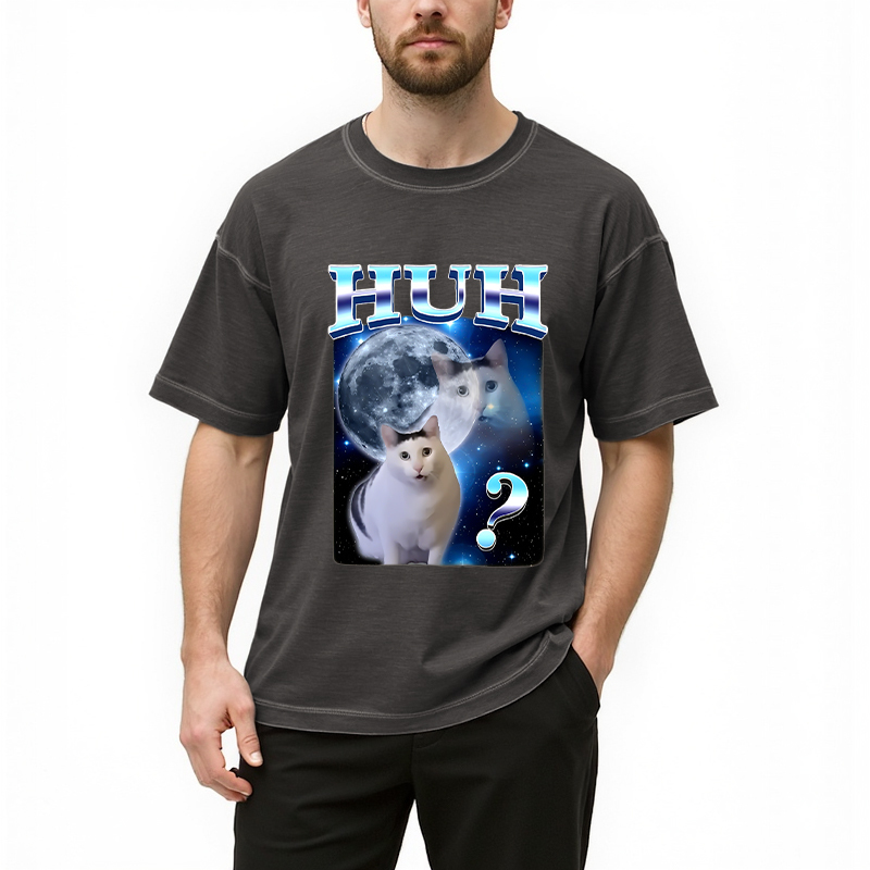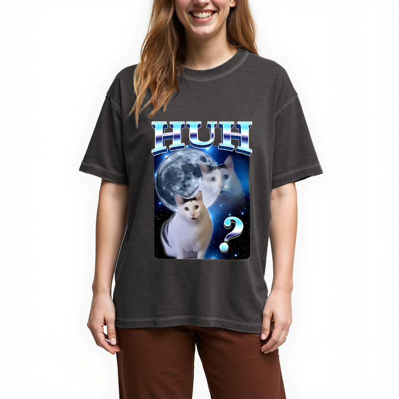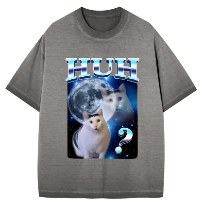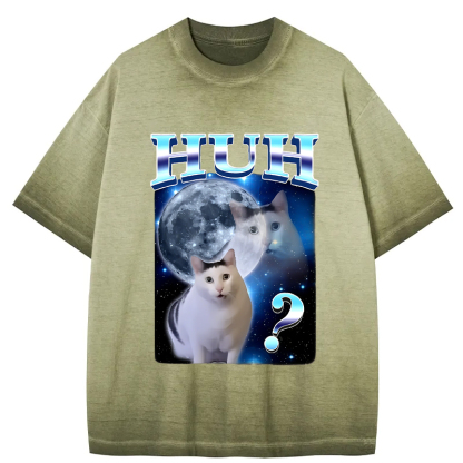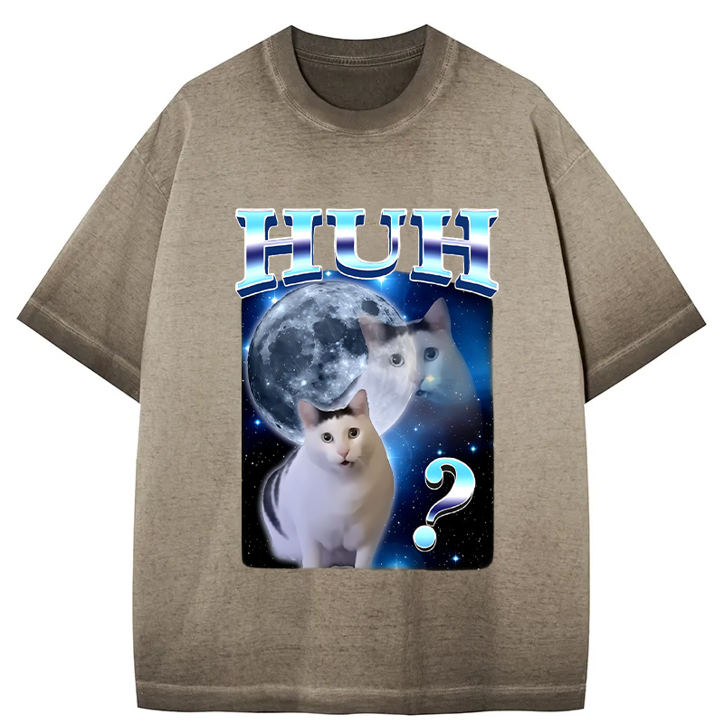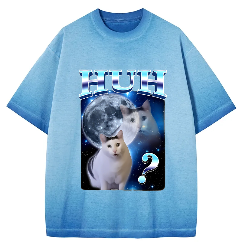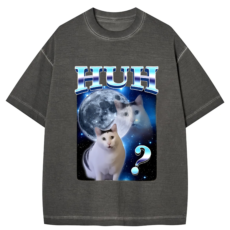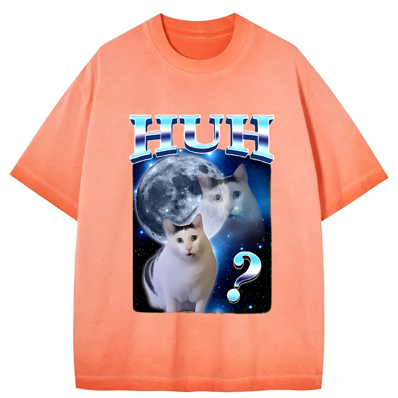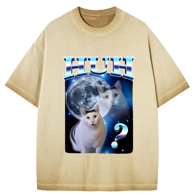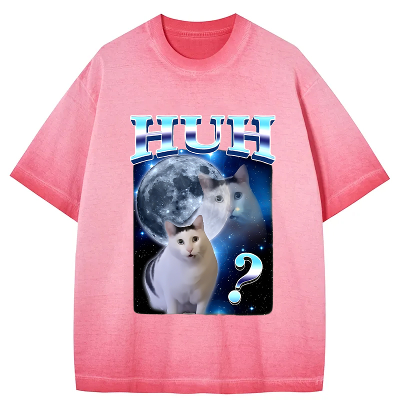 Huh Cat Funny Dank Meme Moon Gradient Washed T-Shirt