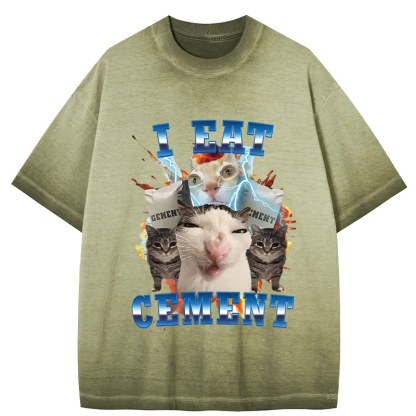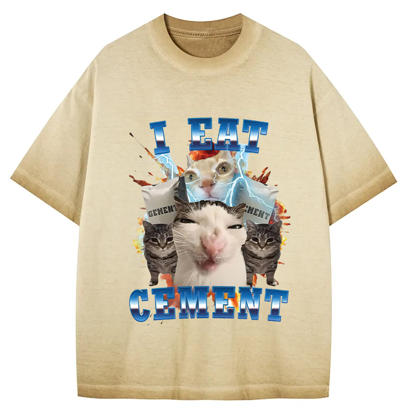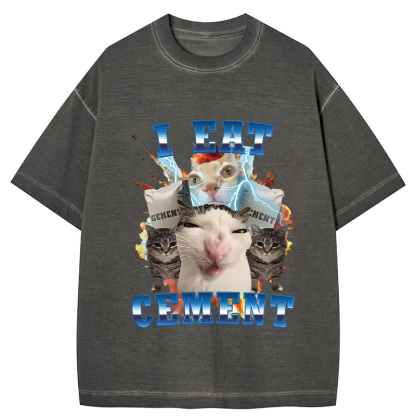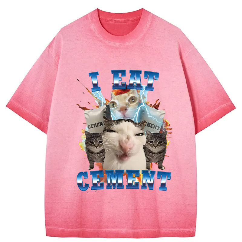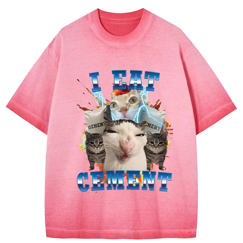 I Eat Cement Funny Cat Meme Gradient Washed T-Shirt