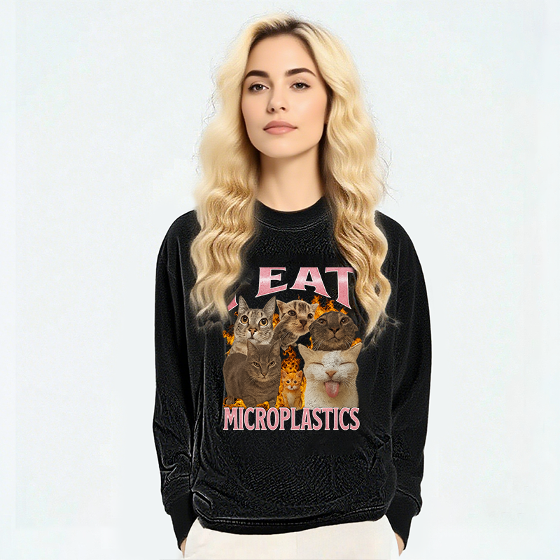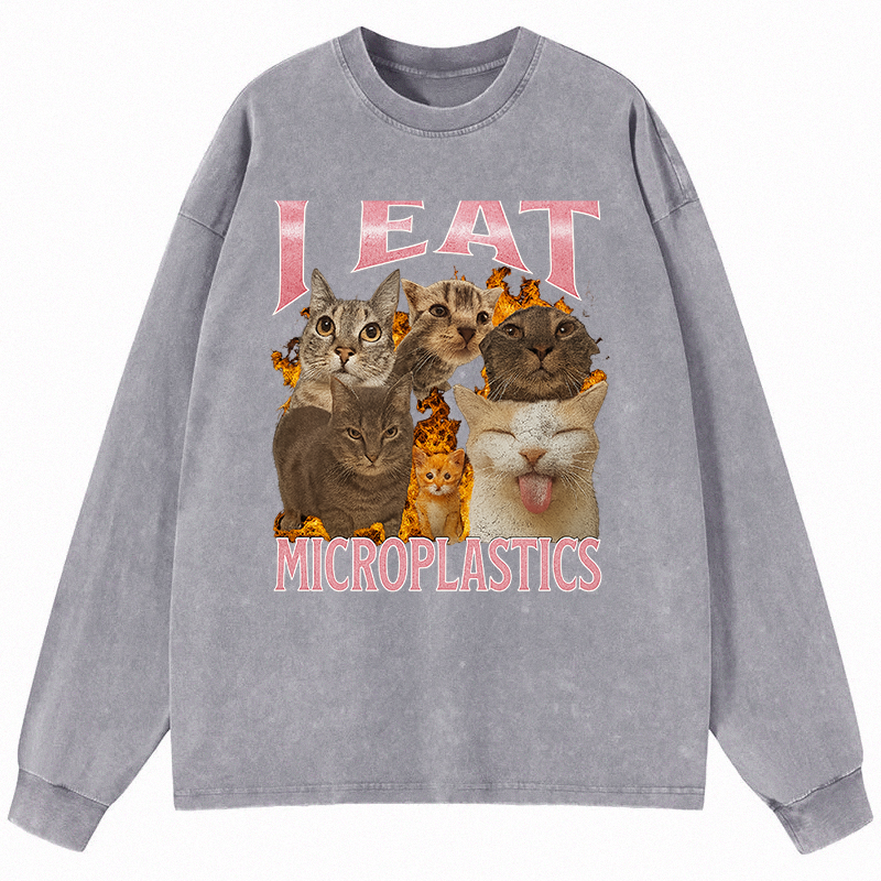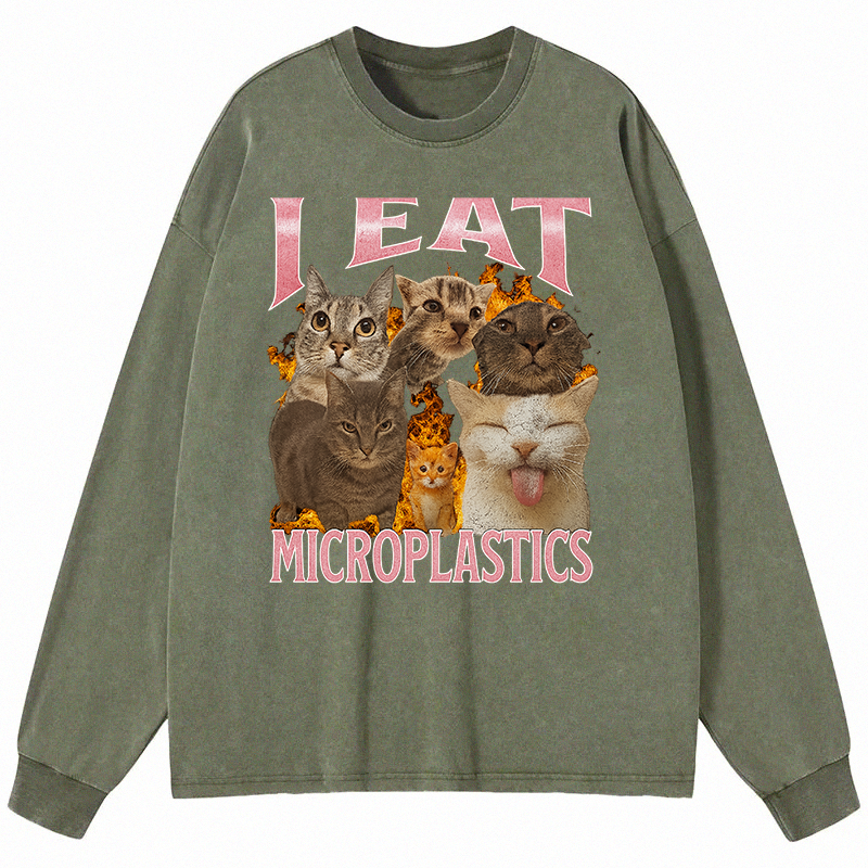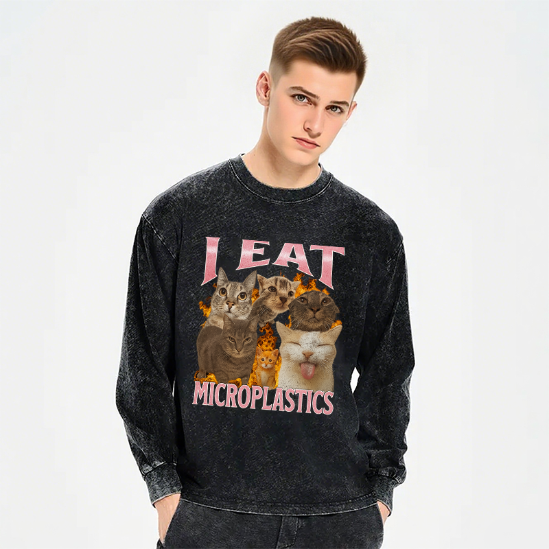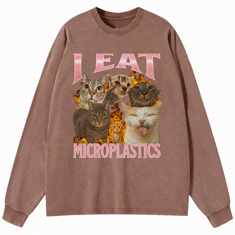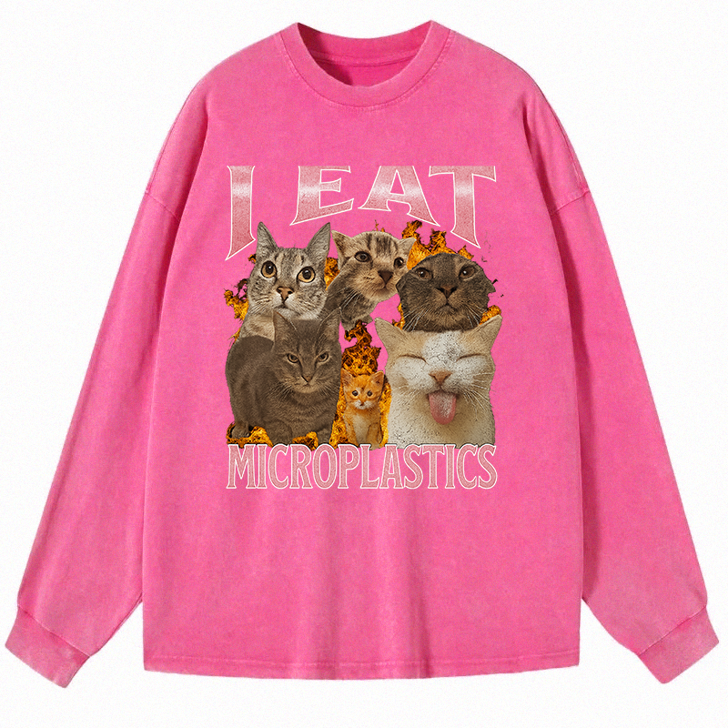 I Eat Microplastics Funny Cat Meme Long Sleeve Washed T-Sh