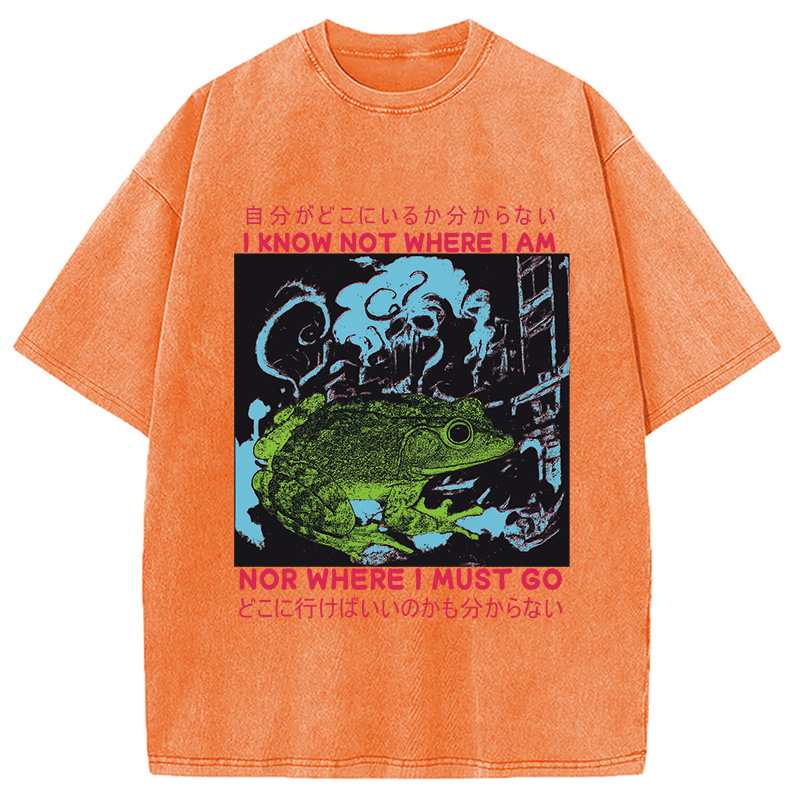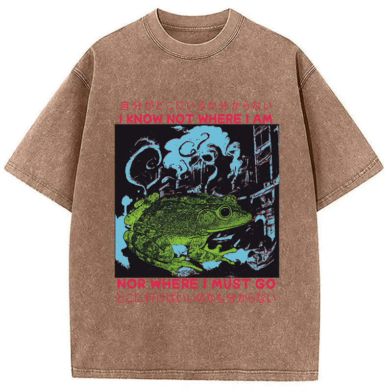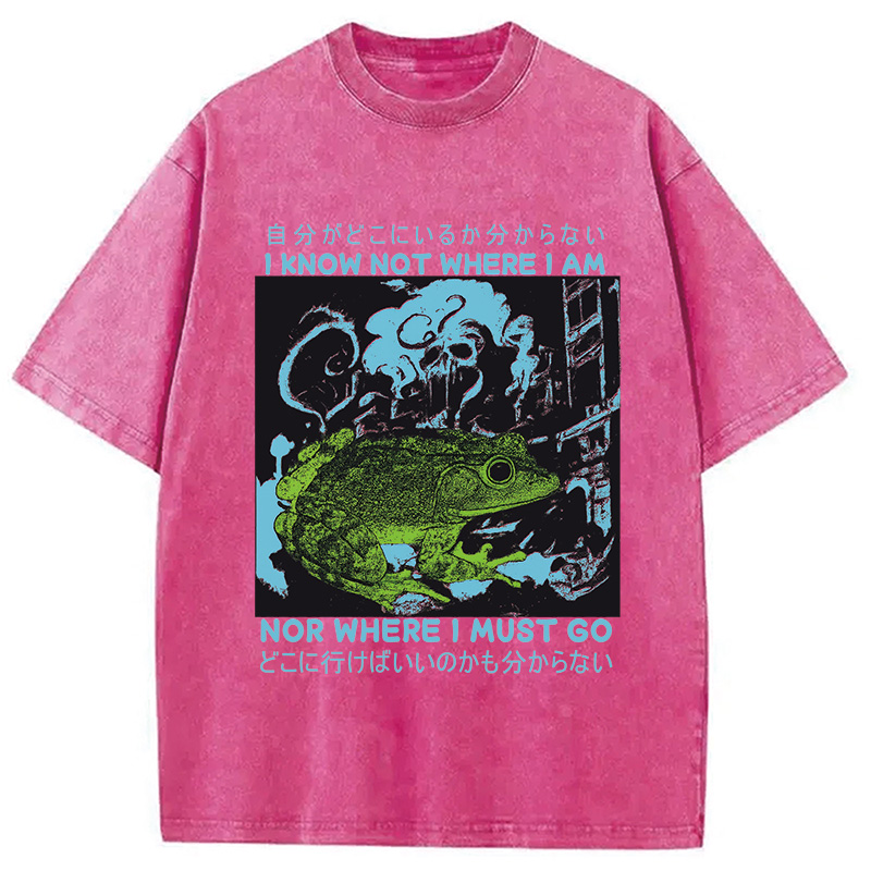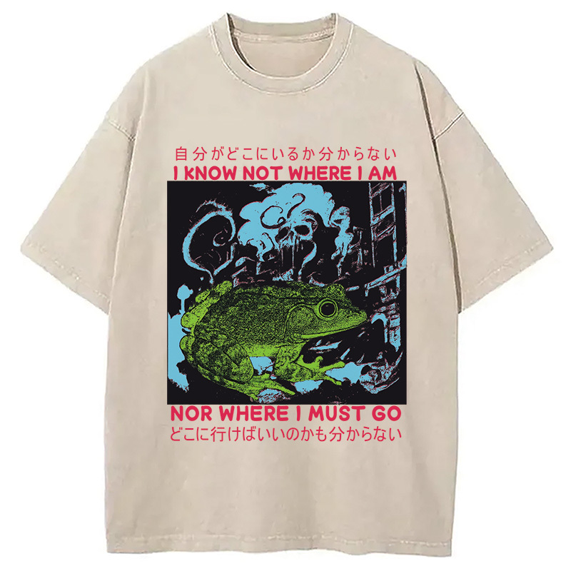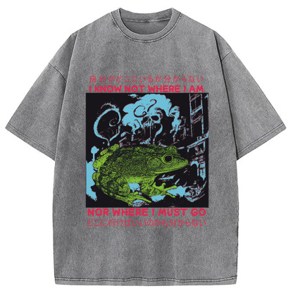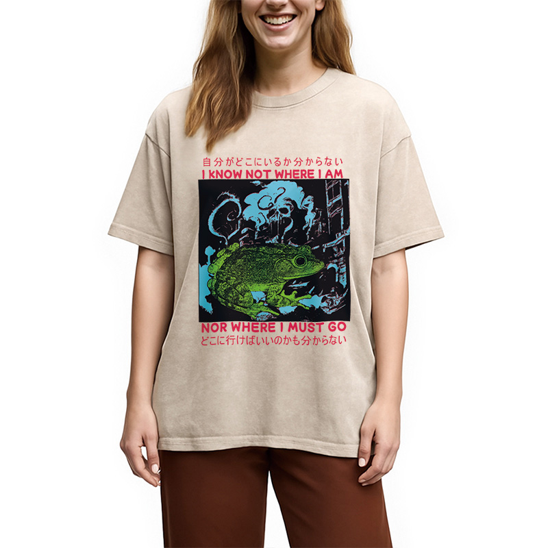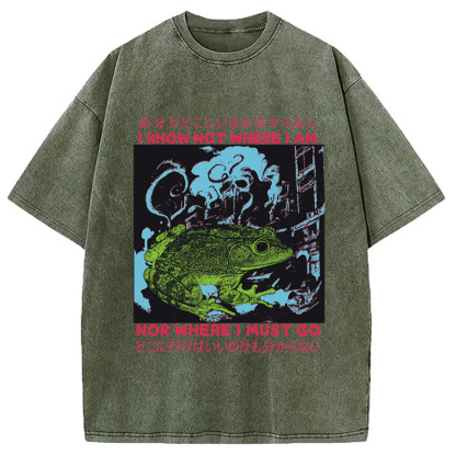 I Know Not Where I Am Funny Frog Washed T-Shirt