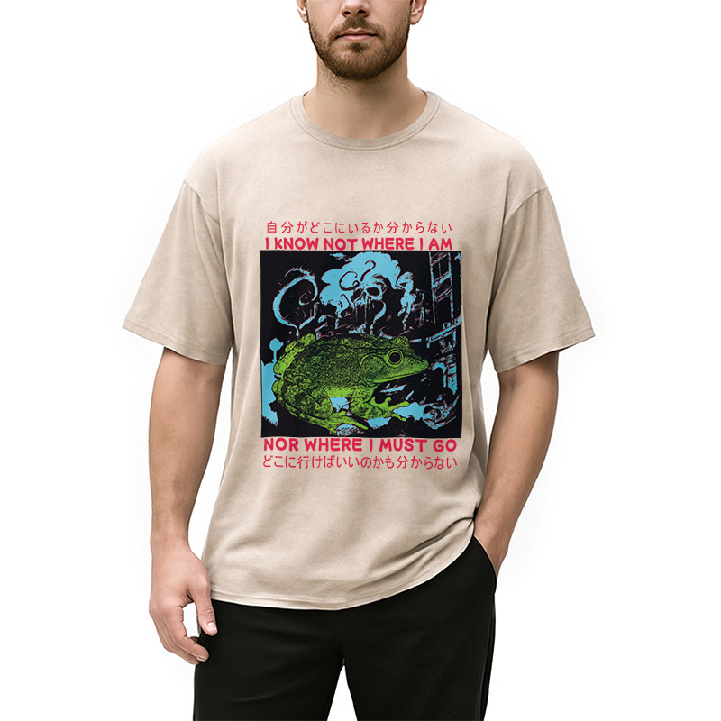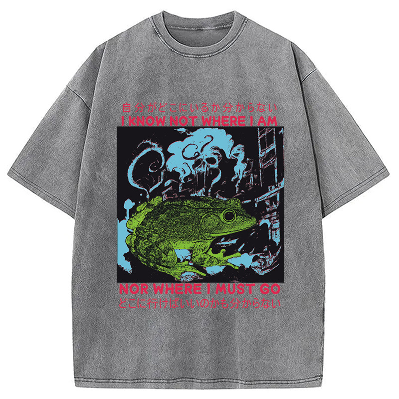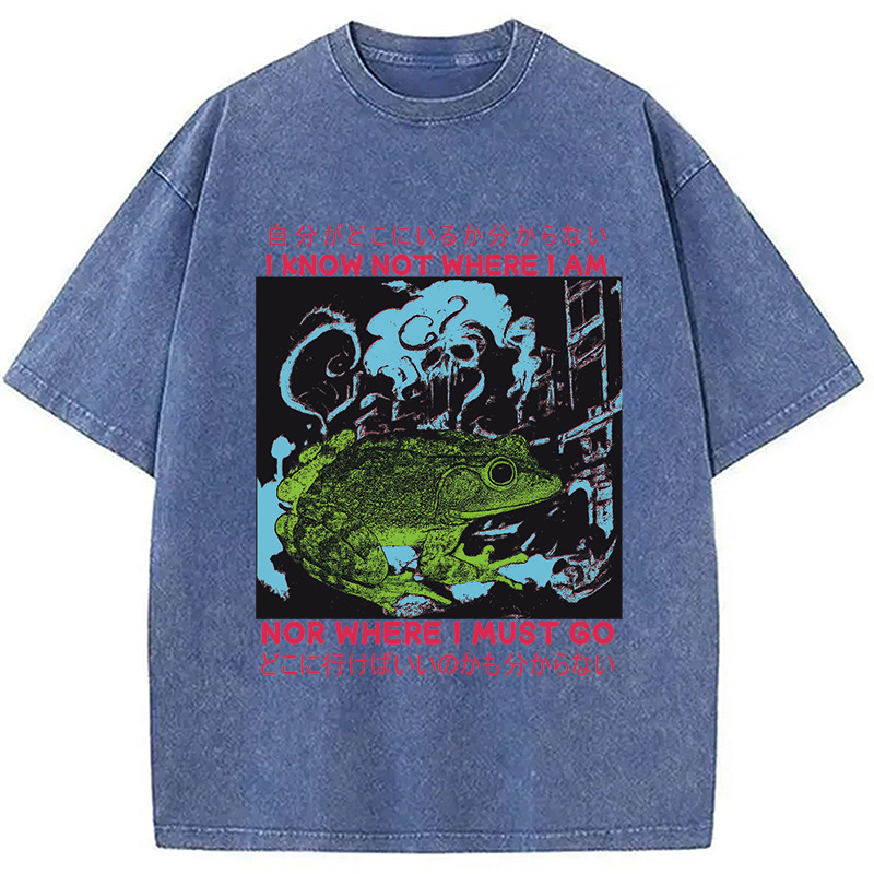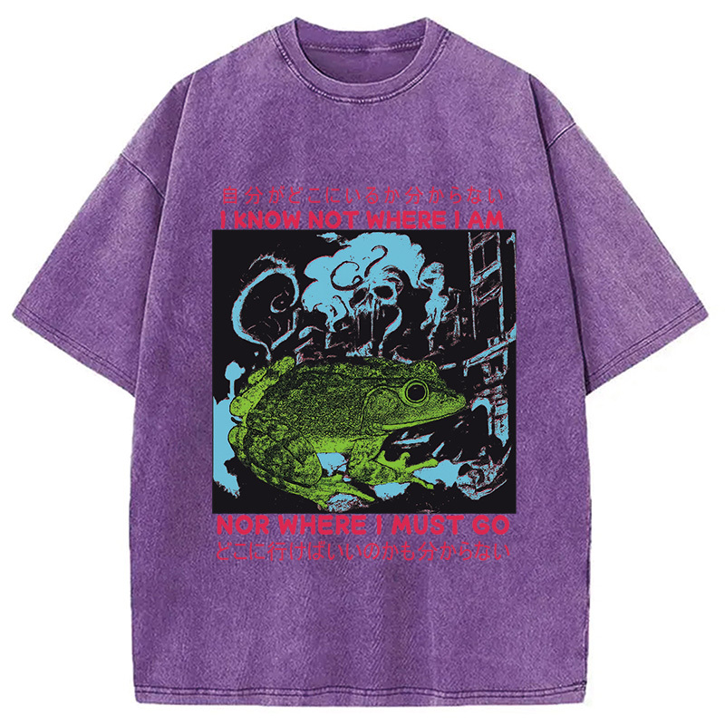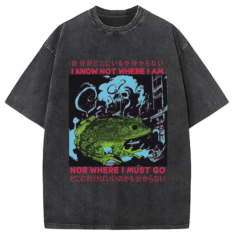 I Know Not Where I Am Funny Frog Washed T-Shirt