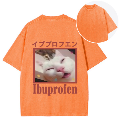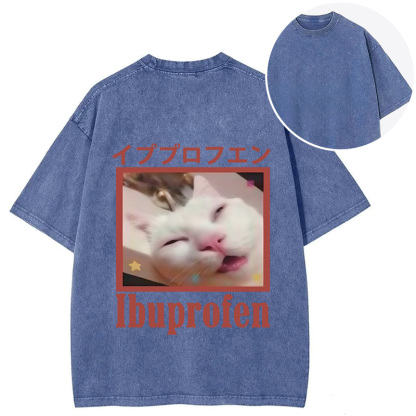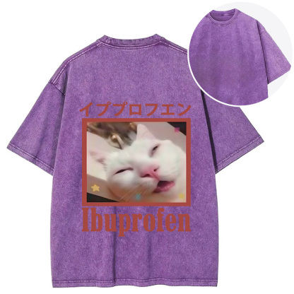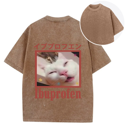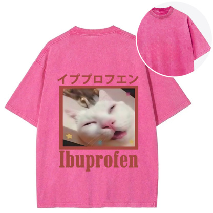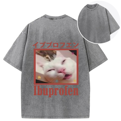 Ibuprofen Meme Cat Back Washed T-Shirt