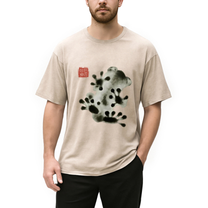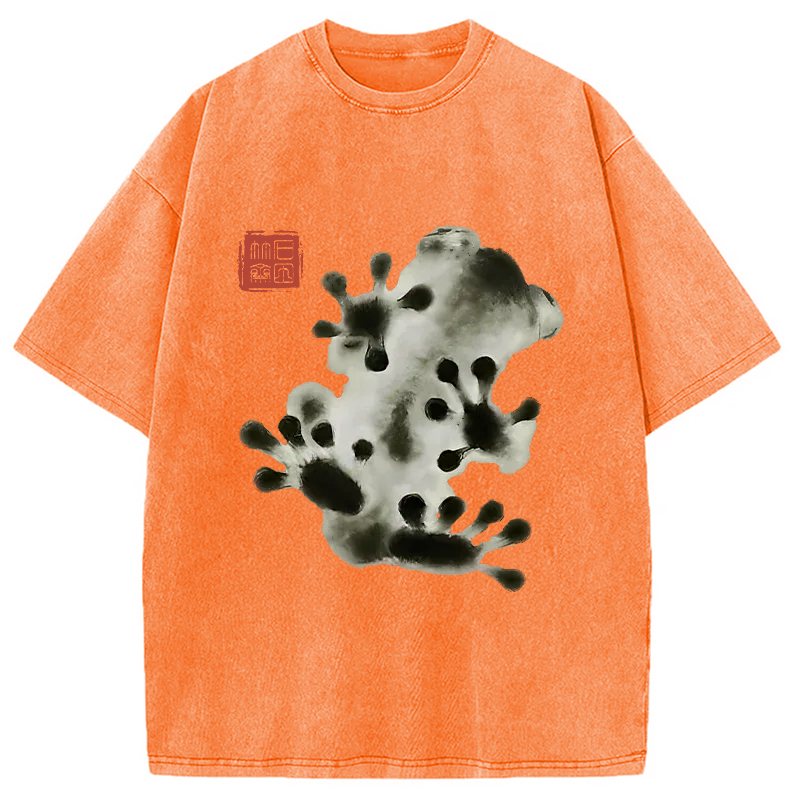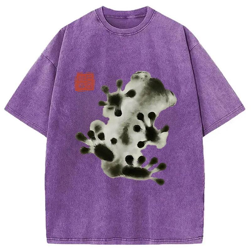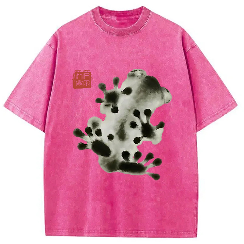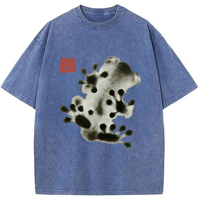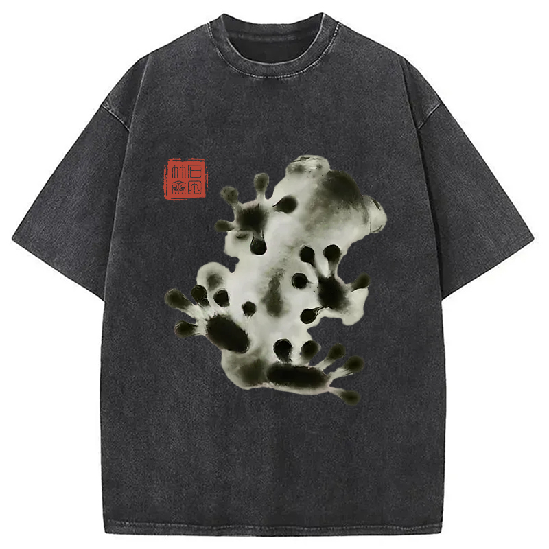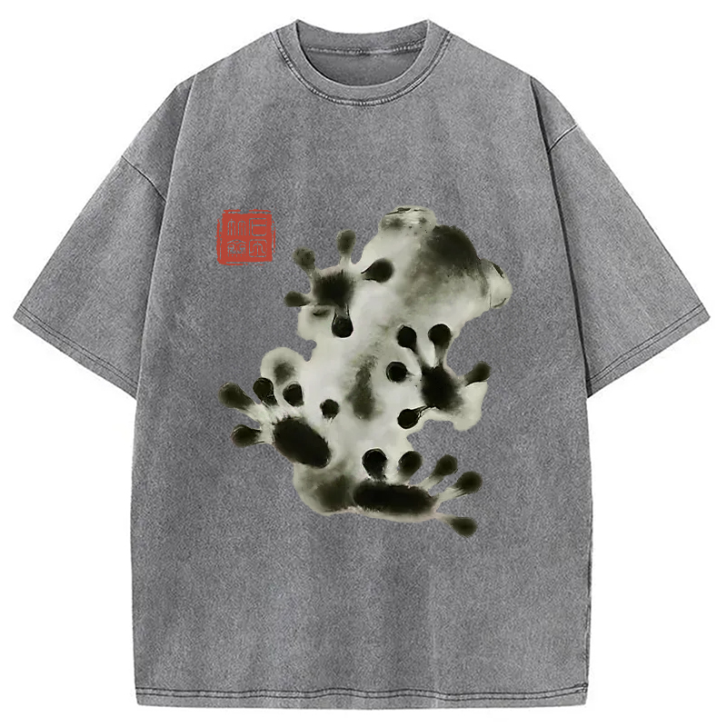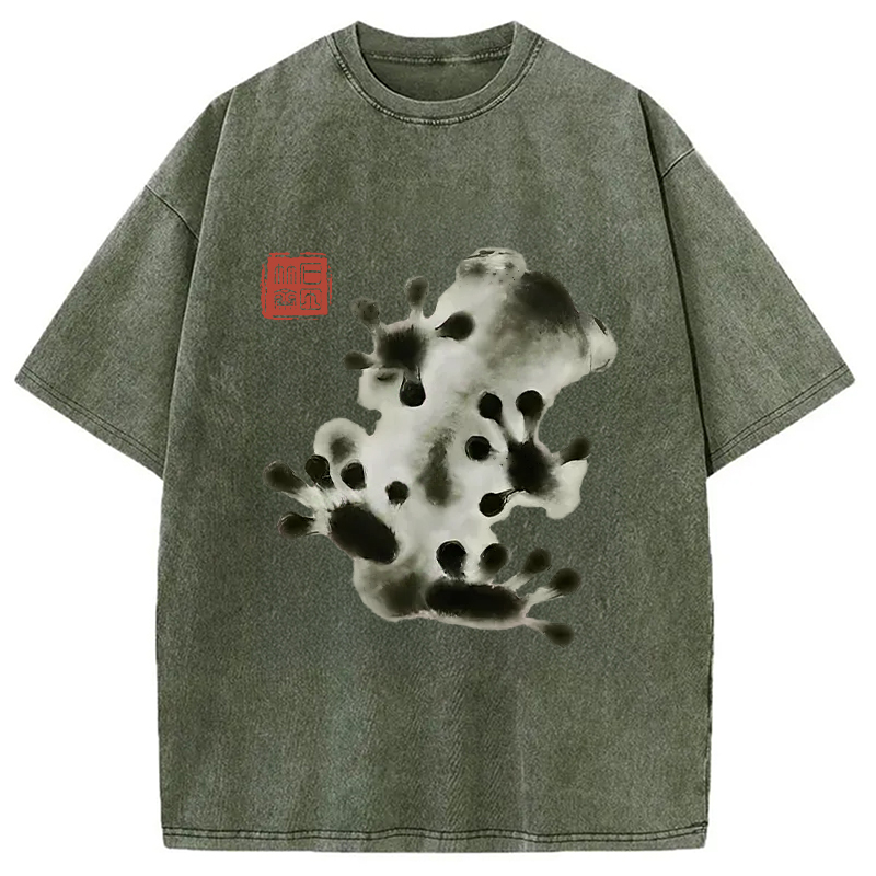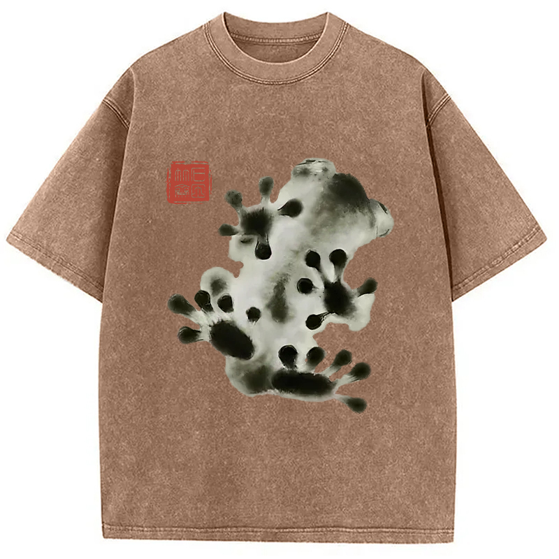 Ink Painting Frog Washed T-Shirt