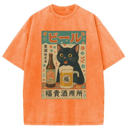 Japanese Black Cat Beer Washed T-Shirt