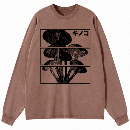 Japanese Mushrooms Long Sleeve Washed T-Shirt