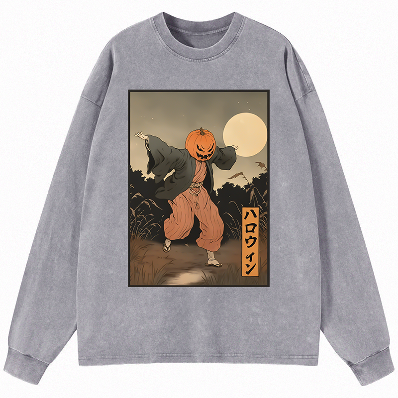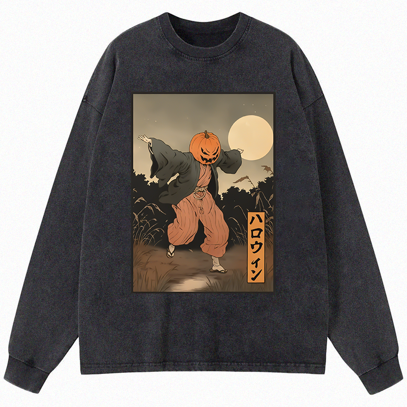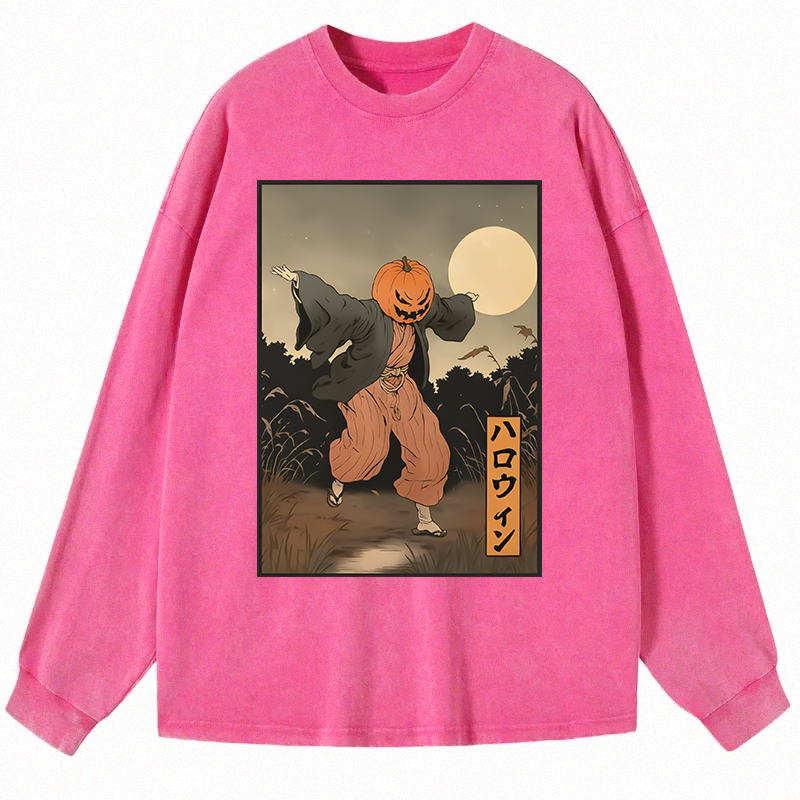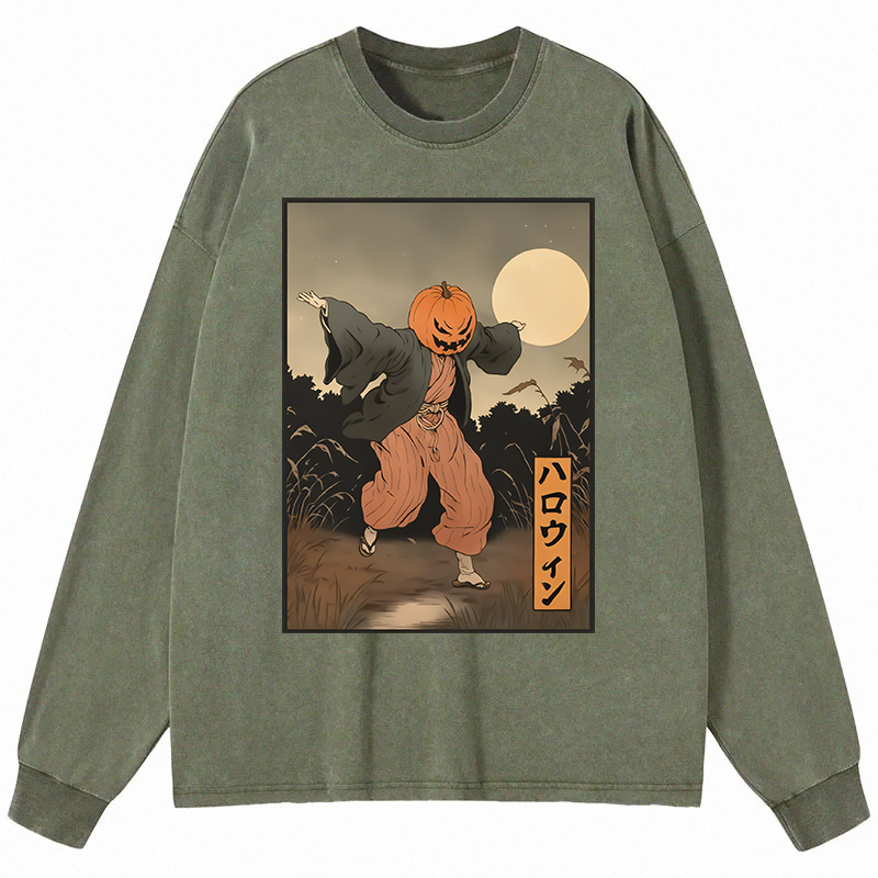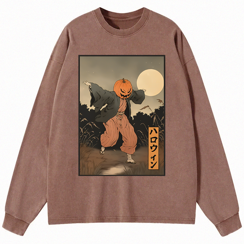 Japanese Pumpkin Monster Long Sleeve Washed T-Shirt