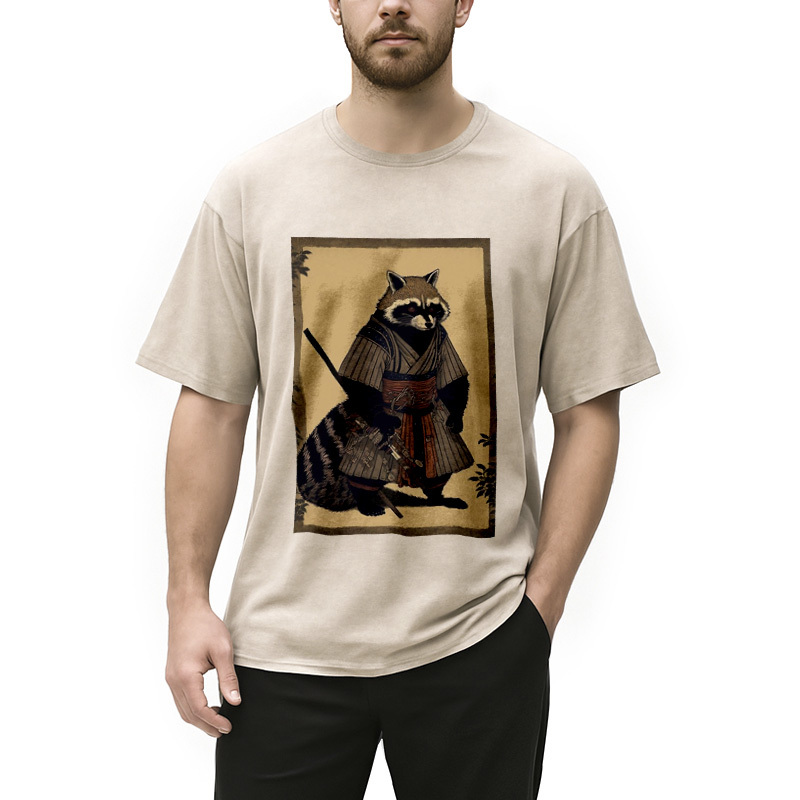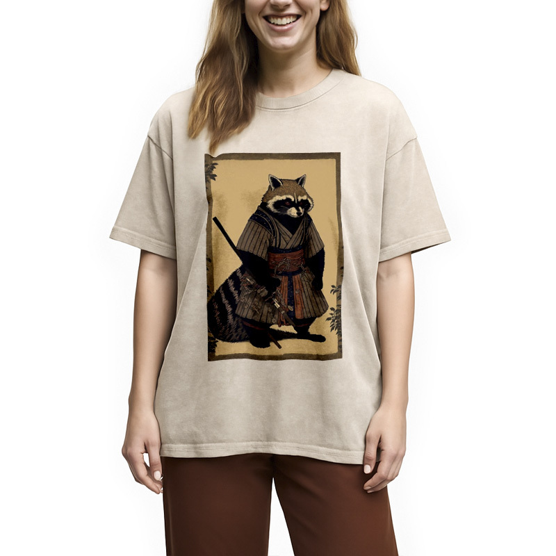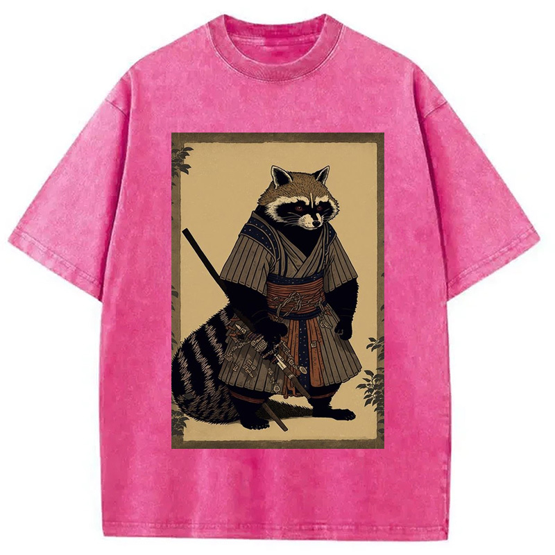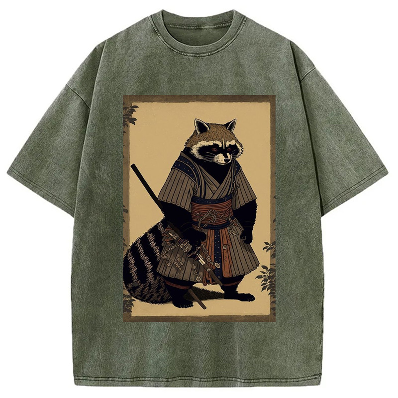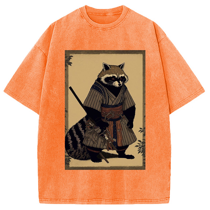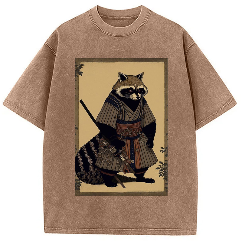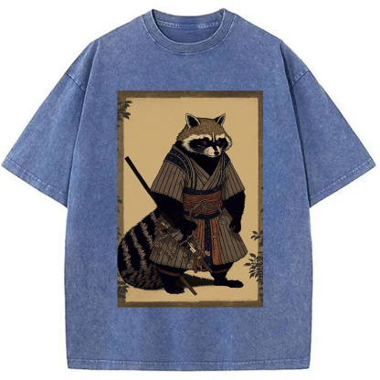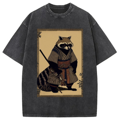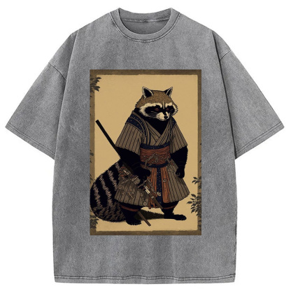 japanese Raccoon Samurai Washed T-Shirt