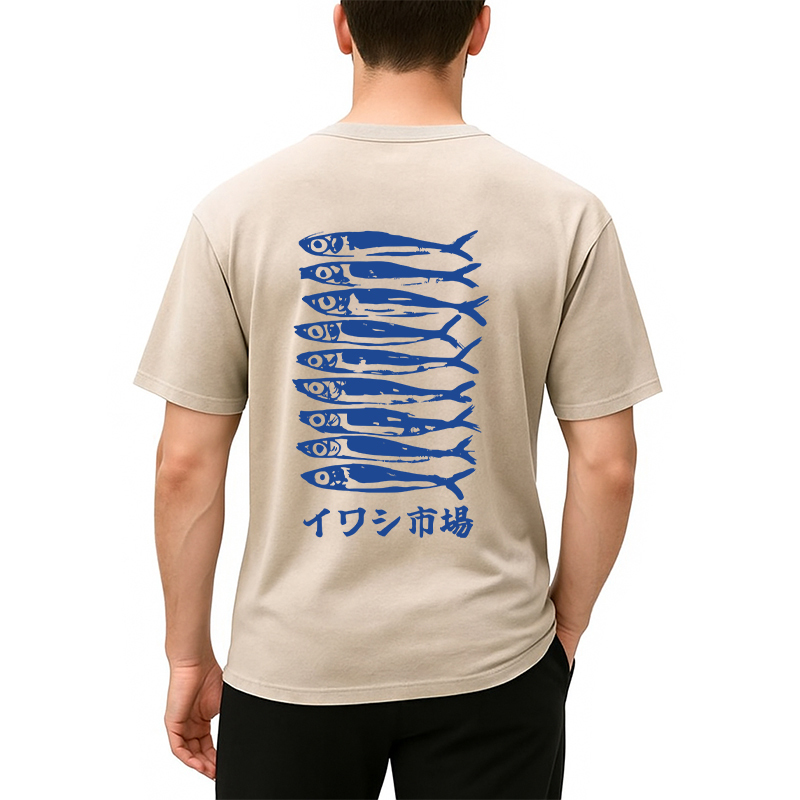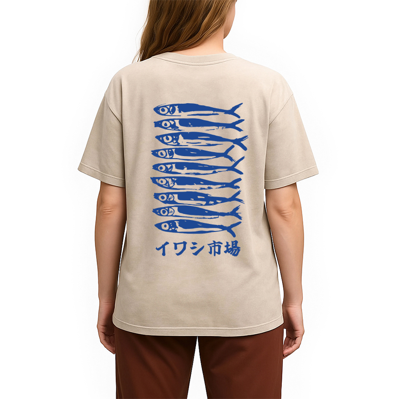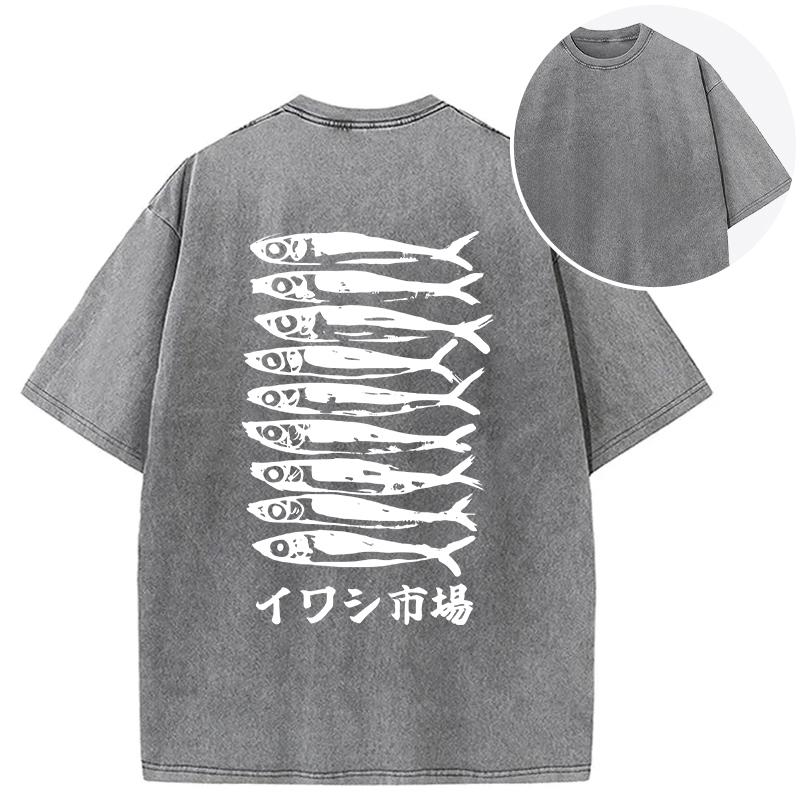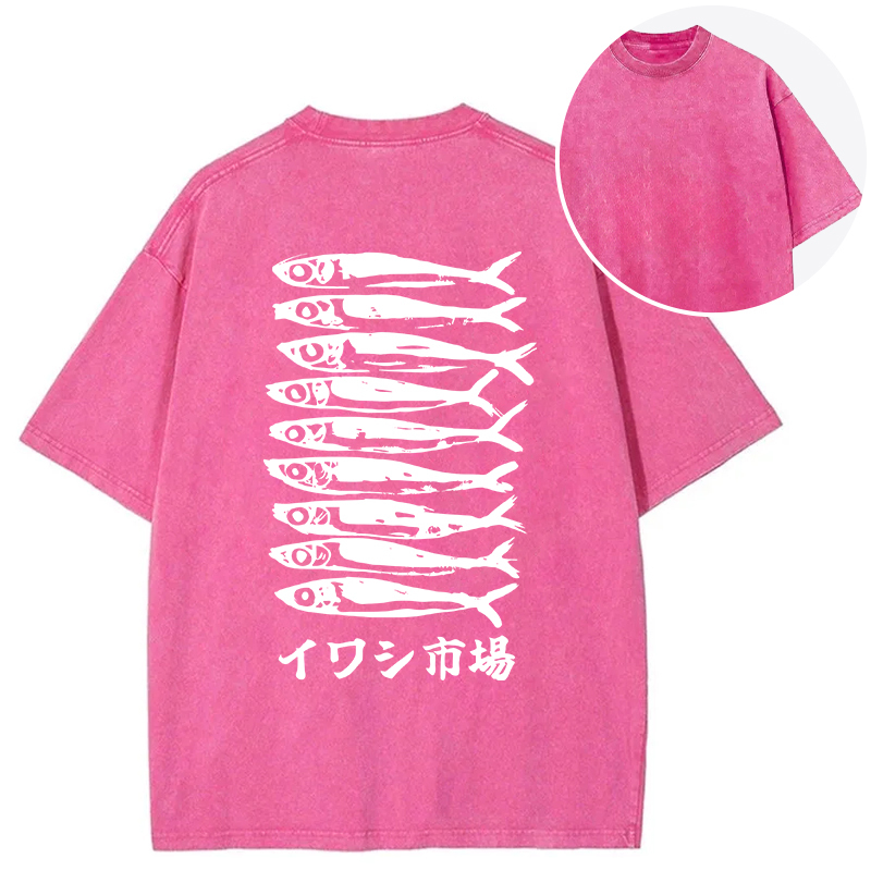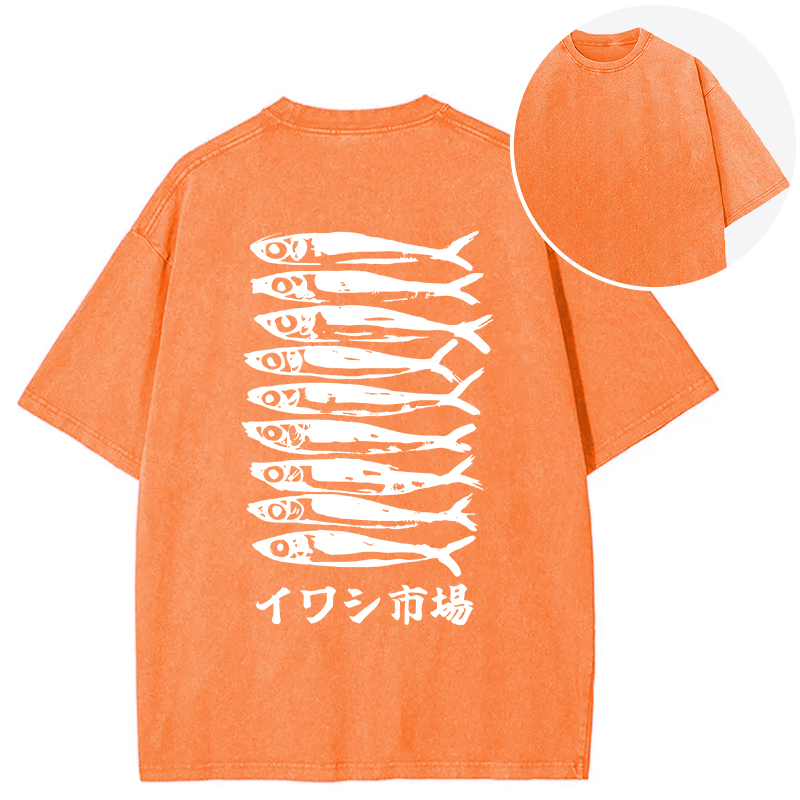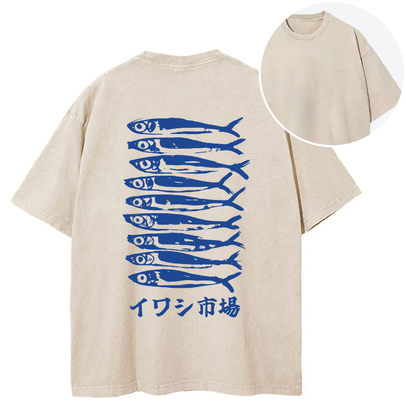 Japanese Sardine Market Back Washed T-Shirt
