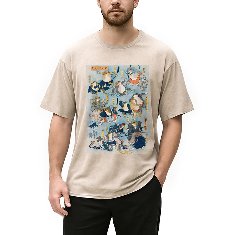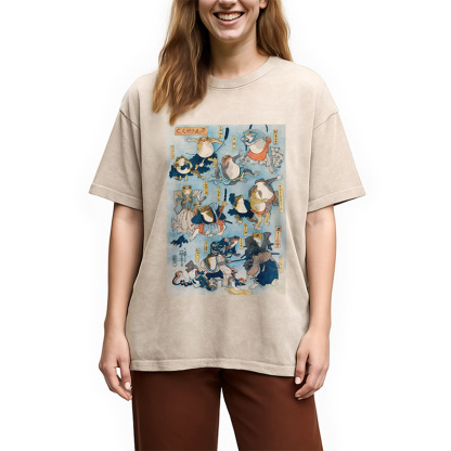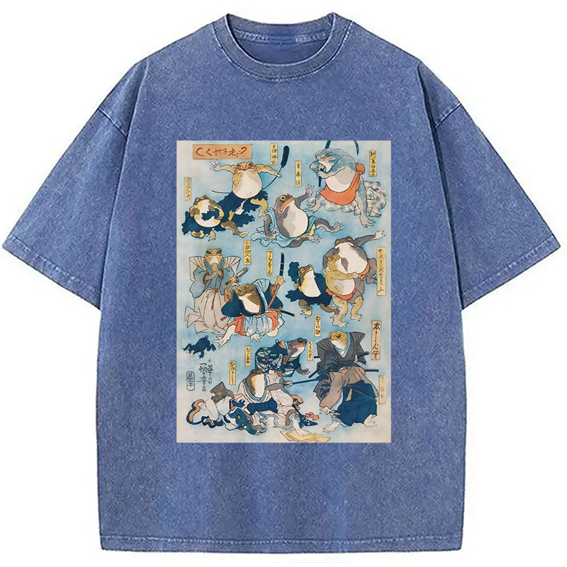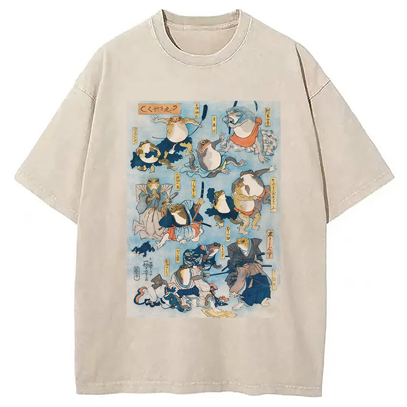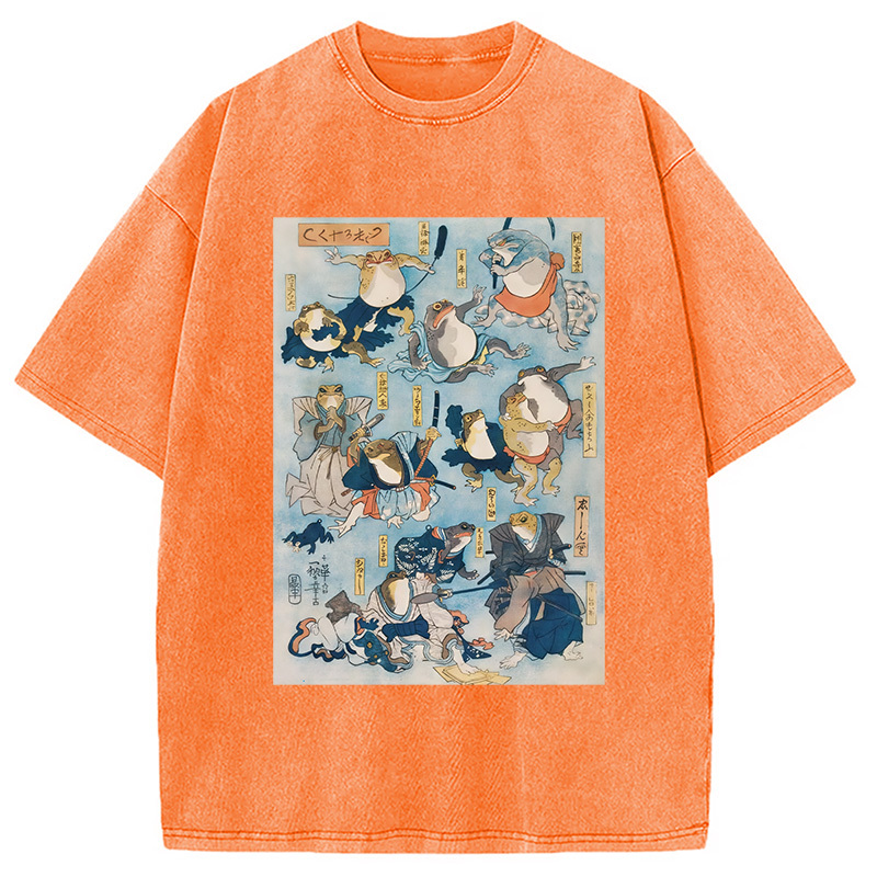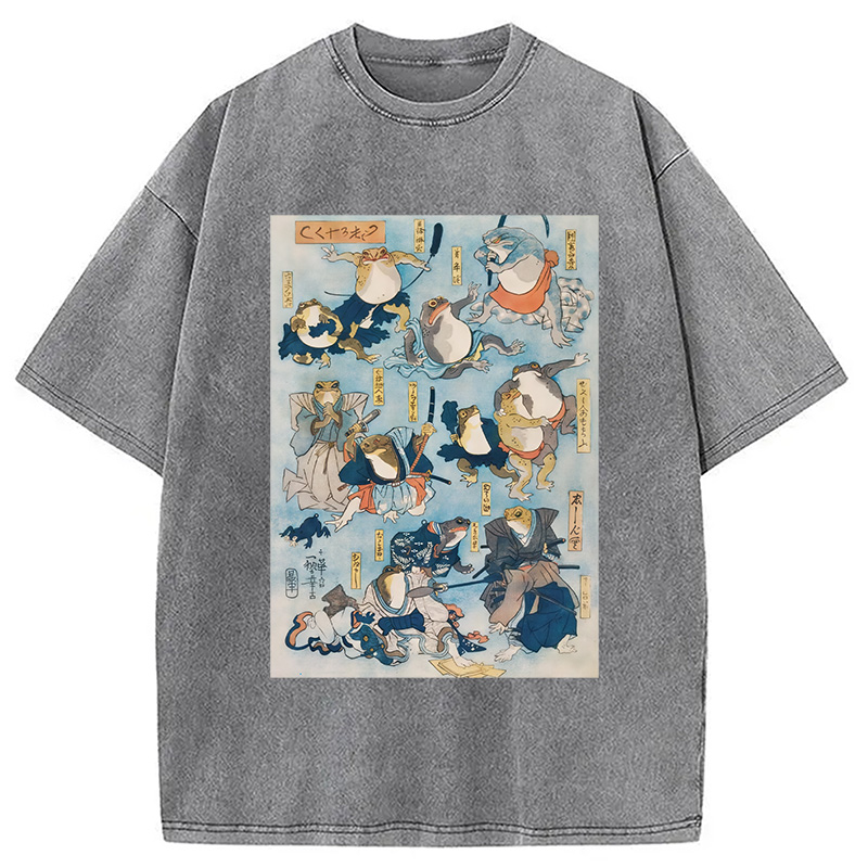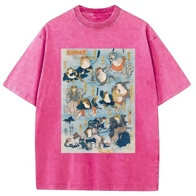 Japanese Ukiyo-e Samurai Ninja Frogs Washed T-Shirt