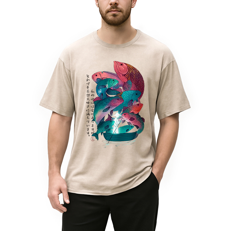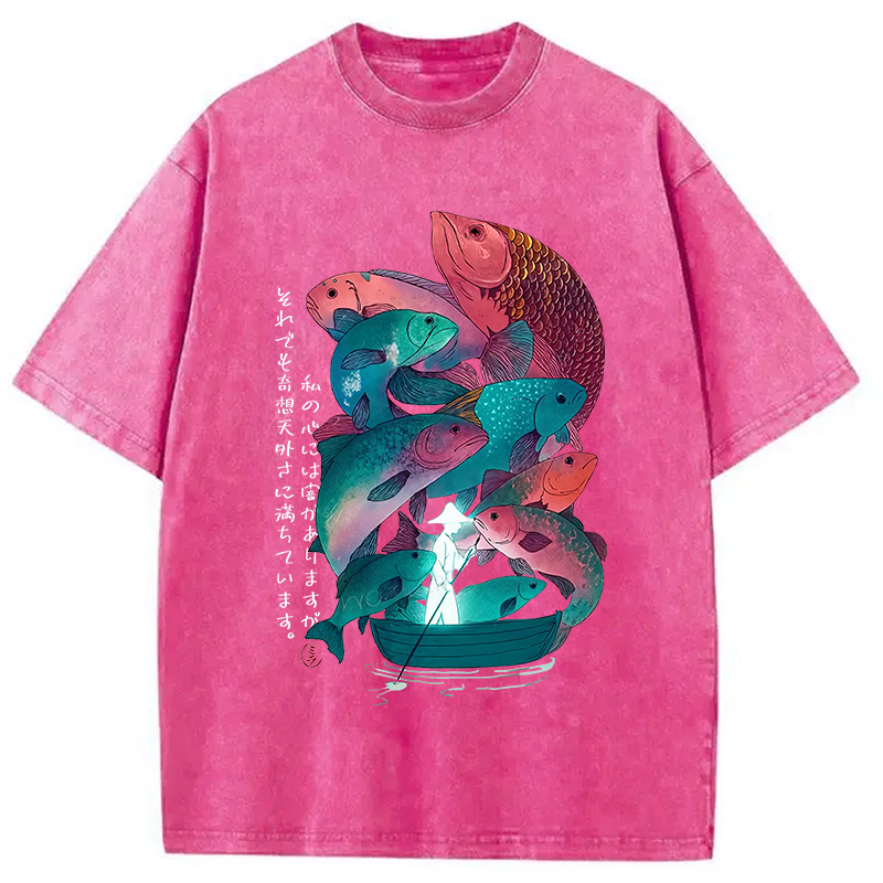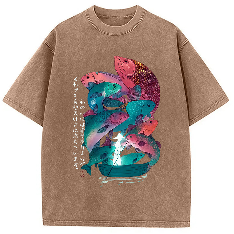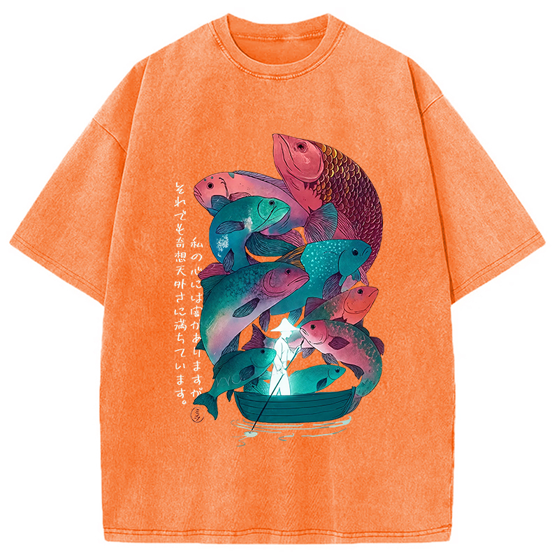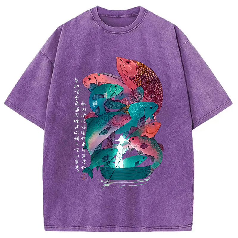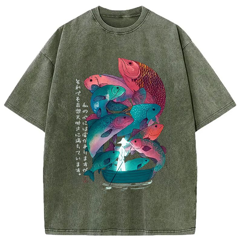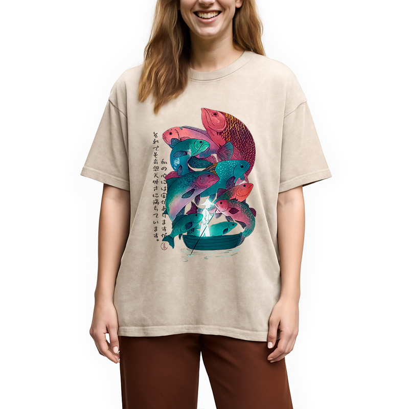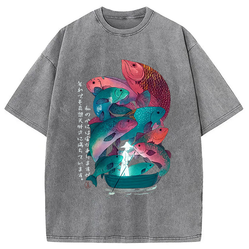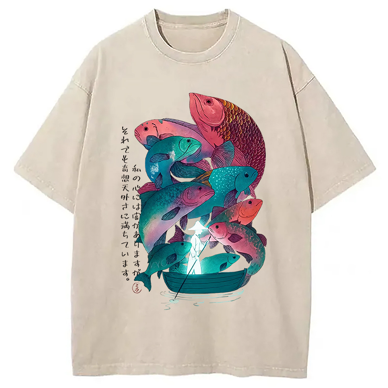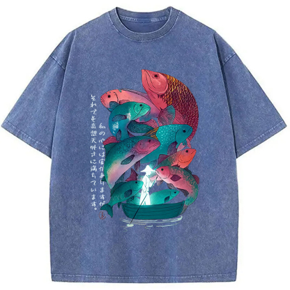 Japanese Ukiyoe Fish Vintage Poster Washed T-Shirt