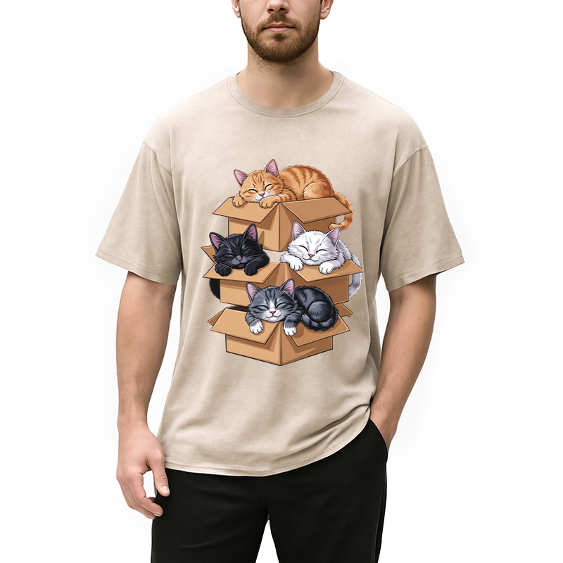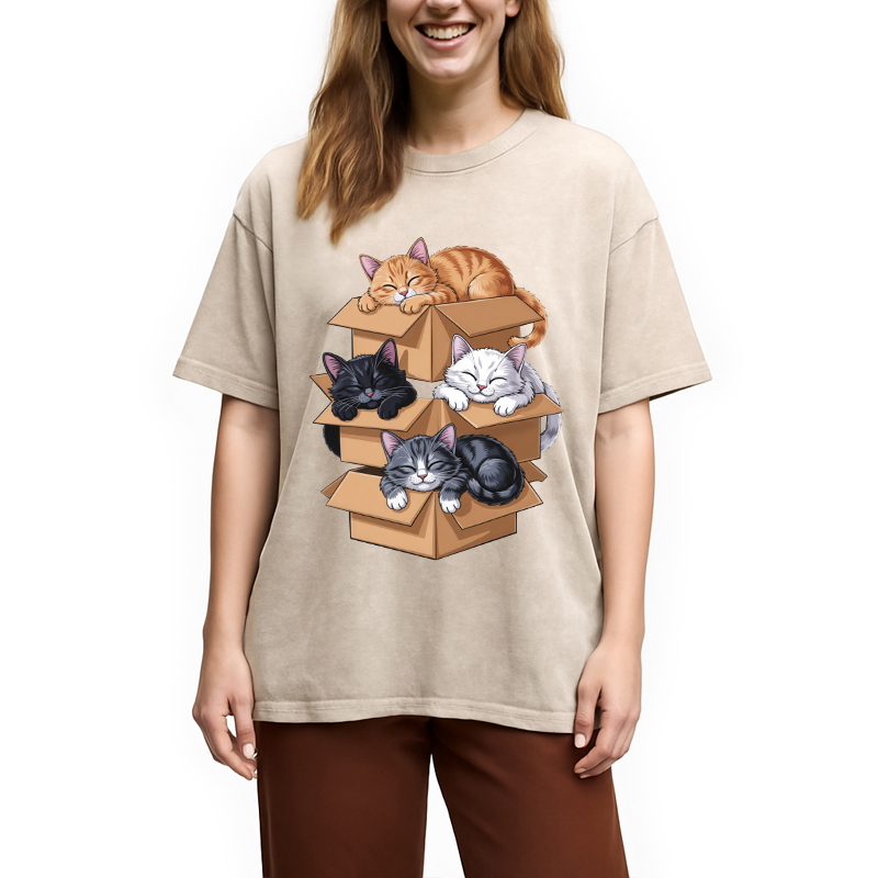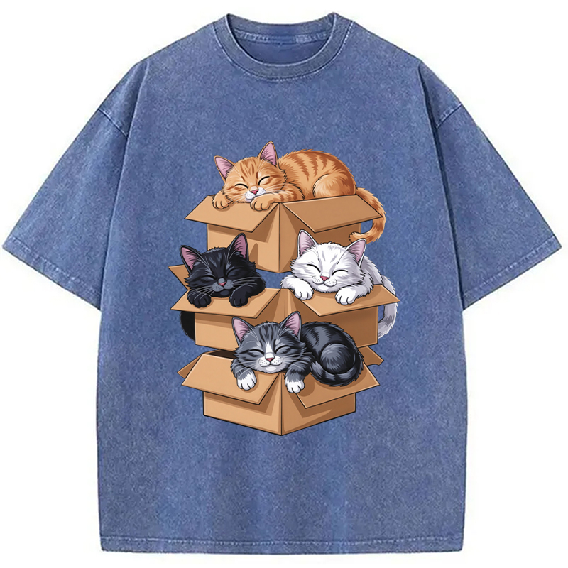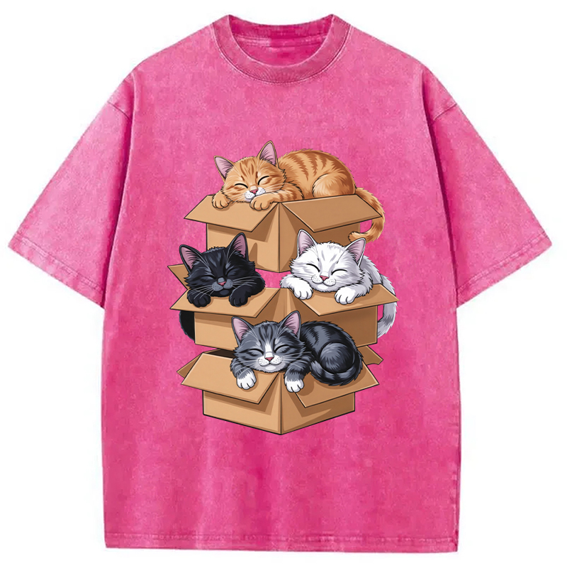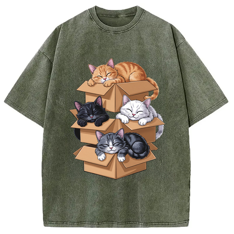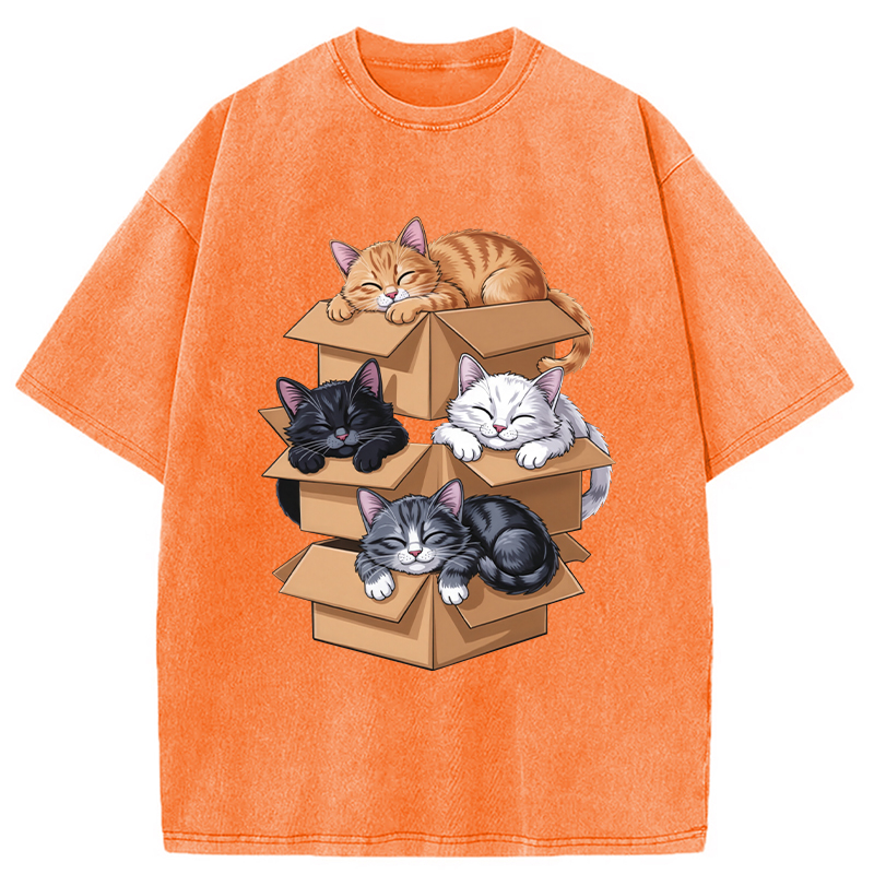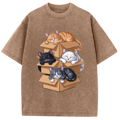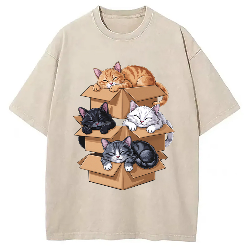Kawaii Cardboard Cat Washed T-Shirt