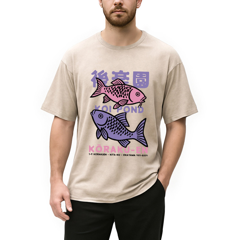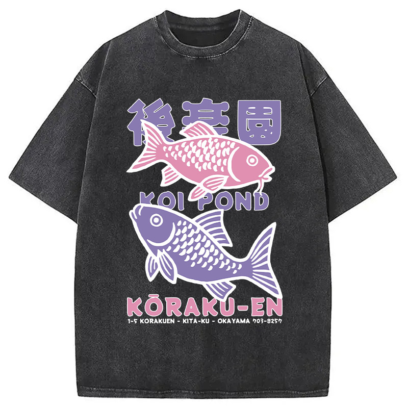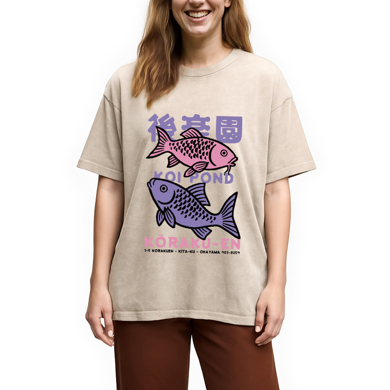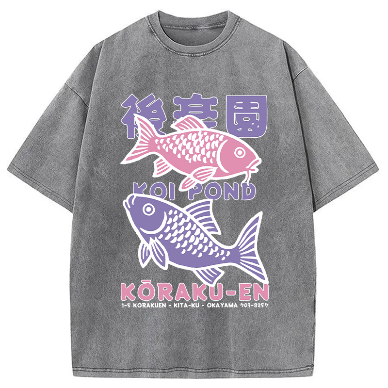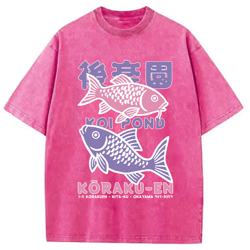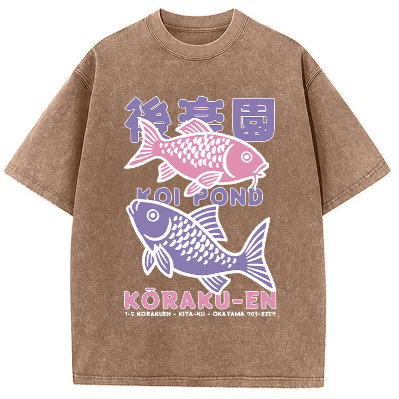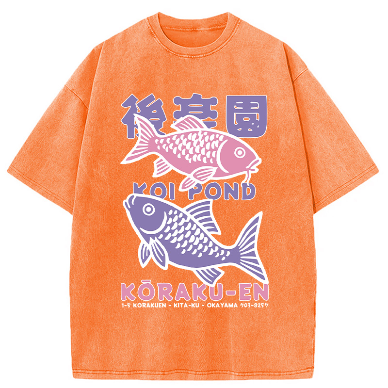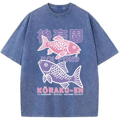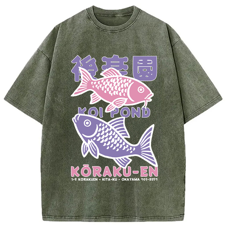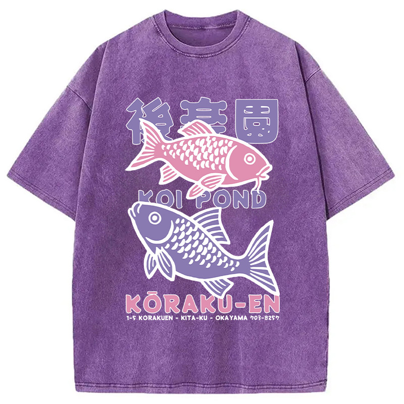 Koi Fish Pond Japanese Washed T-Shirt