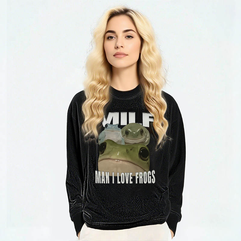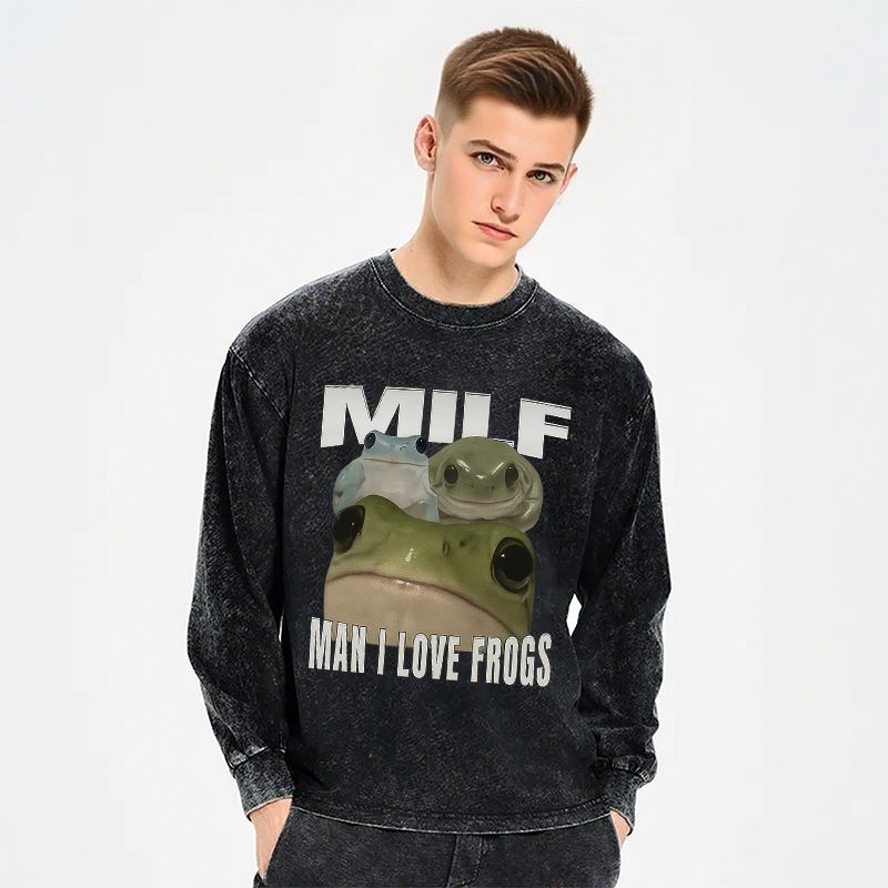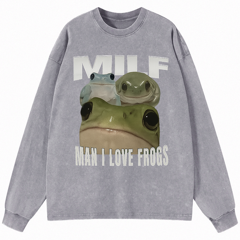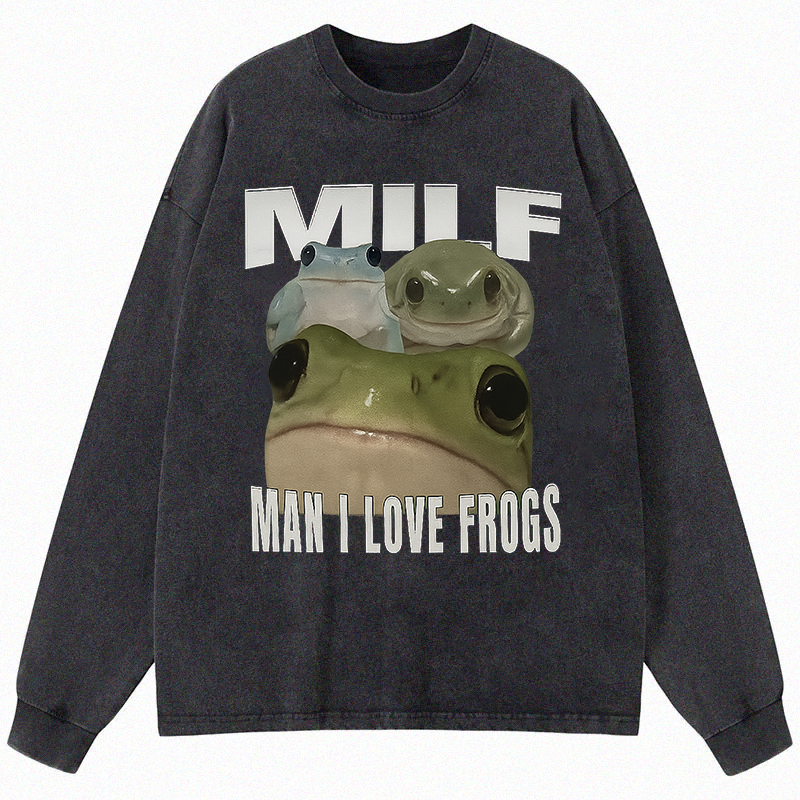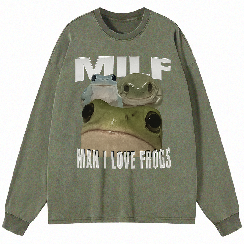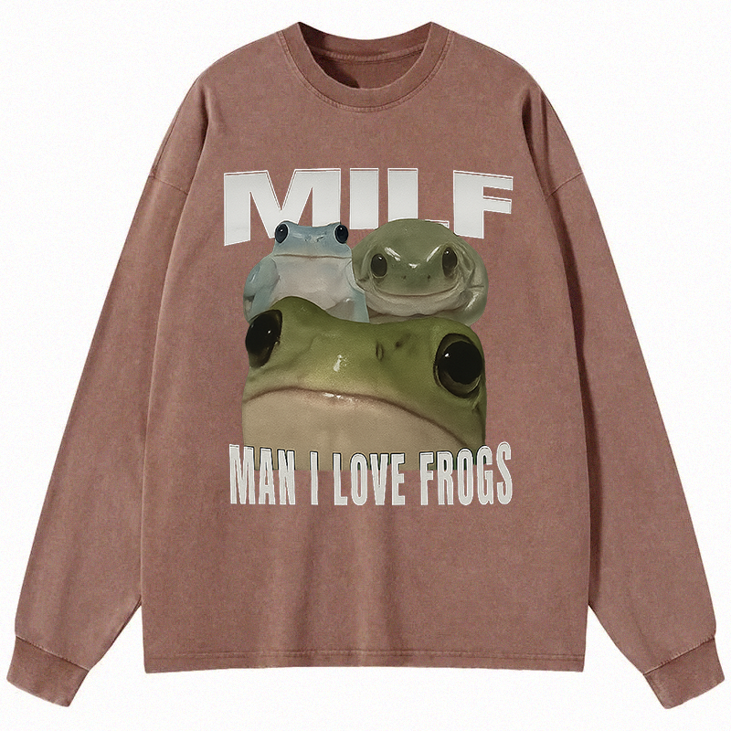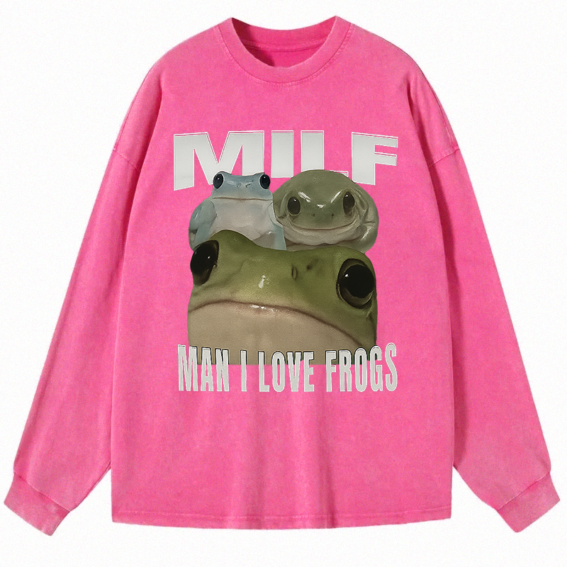 Man I Love Frogs Long Sleeve Washed T-Shirt