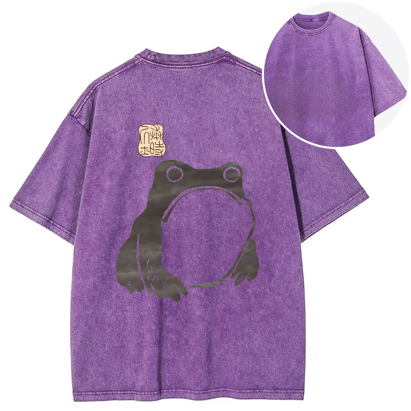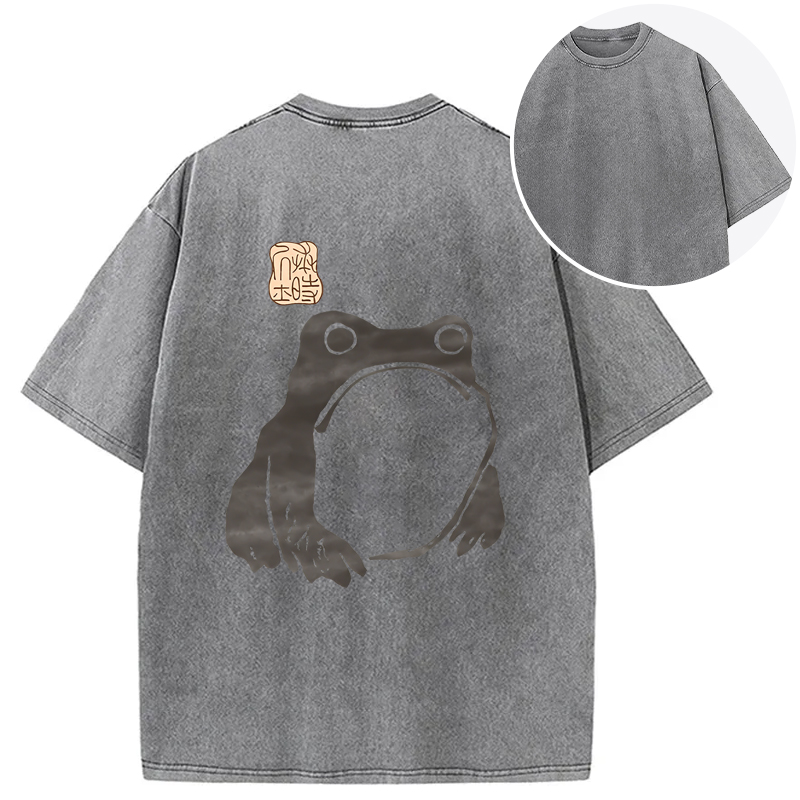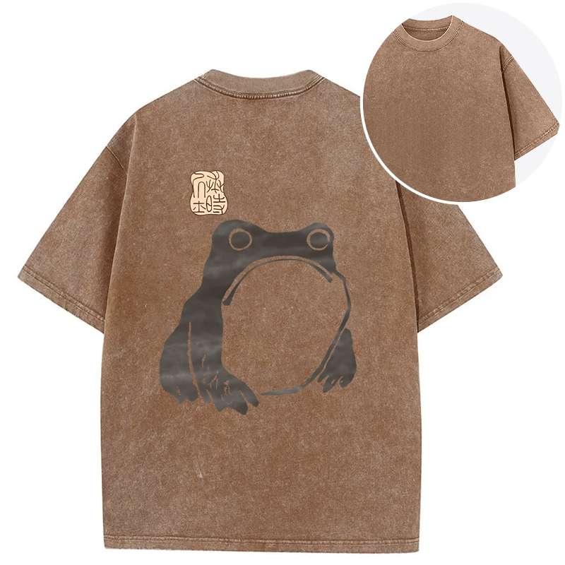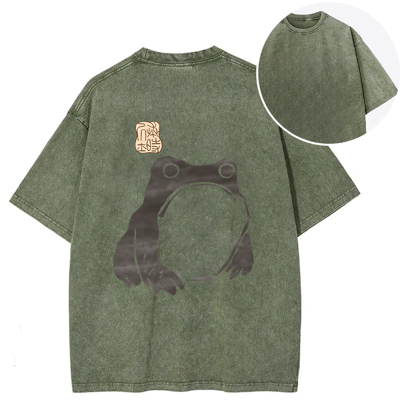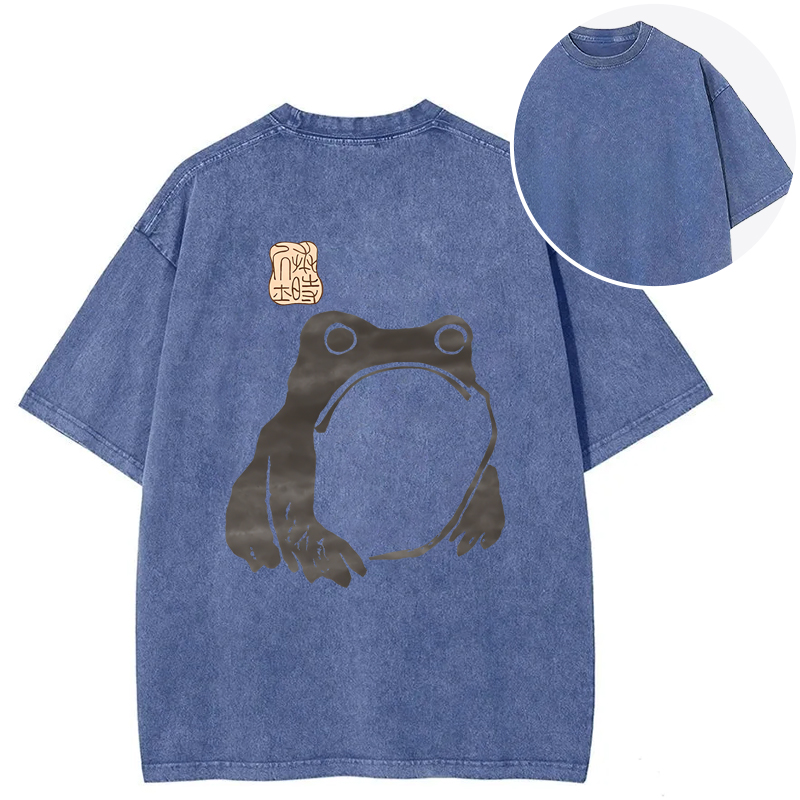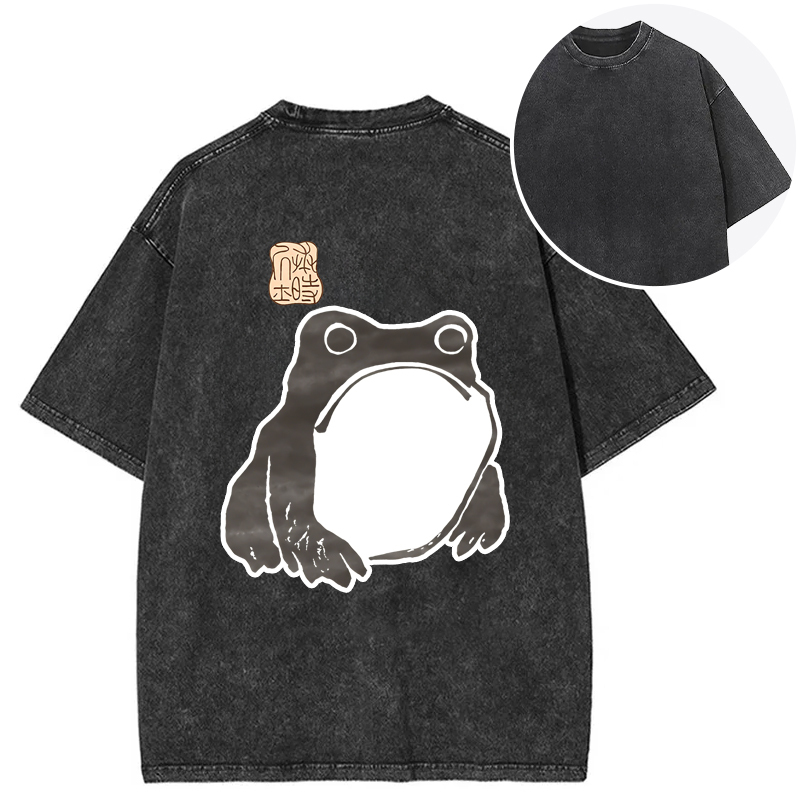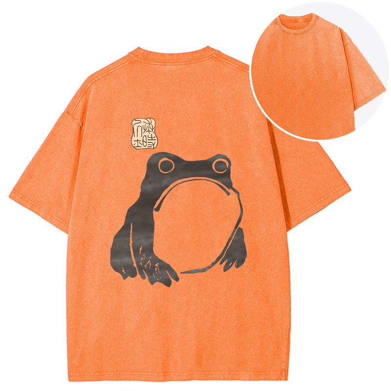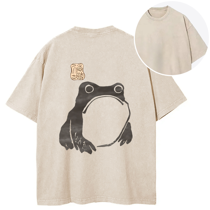 Matsumoto Hoji Woodblock Print Frog Back Washed T-Shirt
