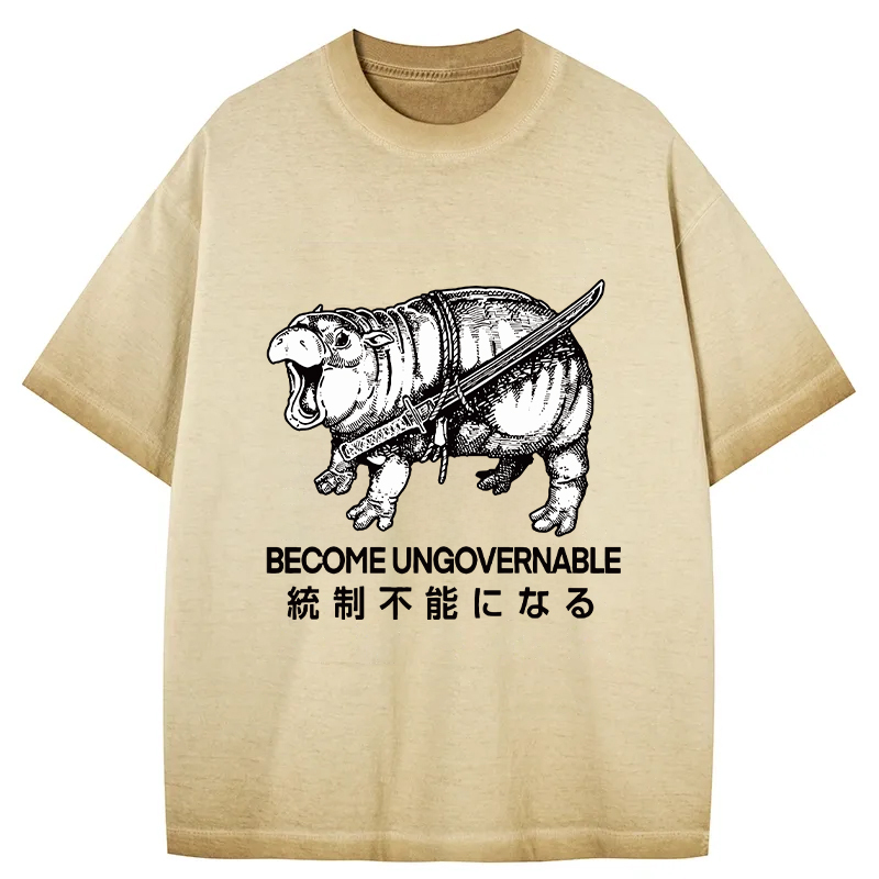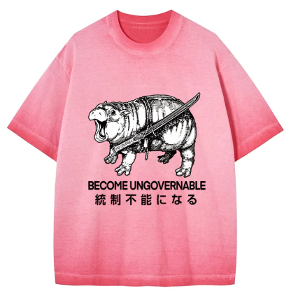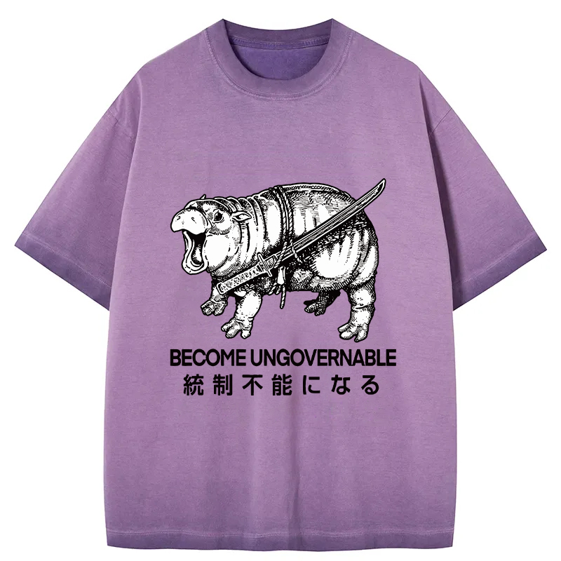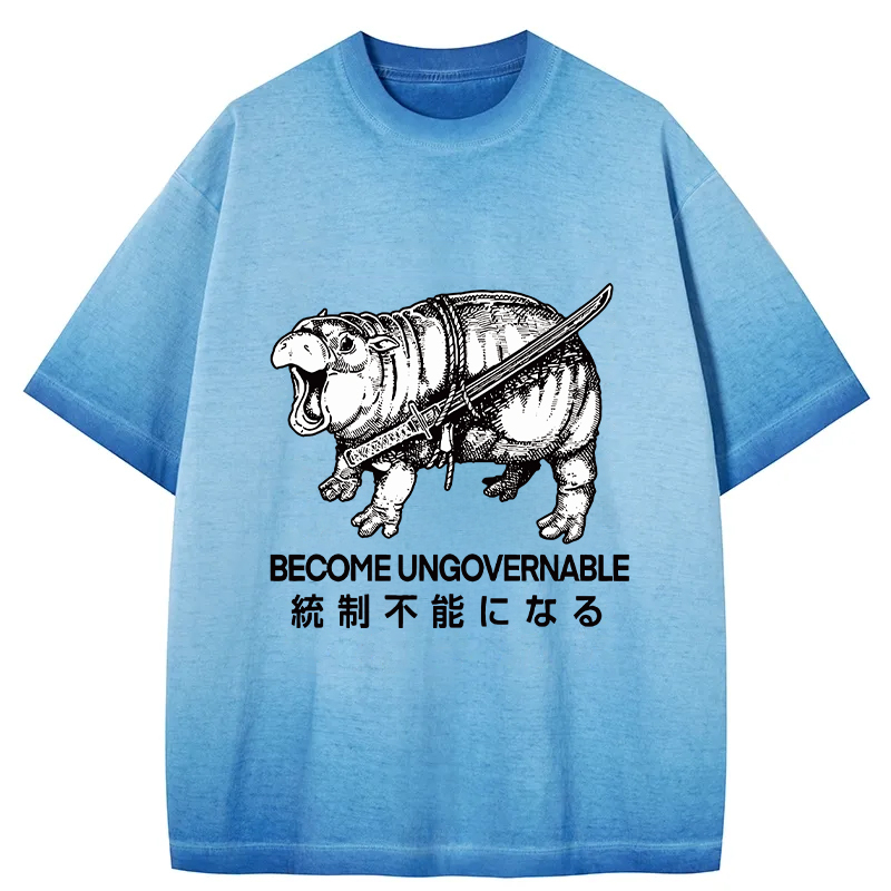 Moo Deng Carrying A Samurai Sword Gradient Washed T-Shirt