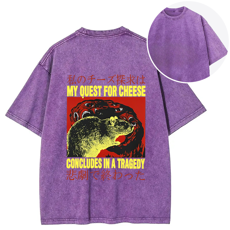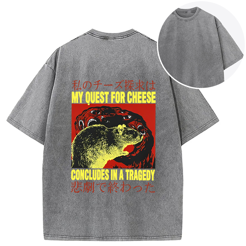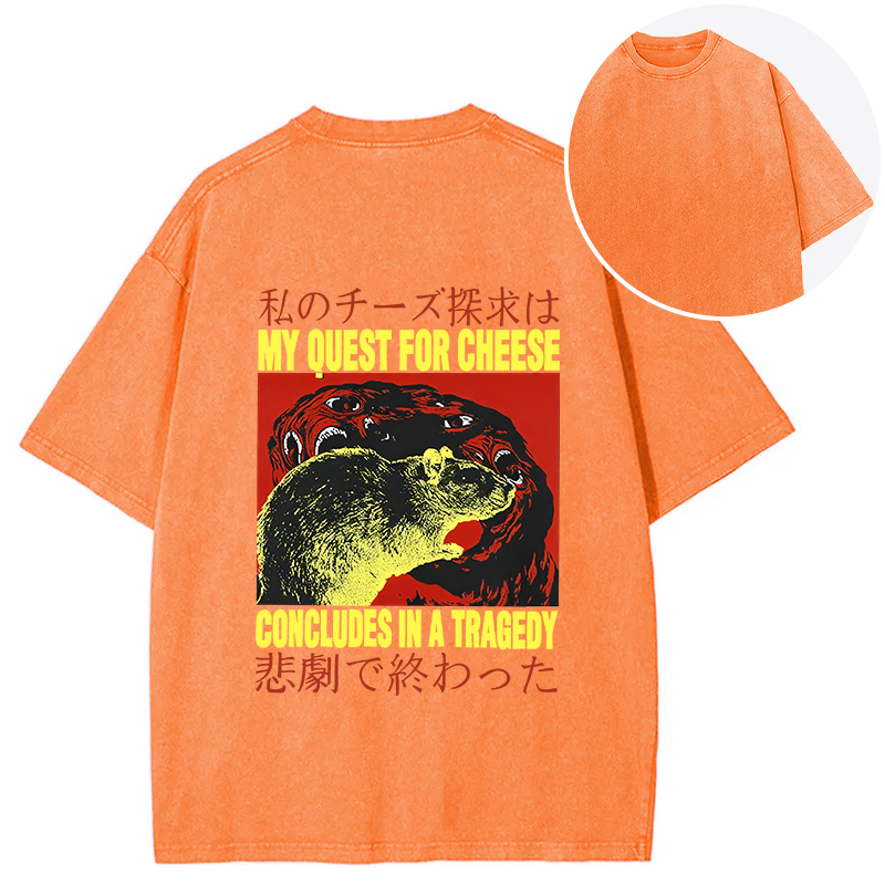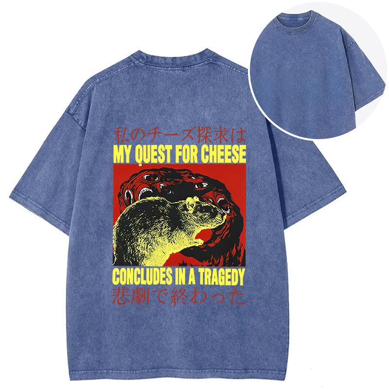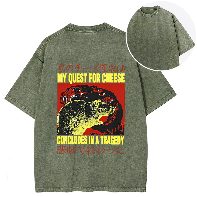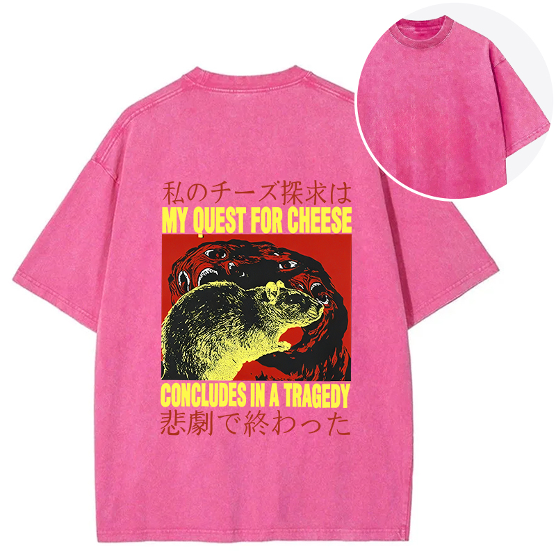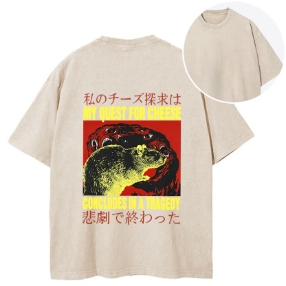 My Quest For Cheese Rat Japanese Back Washed T-Shirt