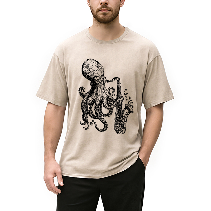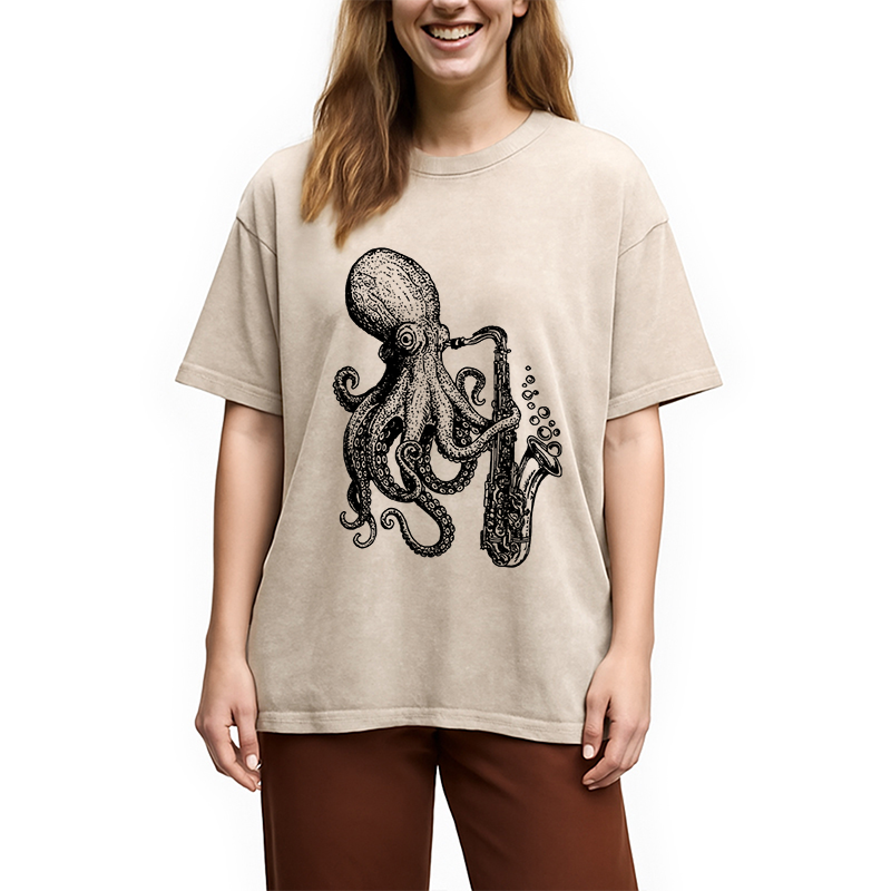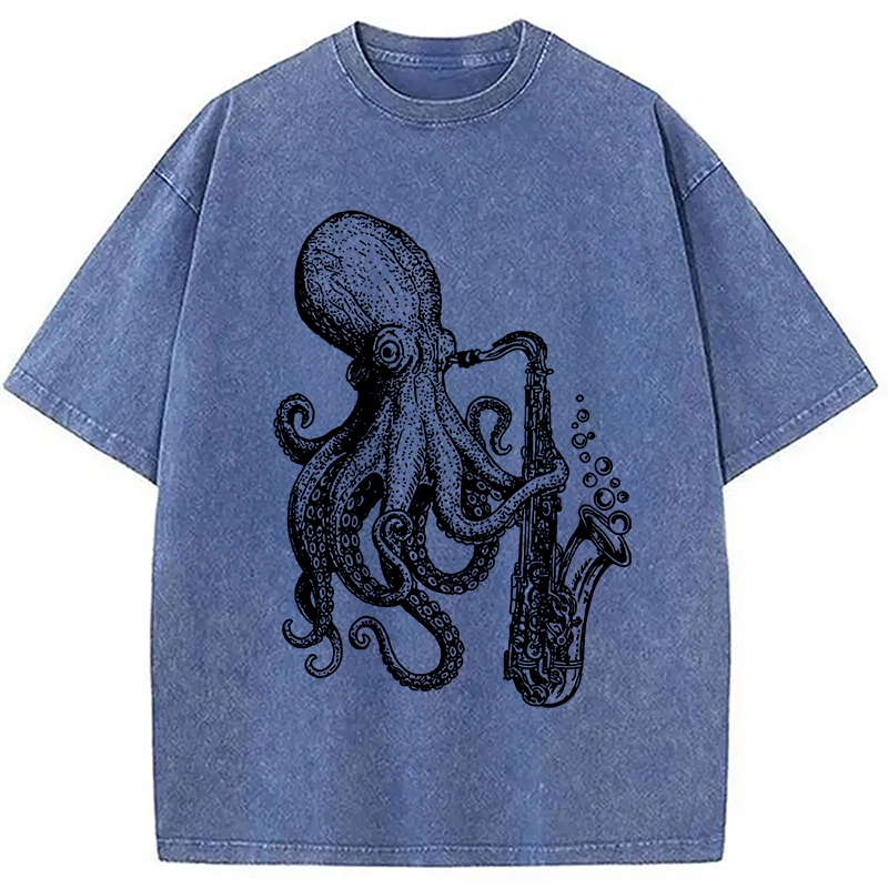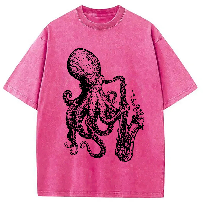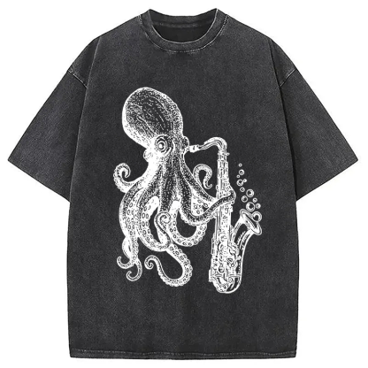 Octopus Playing Saxophone Washed T-Shirt