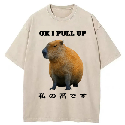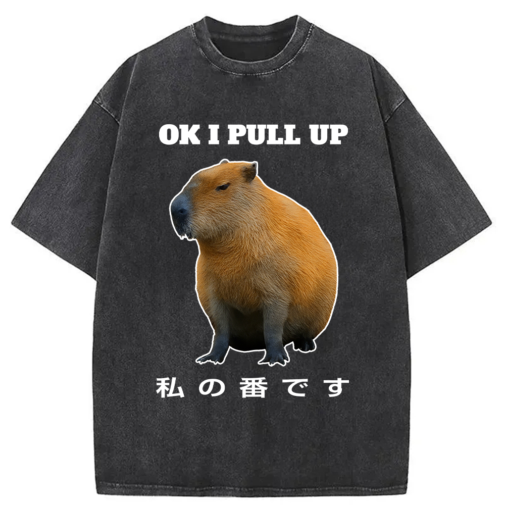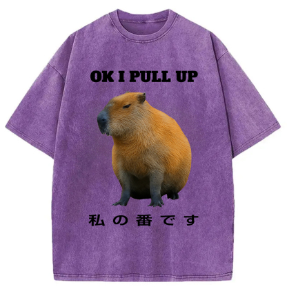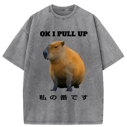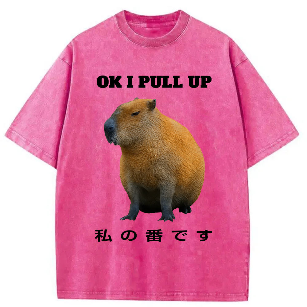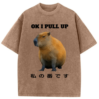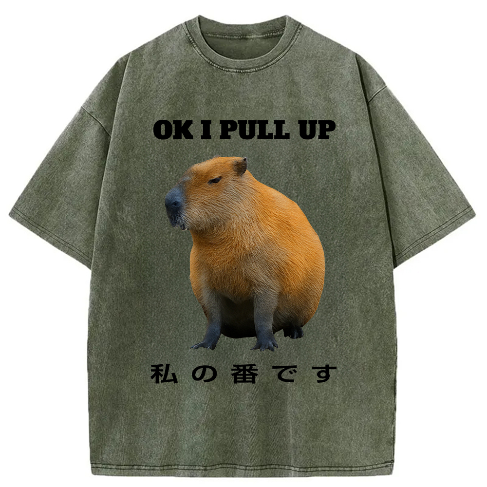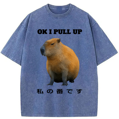 Ok I Pull Up Funny Capybara Washed T-Shirt
