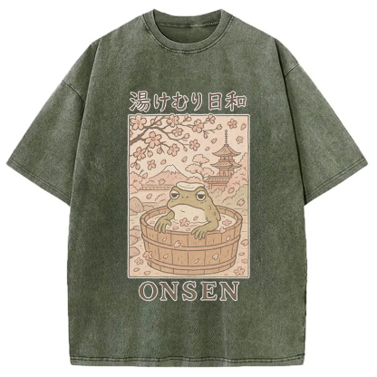 Onsen Frog Japanese Washed T-Shirt
