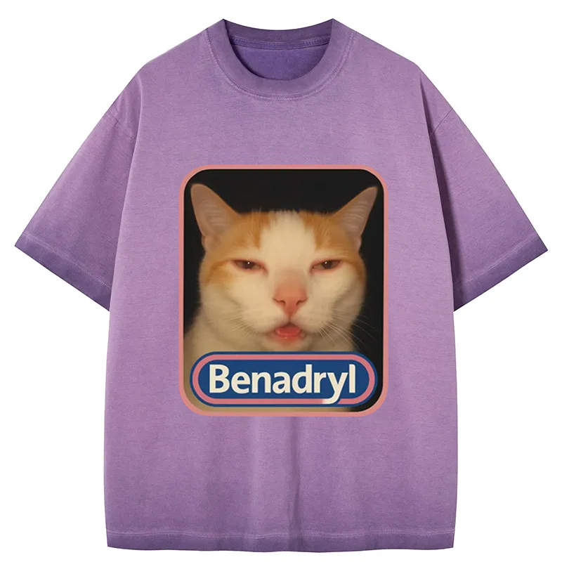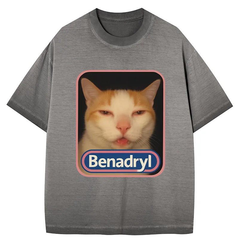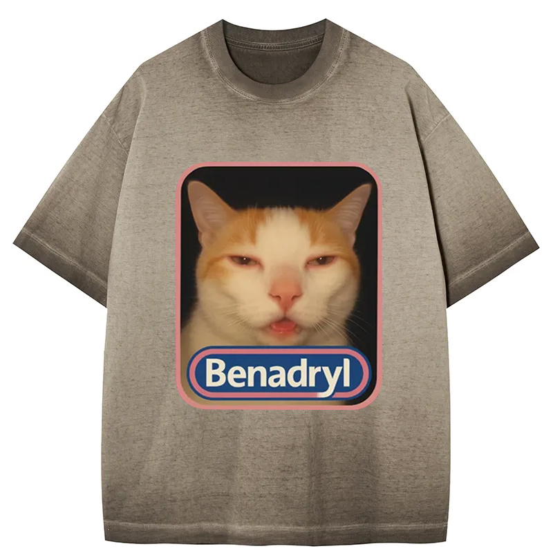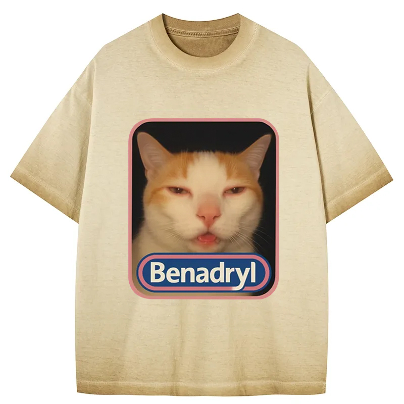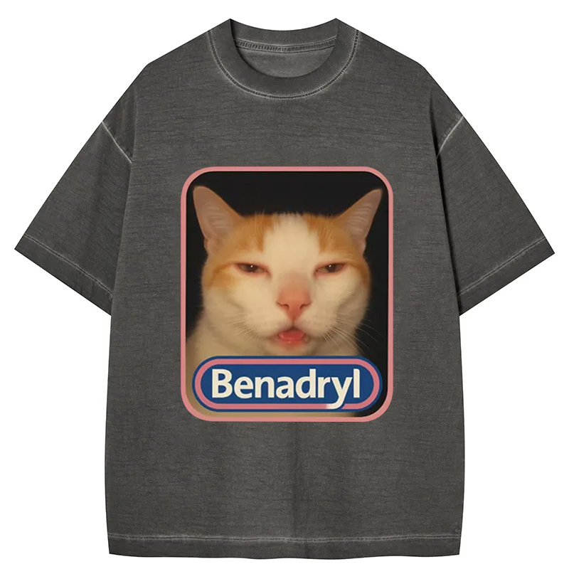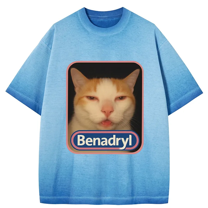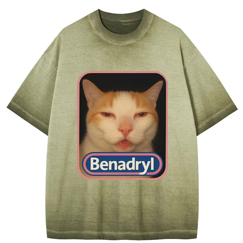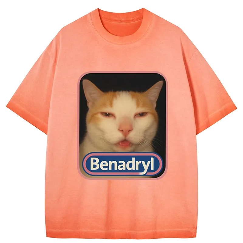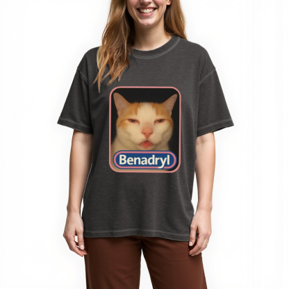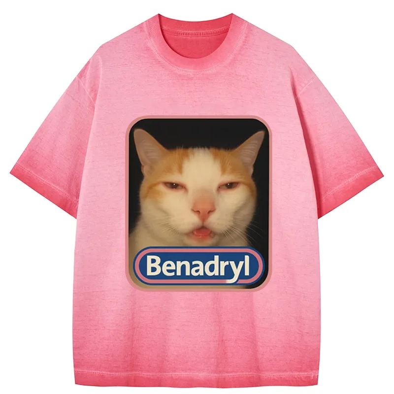 Pink Benadryl Meme Cat Gradient Washed T-Shirt