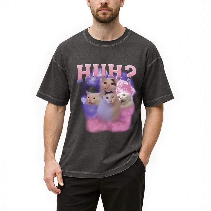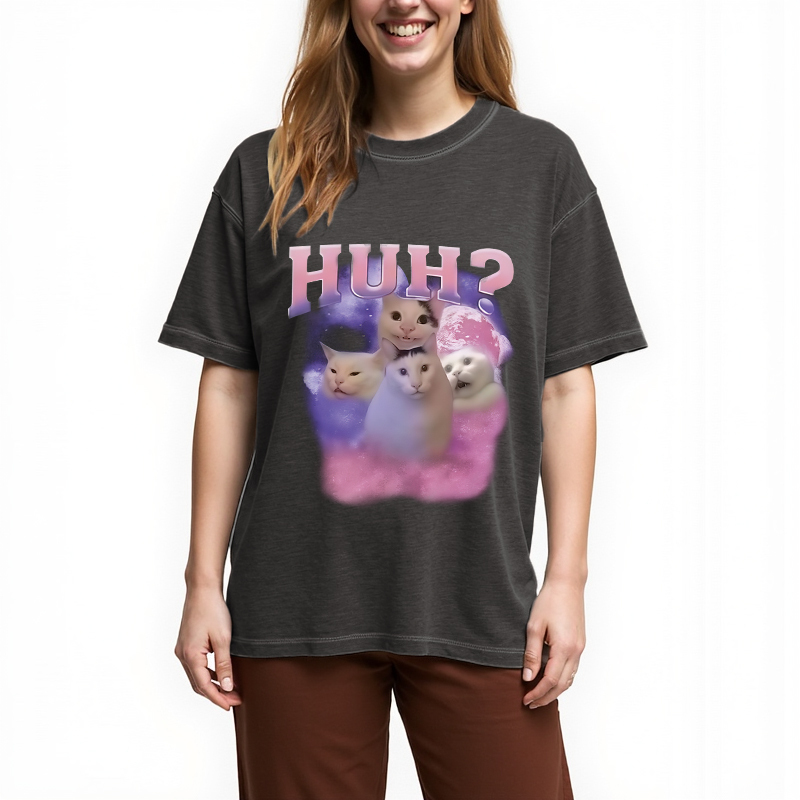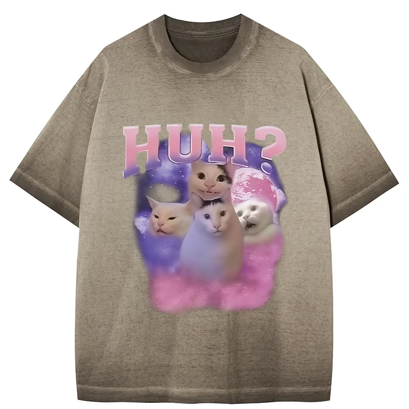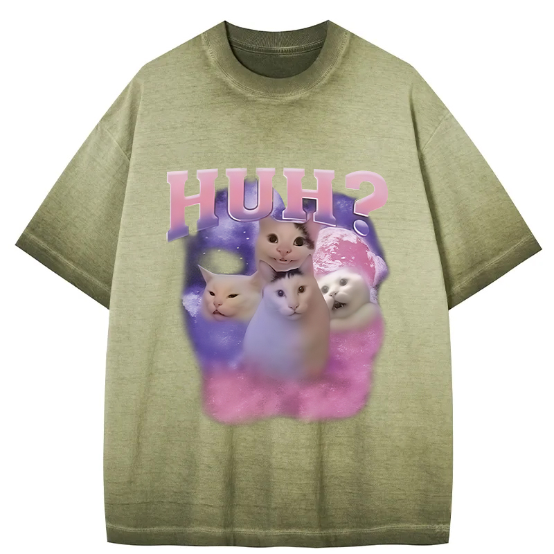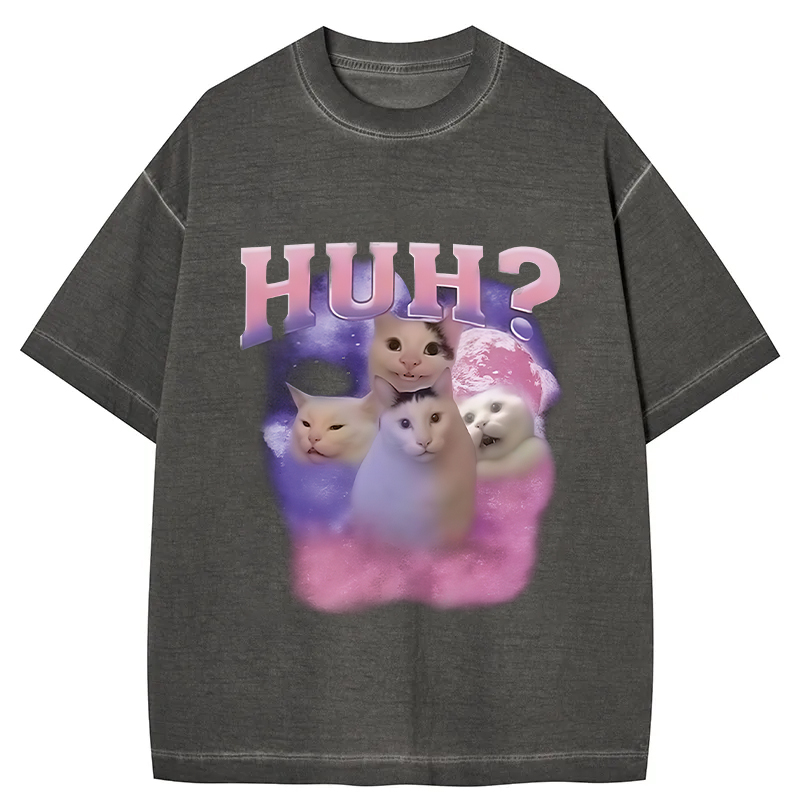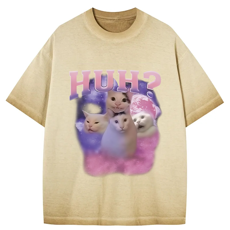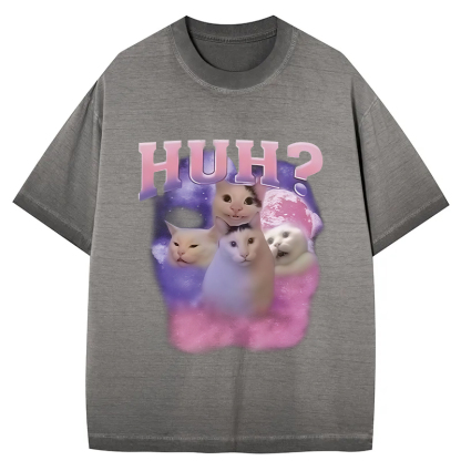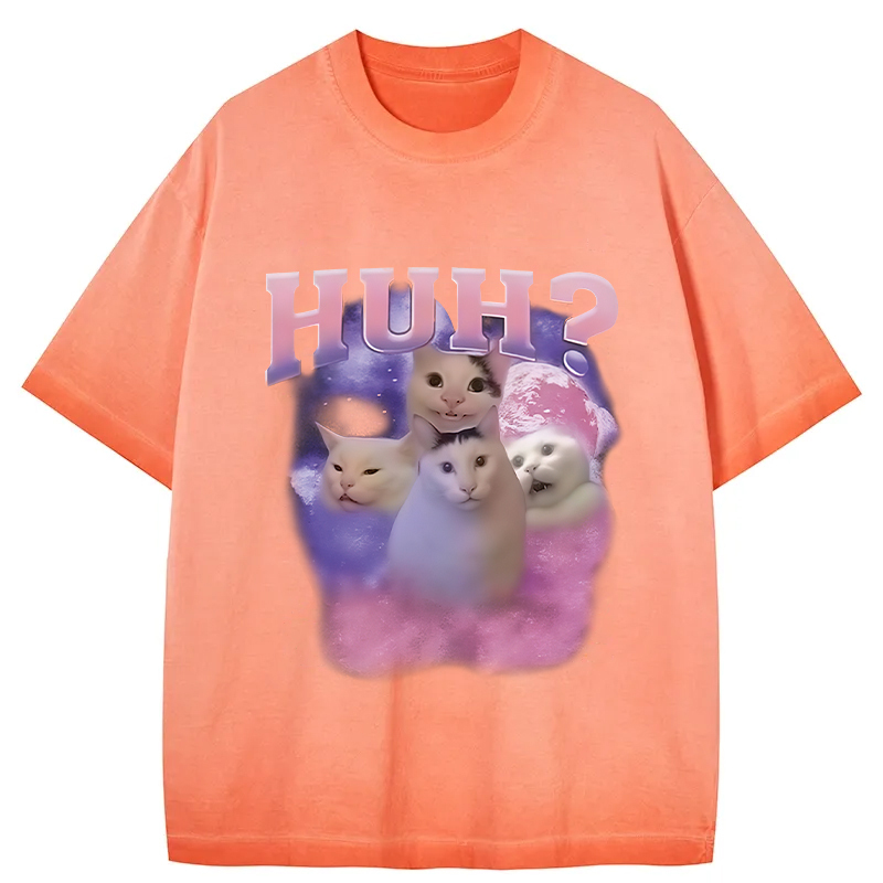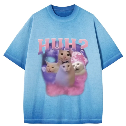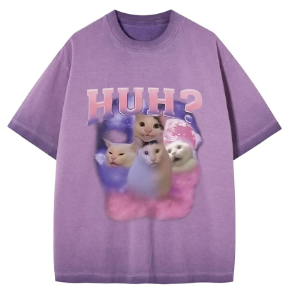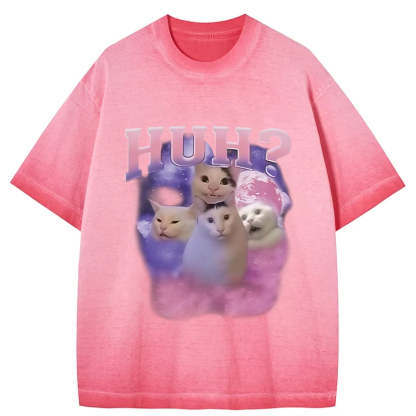 Pink Funny Meme Huh Cat Gradient Washed T-Shirt