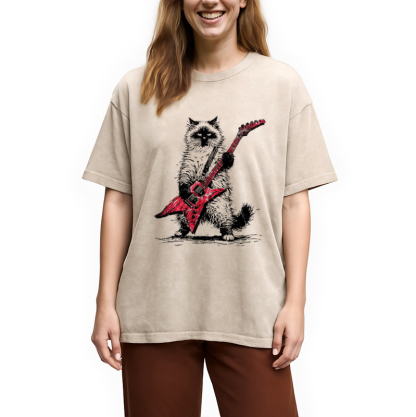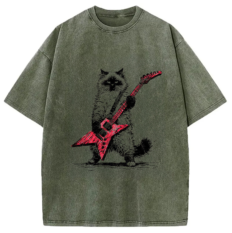 Raccoon Playing Guitar Washed T-Shirt