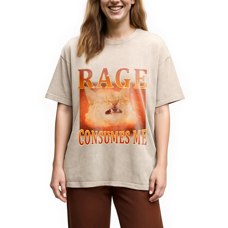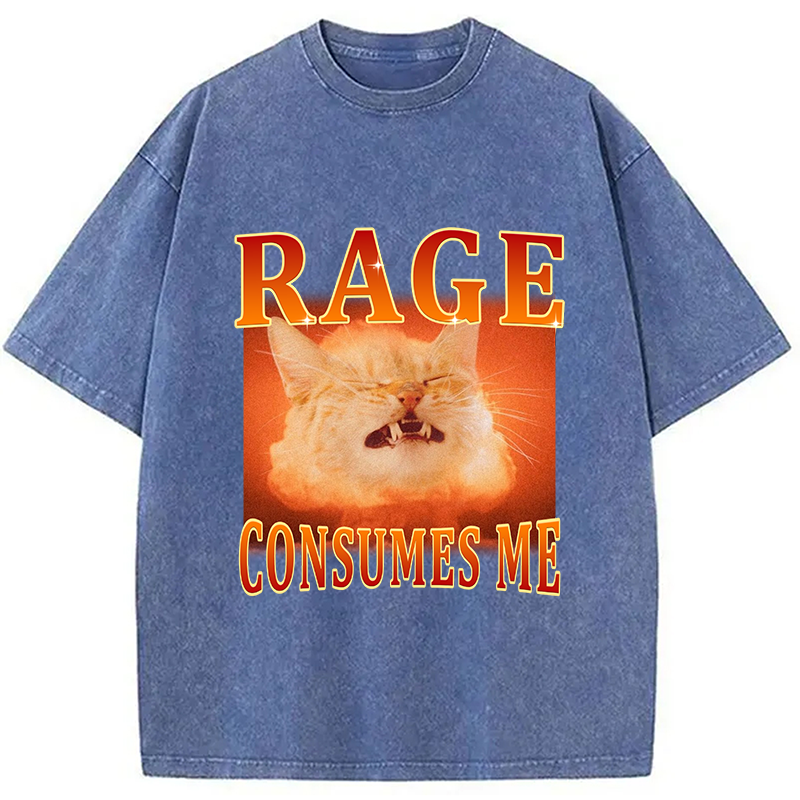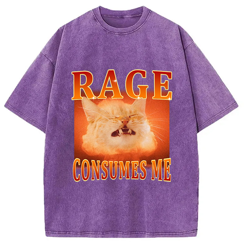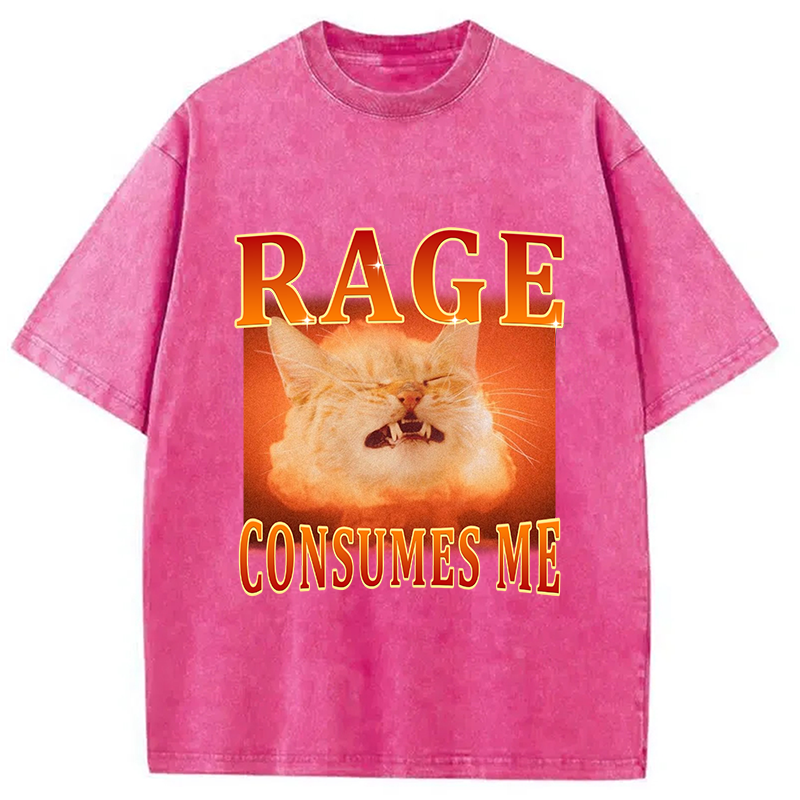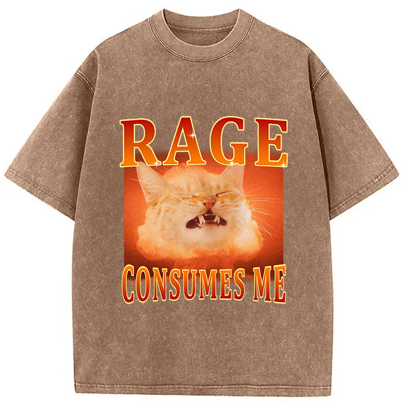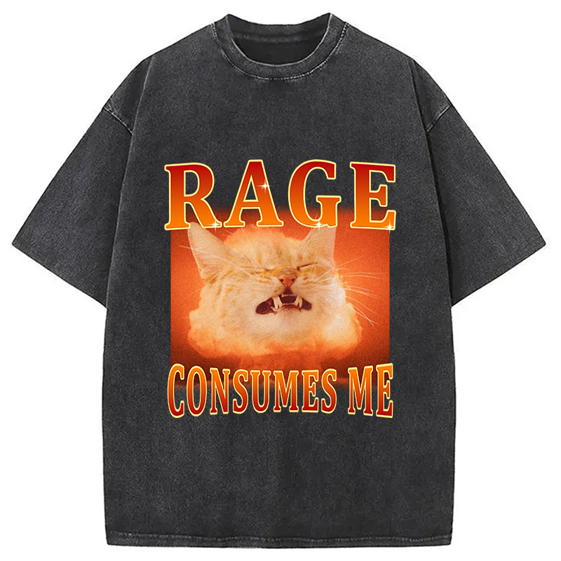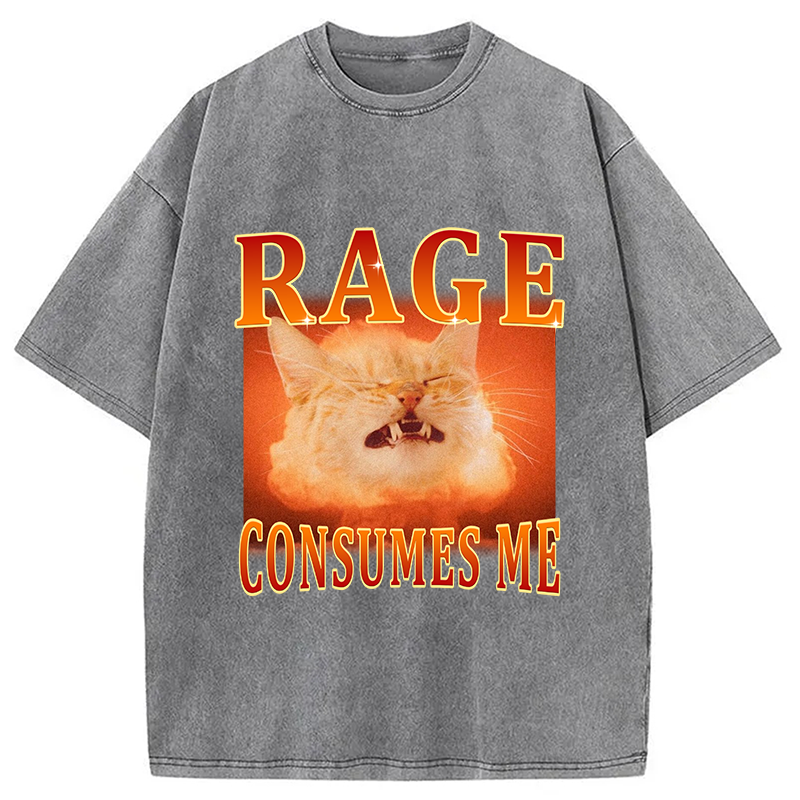 Rage Consumes Me Angry Cat Washed T-Shirt