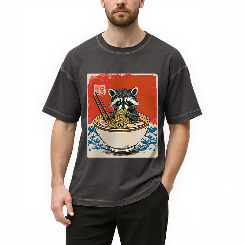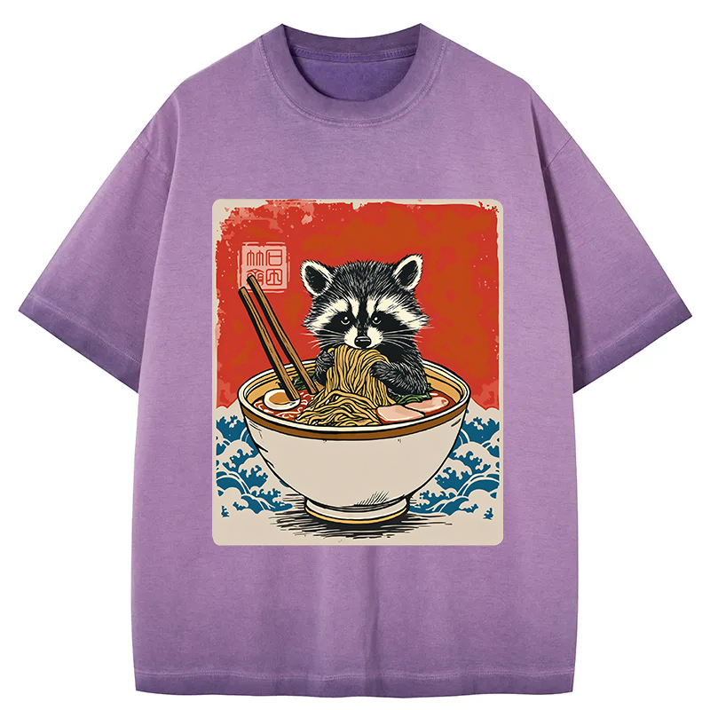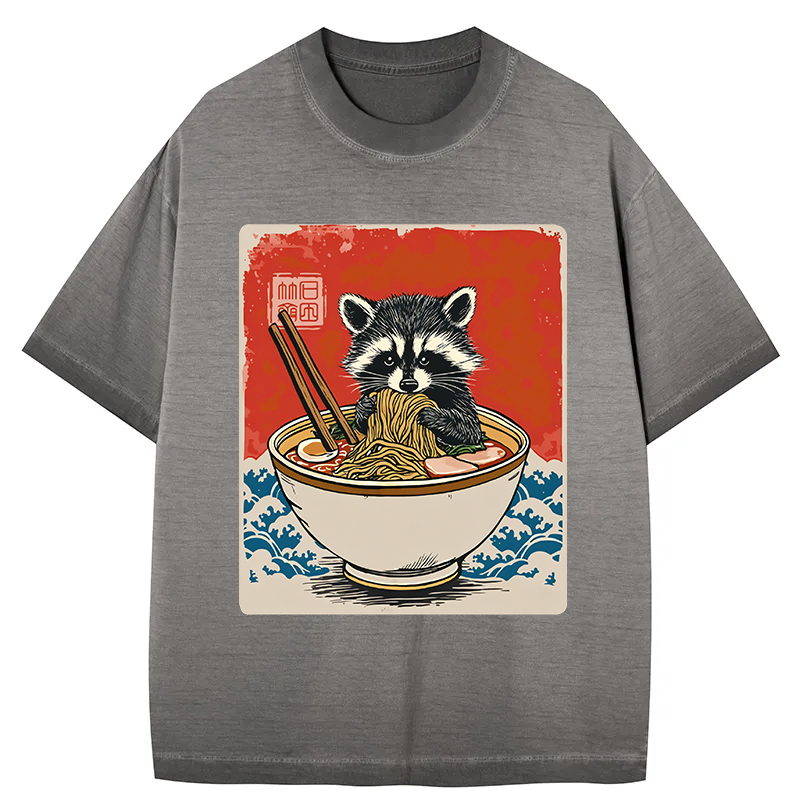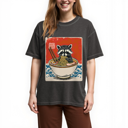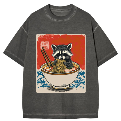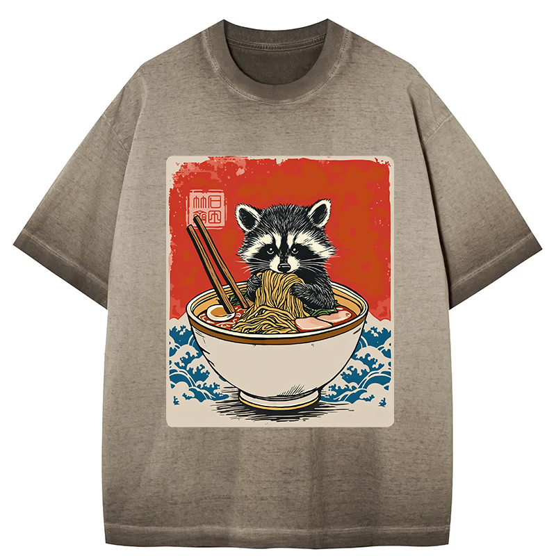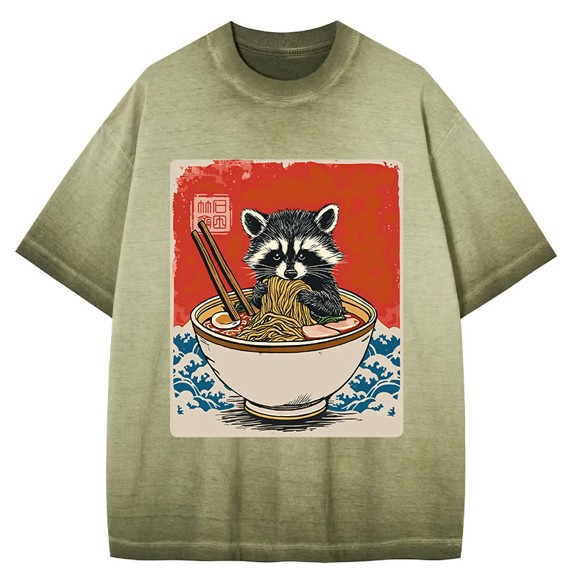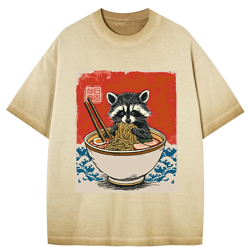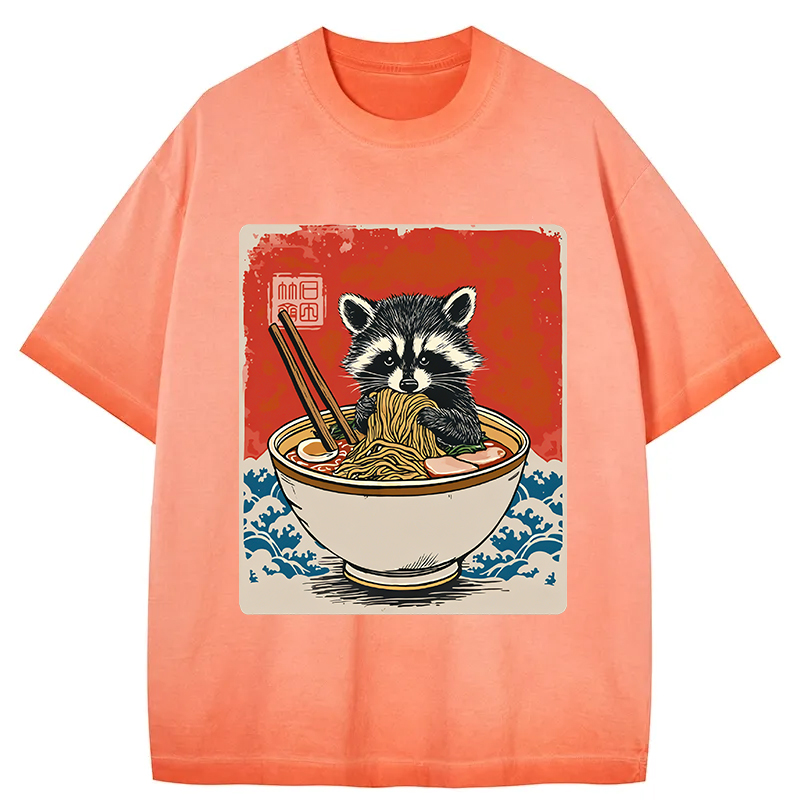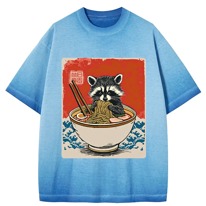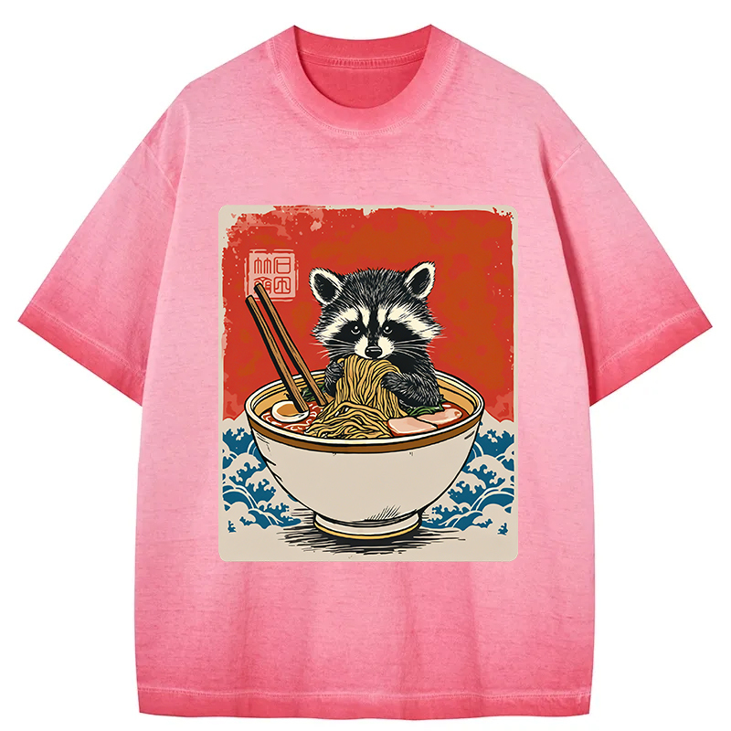 Ramen Lover Raccoon Gradient Washed T-Shirt