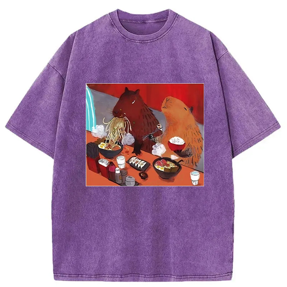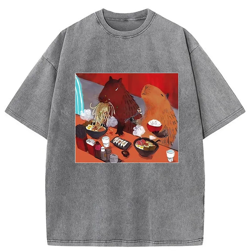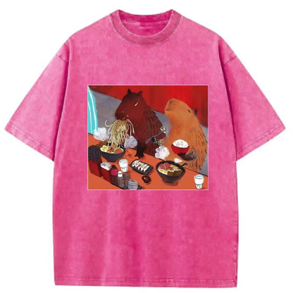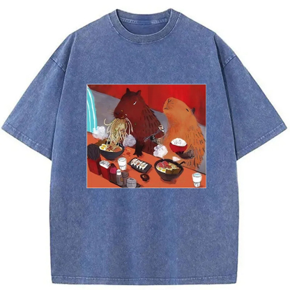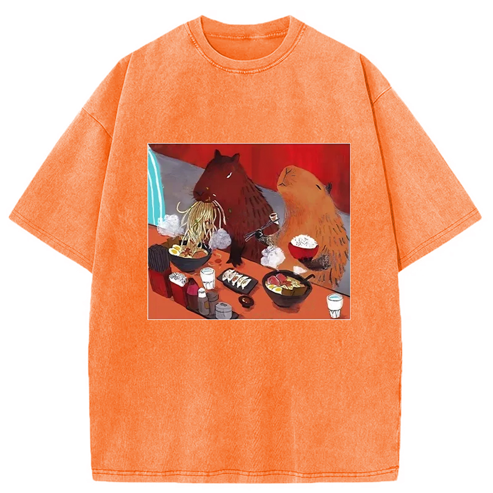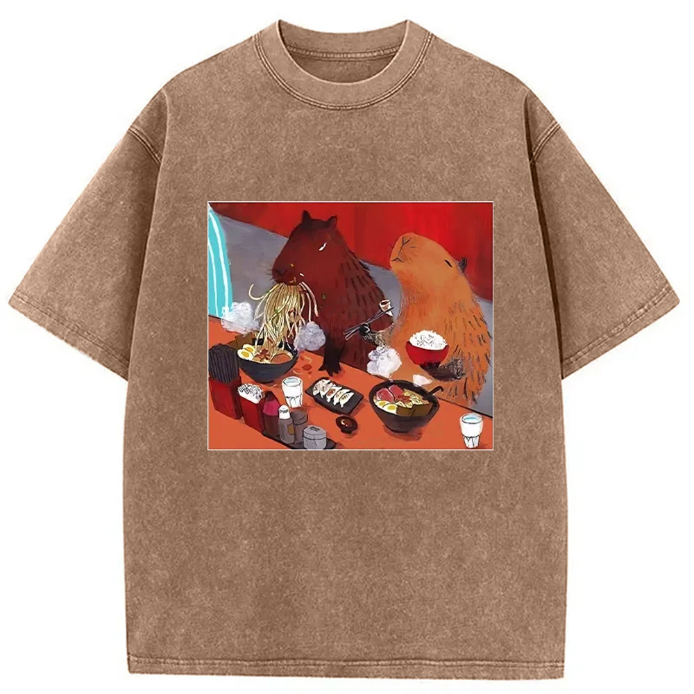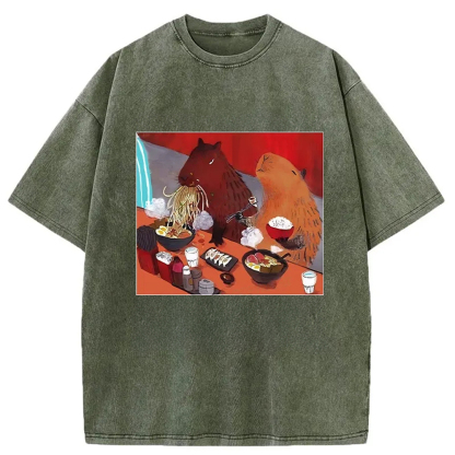 Ramen Lovers Capybara Funny Washed T-Shirt