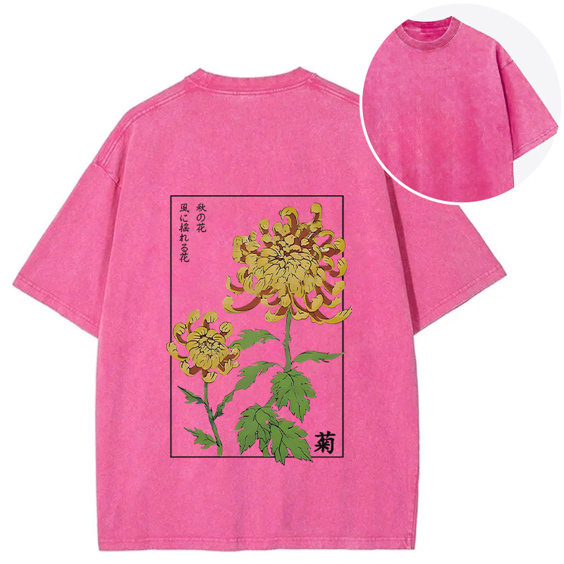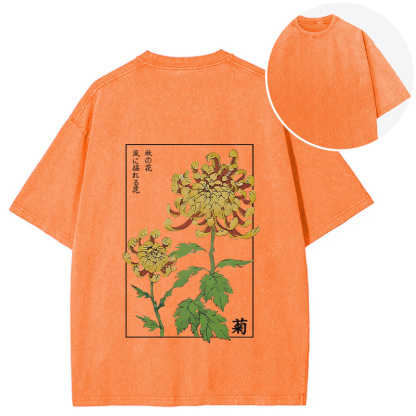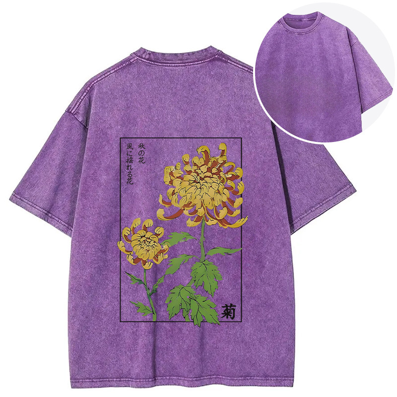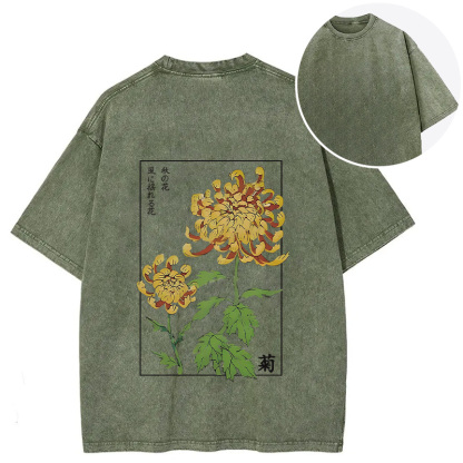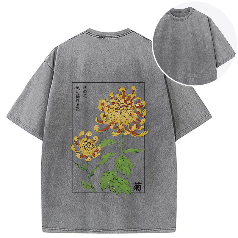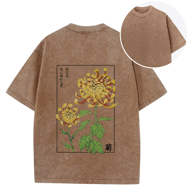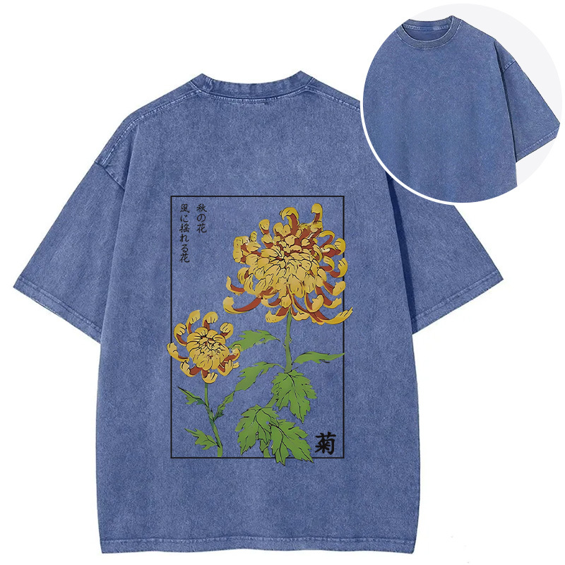 Retro Chrysanthemum Back Washed T-Shirt