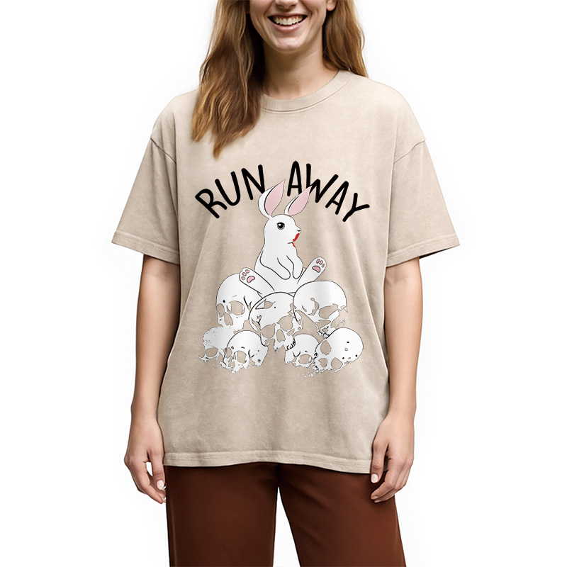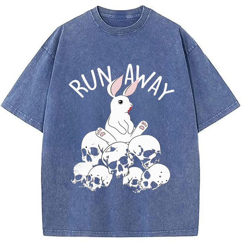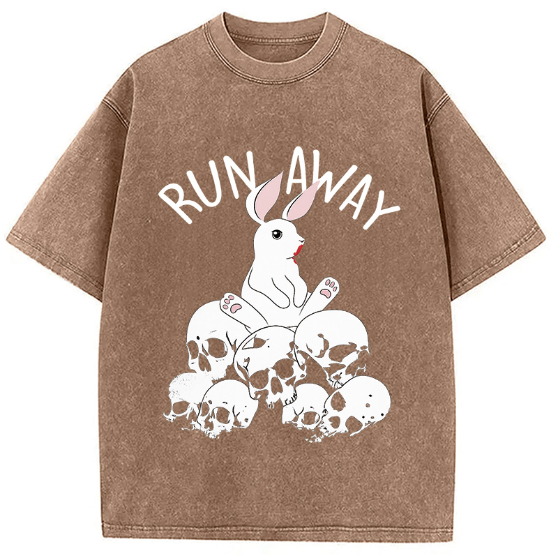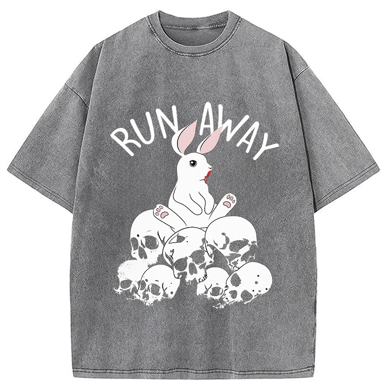 Run Away Bloody Bunny Skeleton Washed T-Shirt
