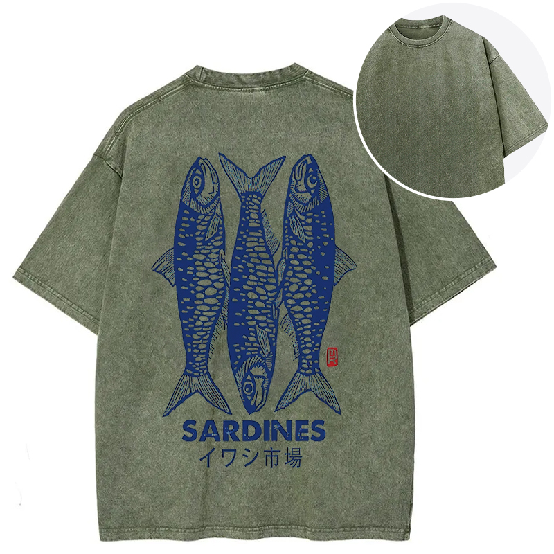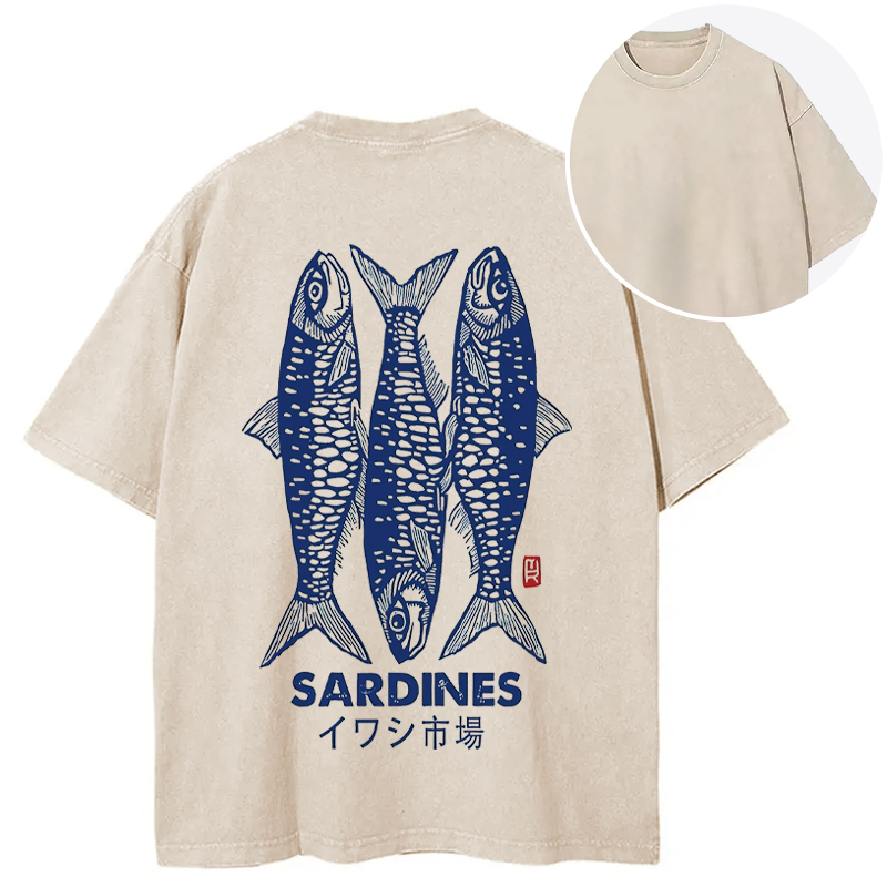 Sardines Market Back Washed T-Shirt