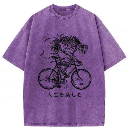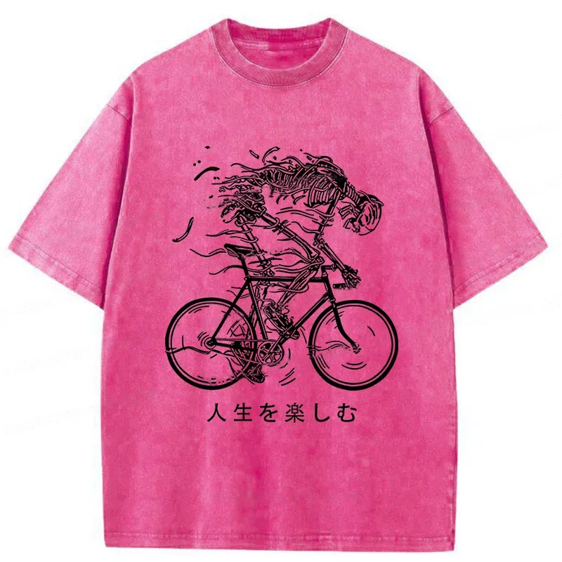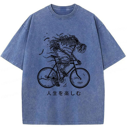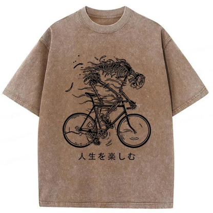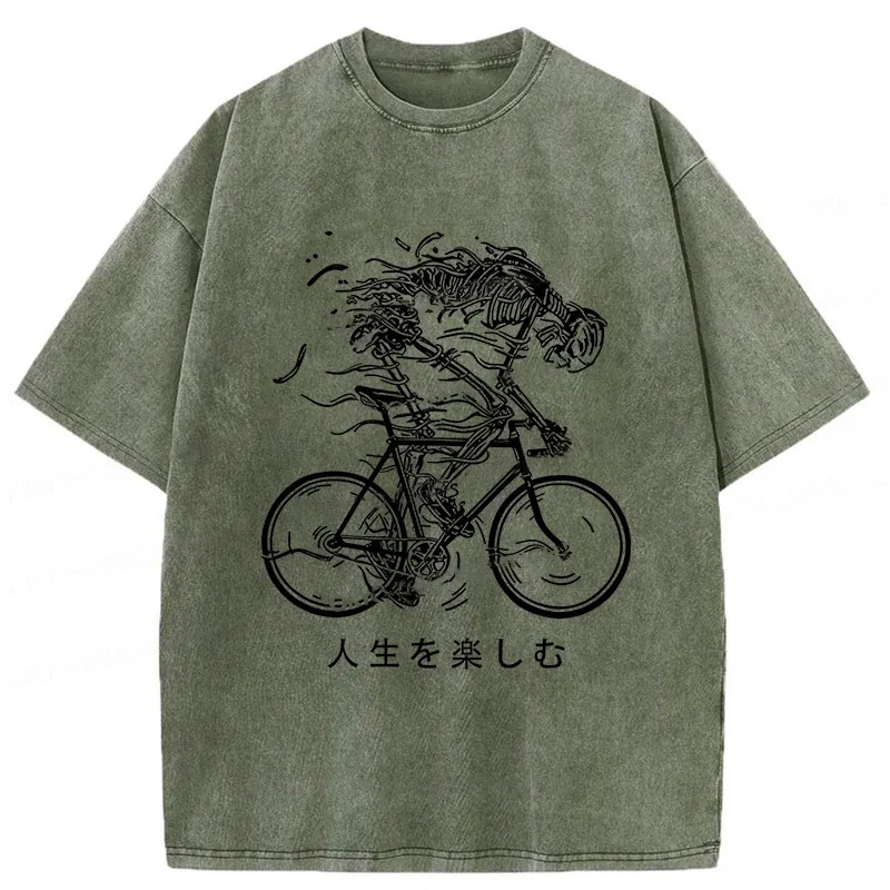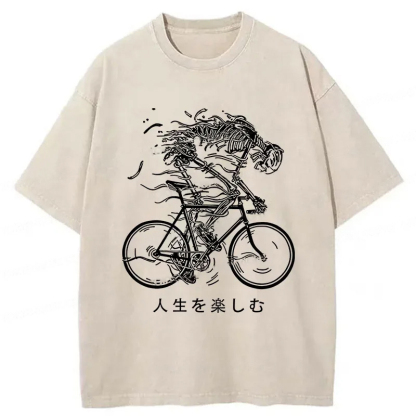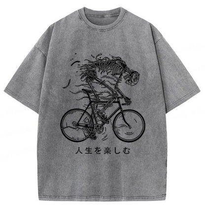 Skeleton Riding A Bicycle Washed T-Shirt