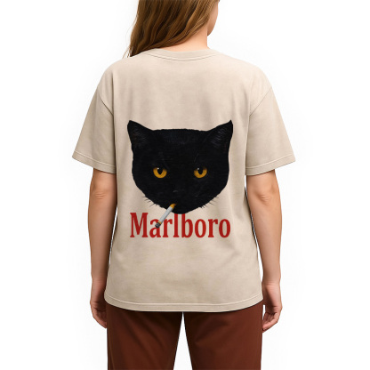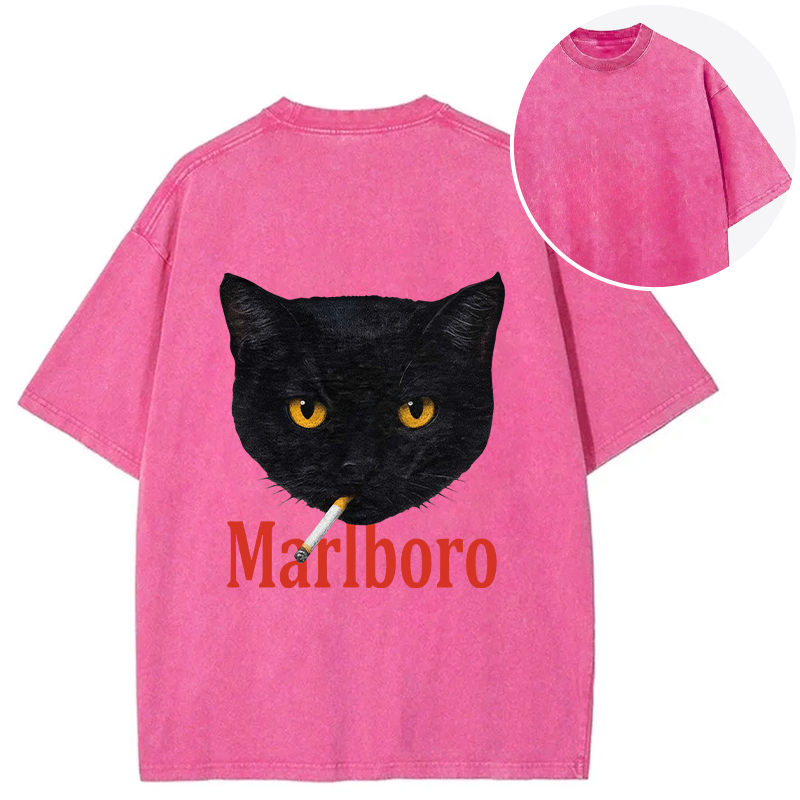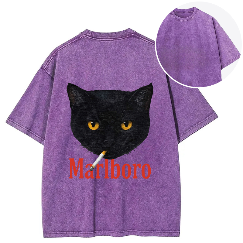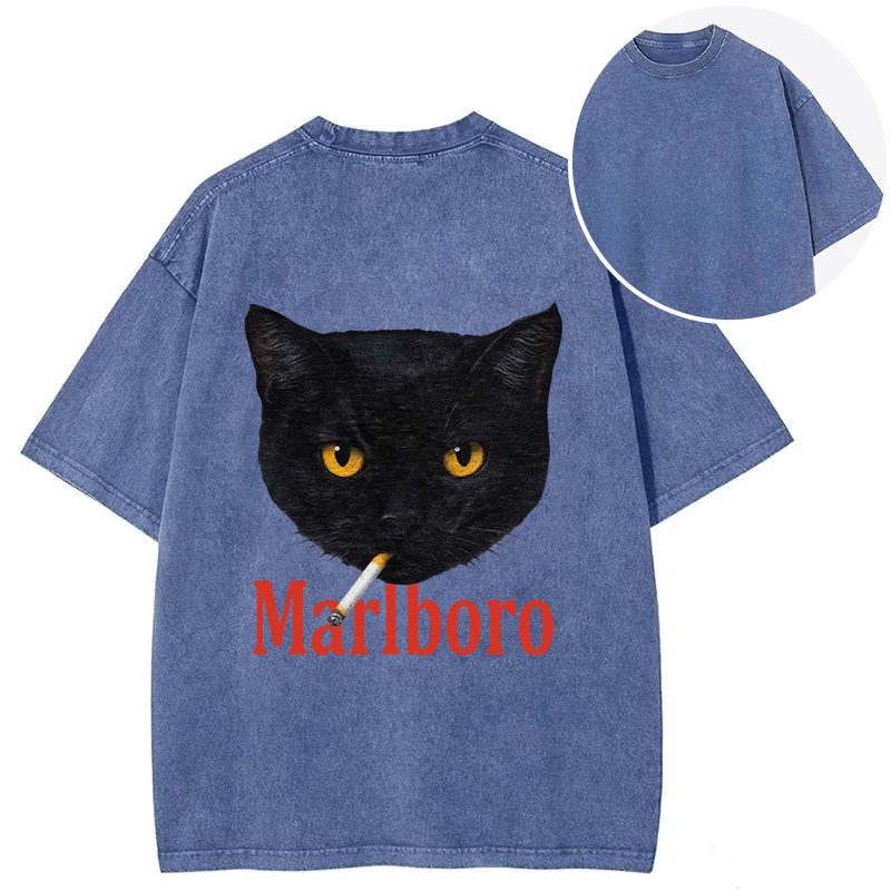Smoking Black Cat Vintage Back Washed T-Shirt