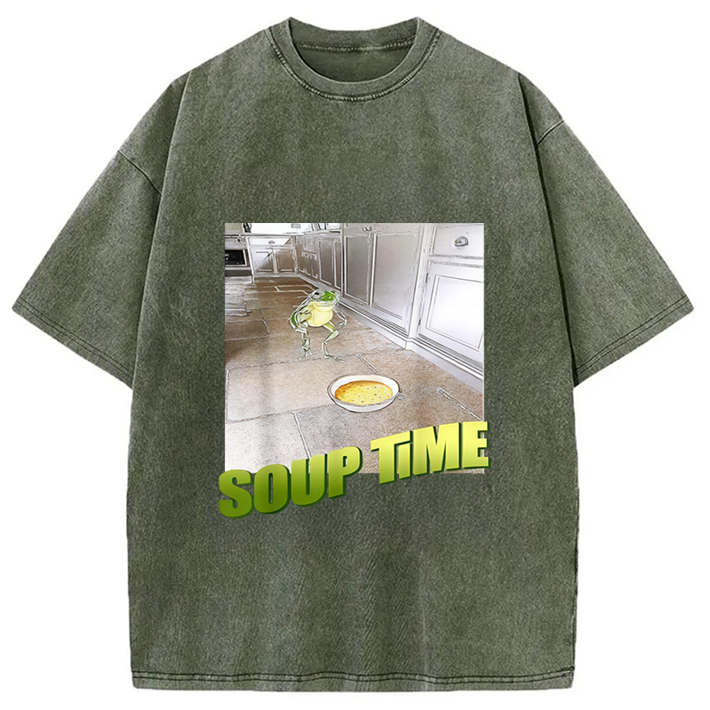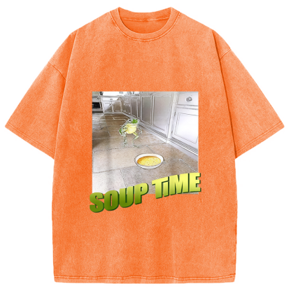 Soup Time Meme Frog Meme Washed T-Shirt