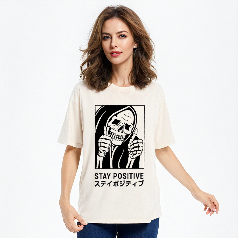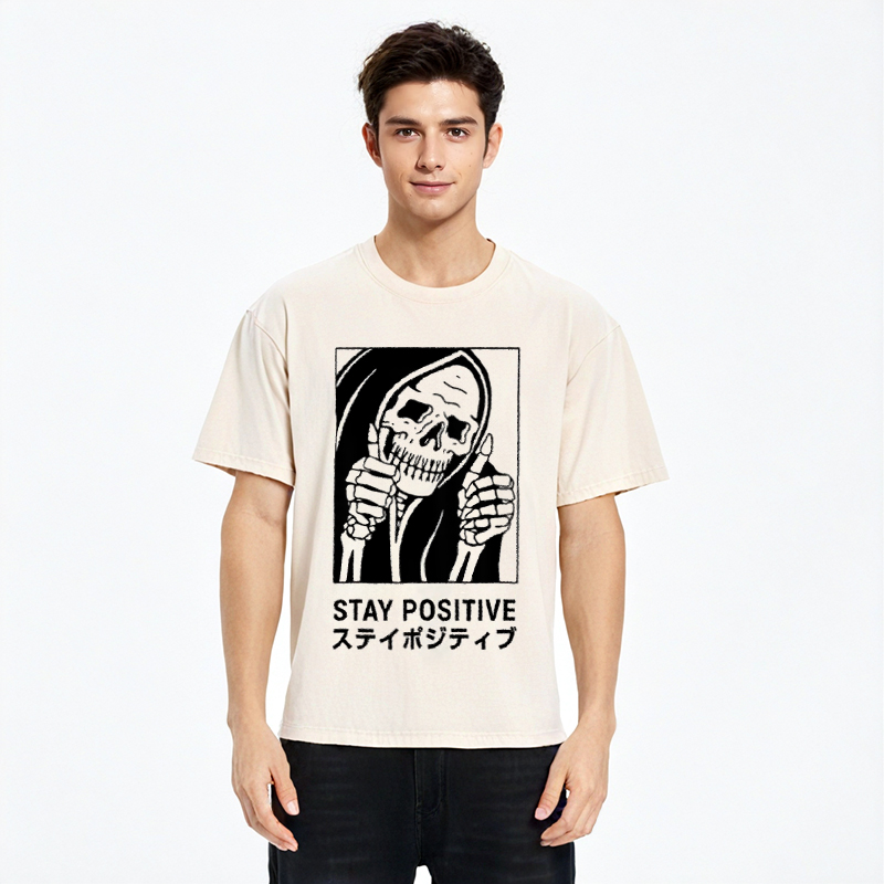 Stay Positive Skeleton Washed T-Shirt For Sale
